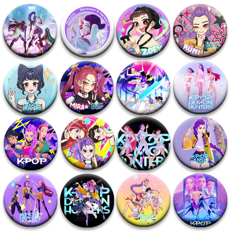 Kpop韩流猎魔女团吧唧跨境热销动漫周边马铁口徽章学生镭射胸针