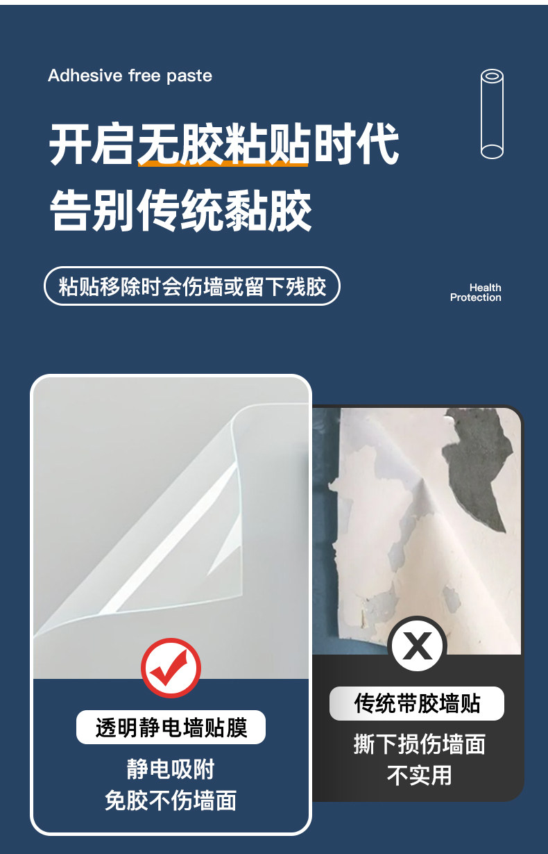 乳胶漆墙面装饰贴静电贴纸儿童房家用自粘墙贴透明静电墙面保护膜