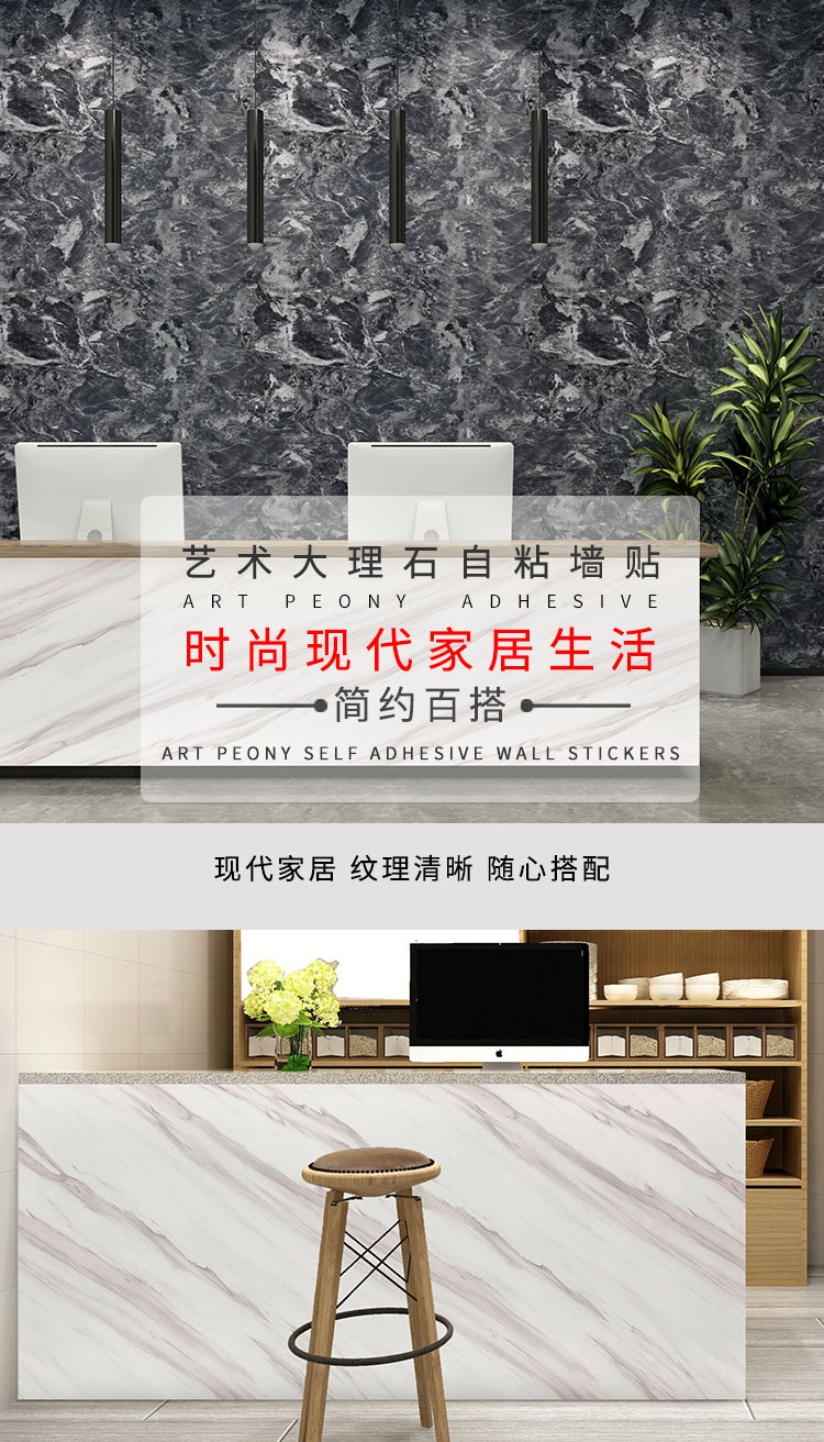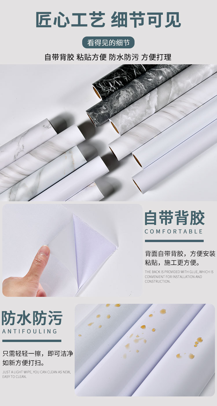 亚马逊跨境加厚哑面大理石贴纸防水耐磨防滑台面浴室厨房地面贴纸