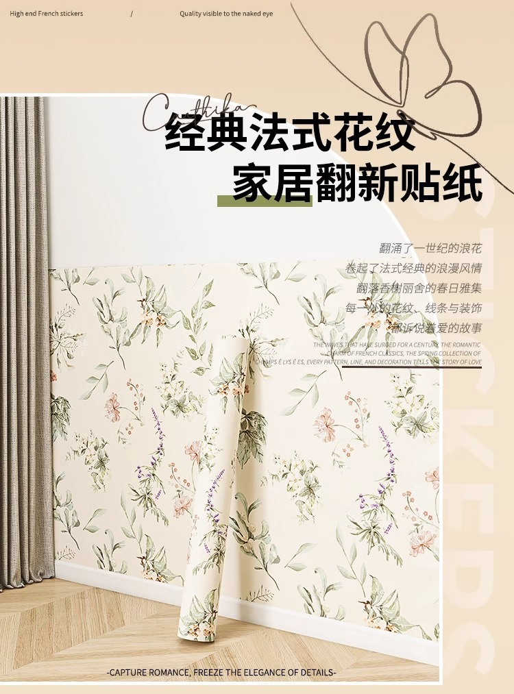 法式壁纸墙纸自粘防水防潮卧室背景墙贴纸翻新遮丑装饰卫生间墙贴