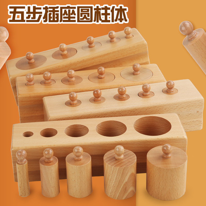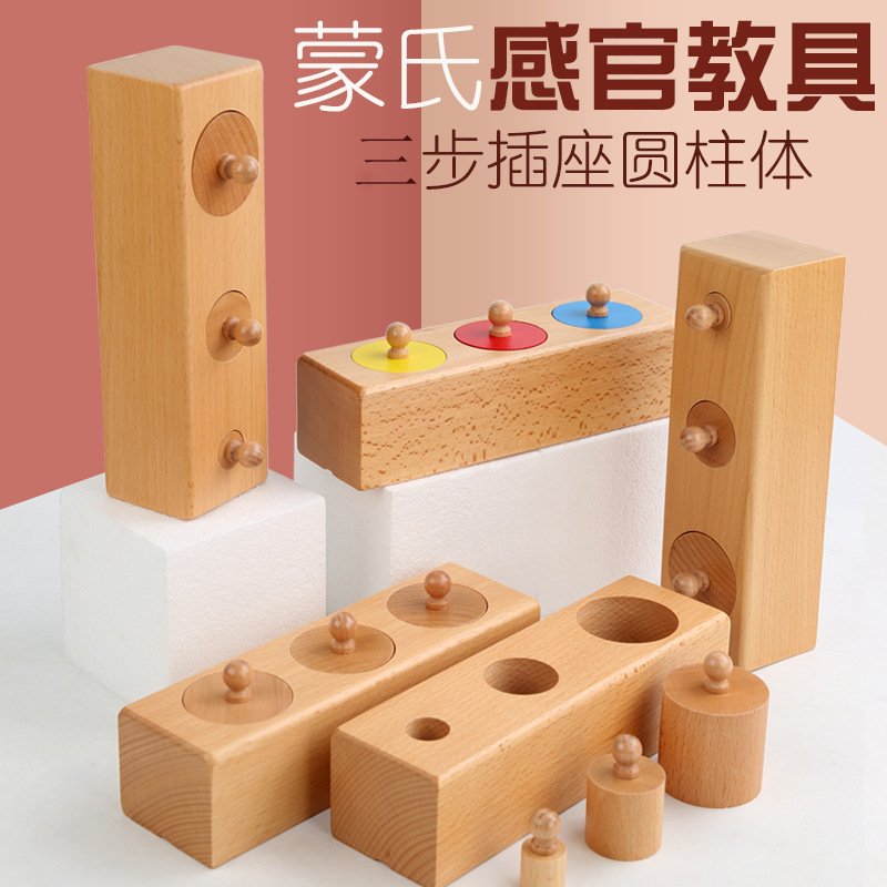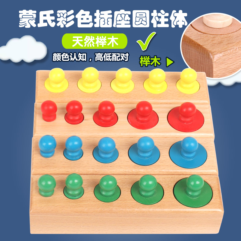 威威虎蒙氏启蒙插座圆柱体教具智力开发彩色积木感官益智圆柱玩具