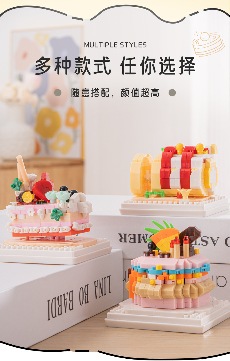 小颗粒积木蛋糕拼装玩具 蛋糕系列儿童玩具摆件装饰益智生日礼物