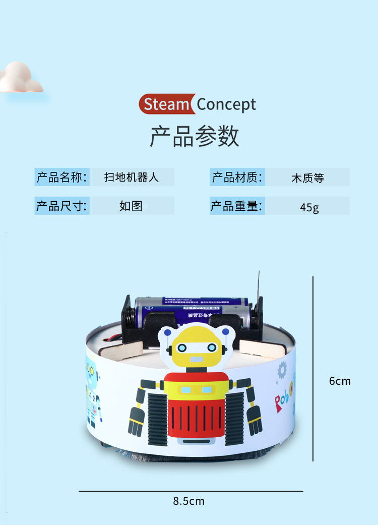 儿童科技手工小制作扫地机器人幼儿园趣味科学小实验益智玩教具
