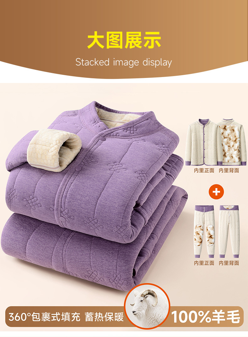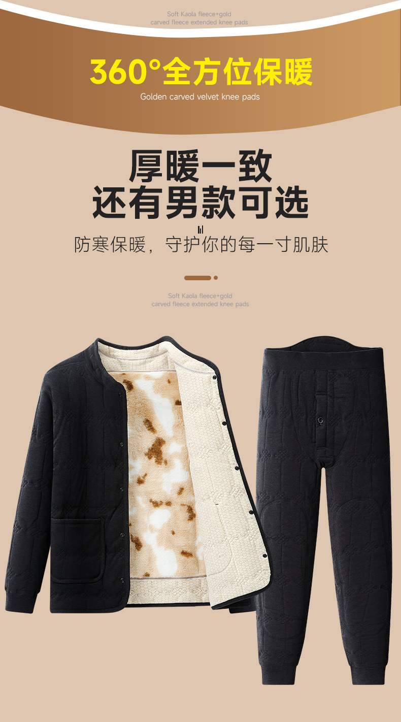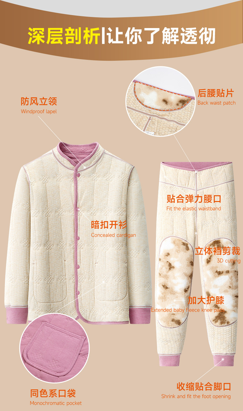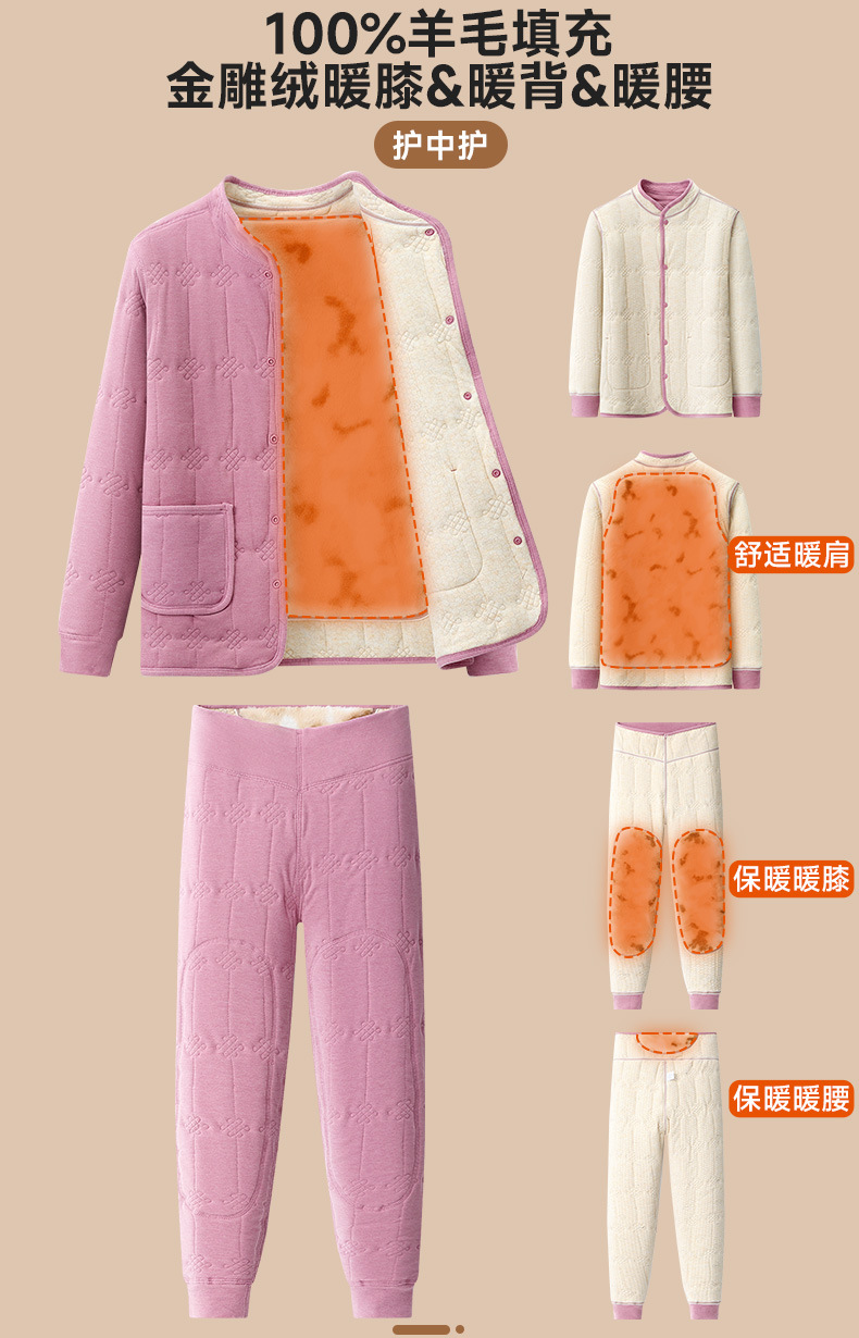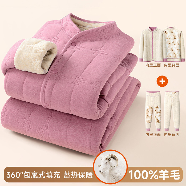 【貂绒护背护膝】冬季家居服女士中老年羊毛加绒加厚套装保暖睡衣