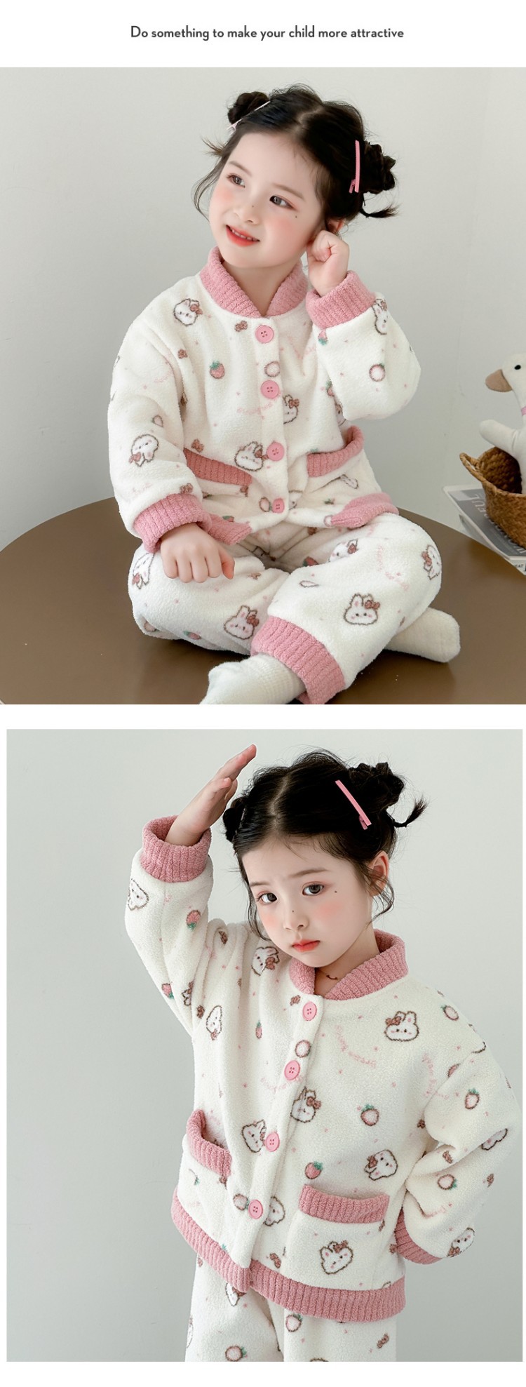 女童睡衣套装2025新款秋冬儿童法兰绒保暖家居服珊瑚绒宝宝两件套