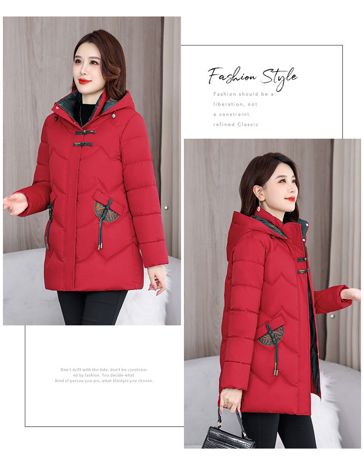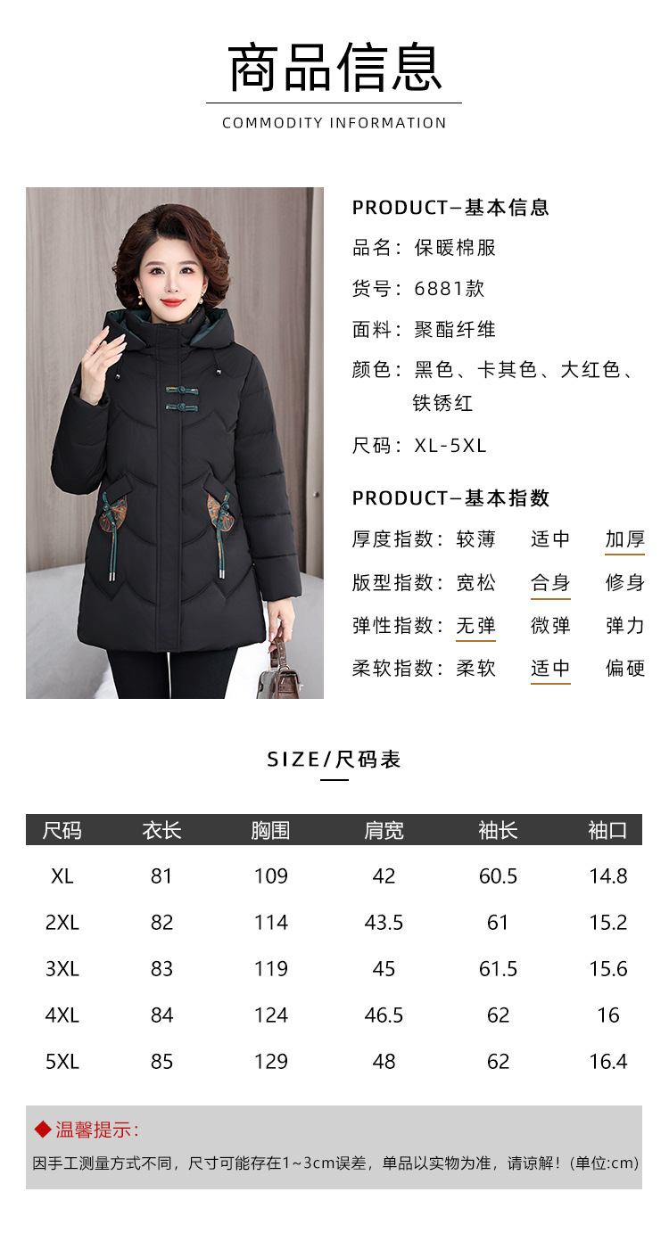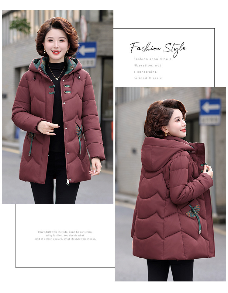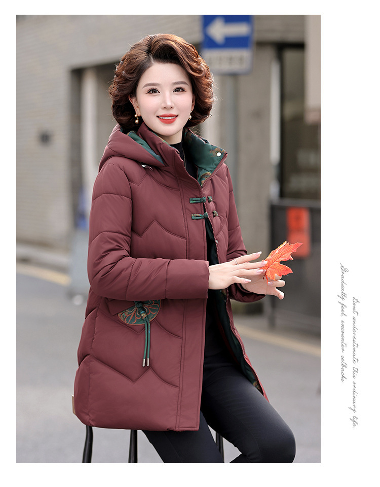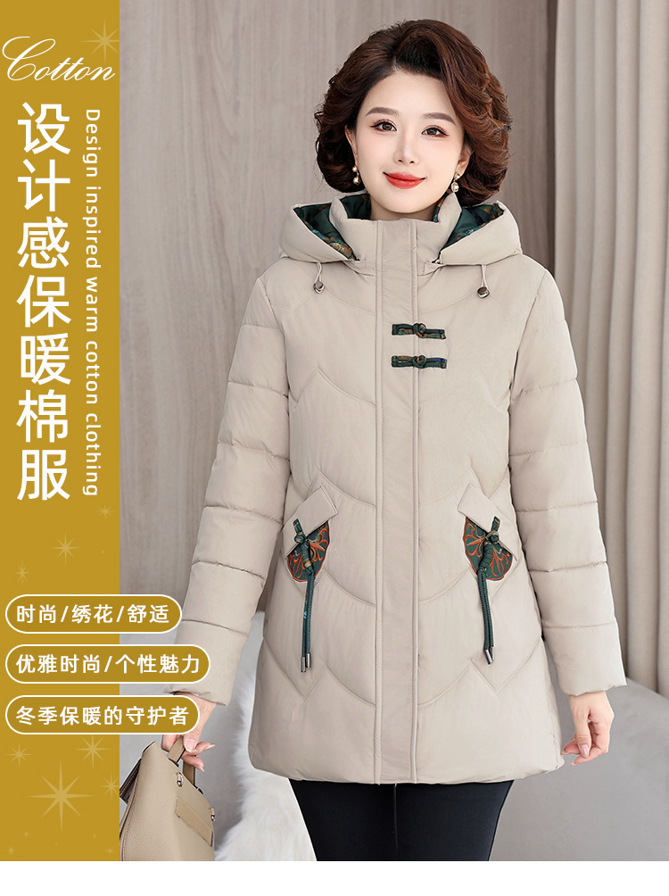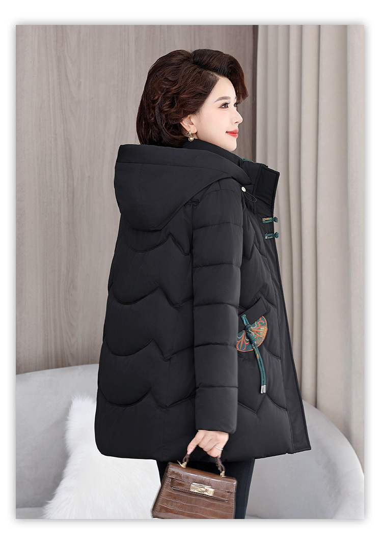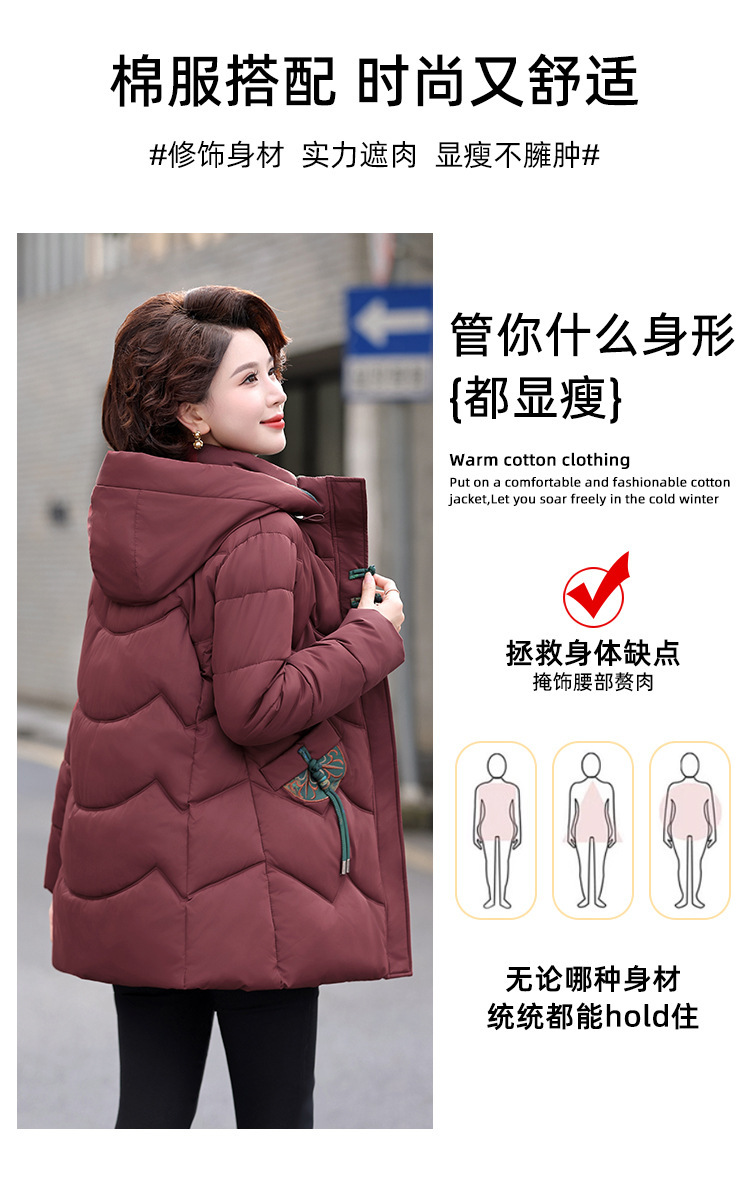 2024冬女装老年妈妈时尚羽绒棉服短款中老年连帽棉衣棉袄奶奶袄子