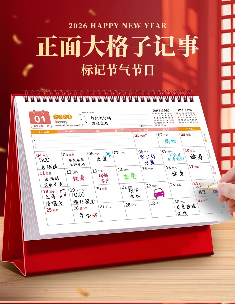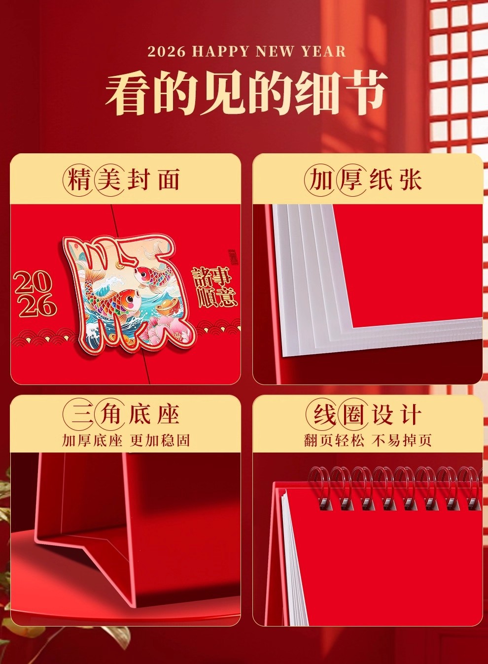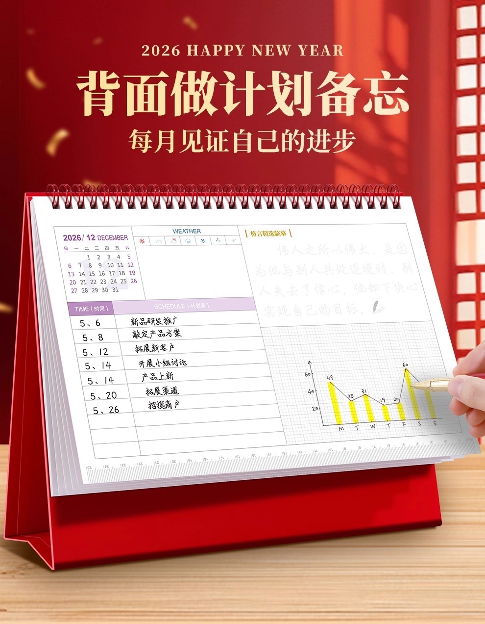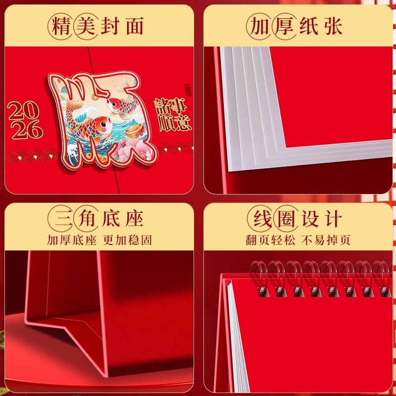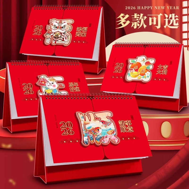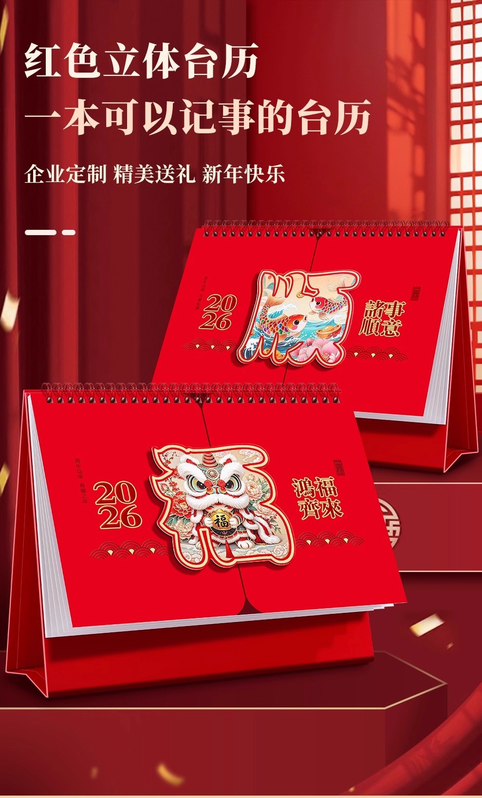 2026年台历定制印刷logo中国风桌面摆件日历本企业广告订做送礼袋