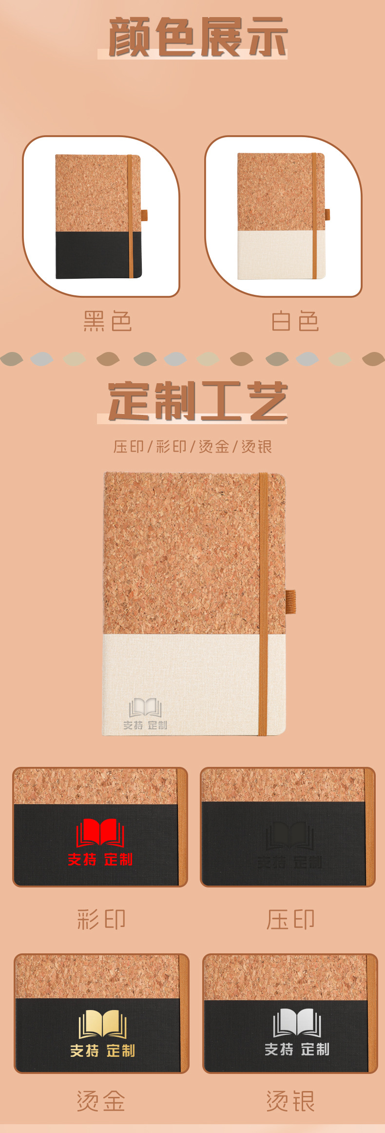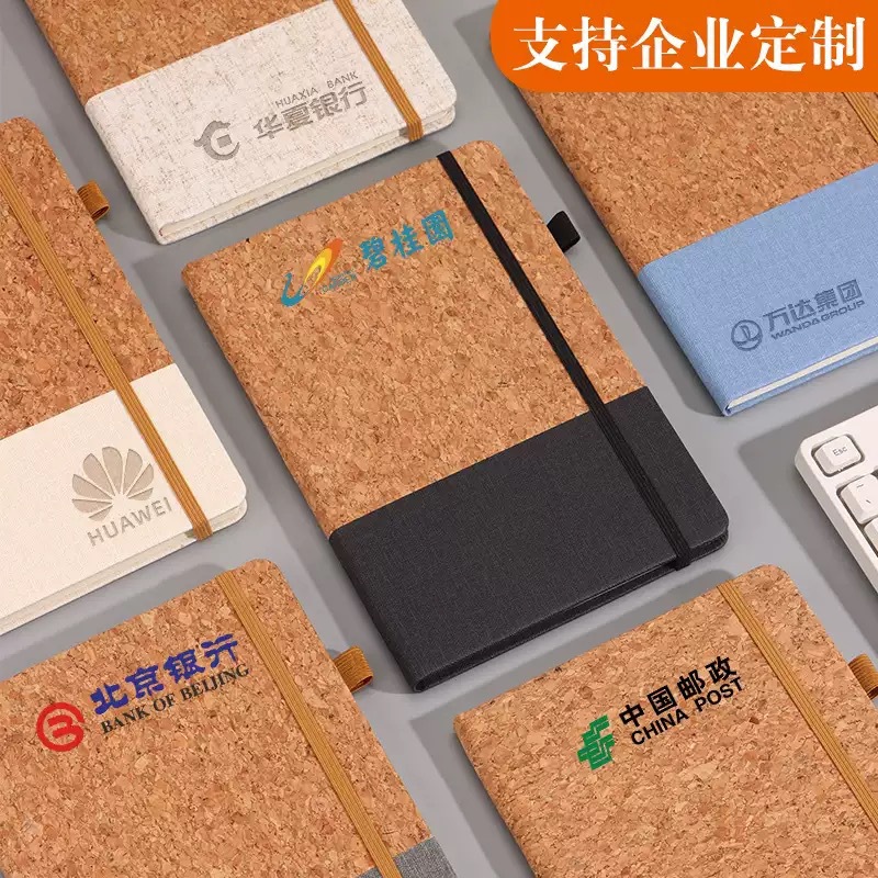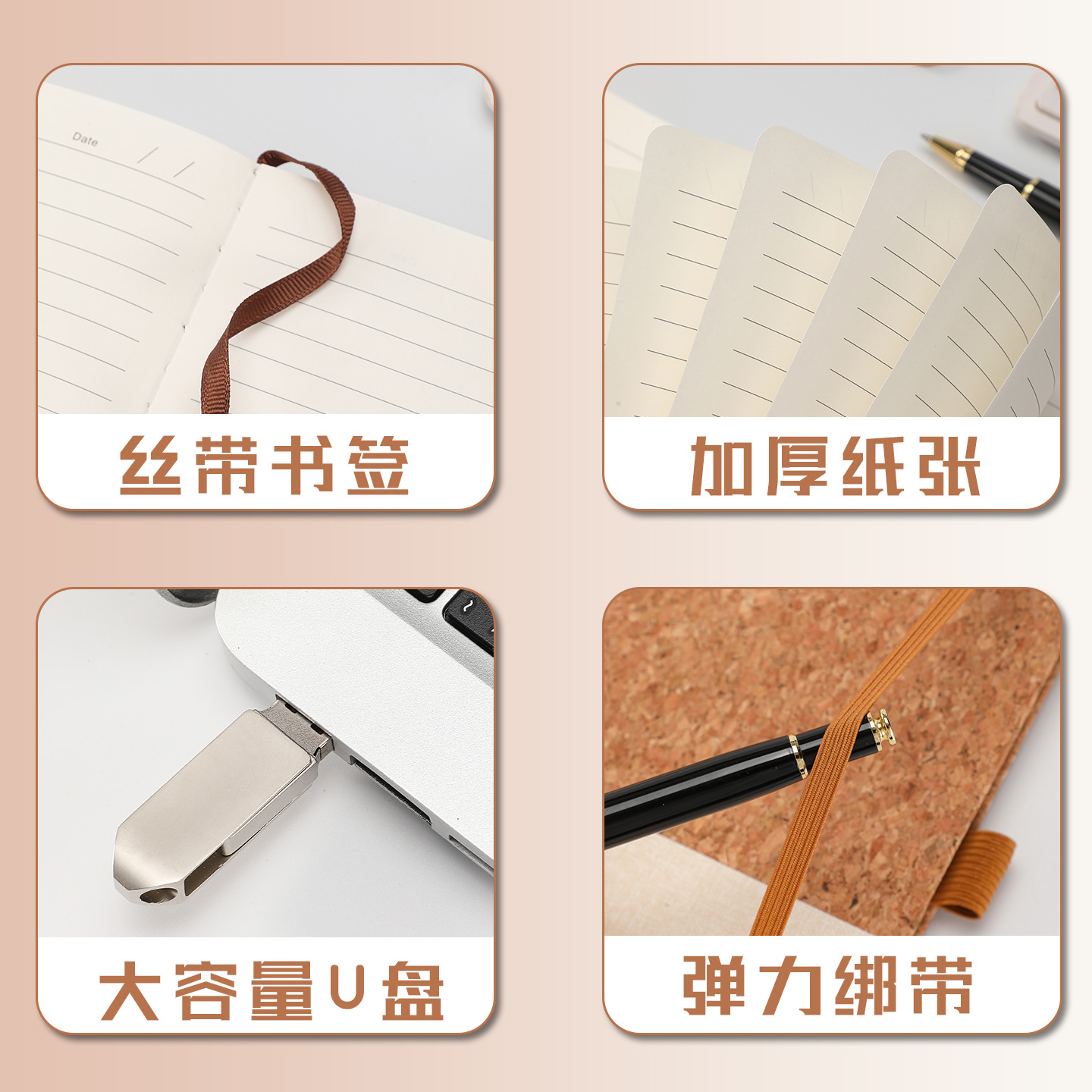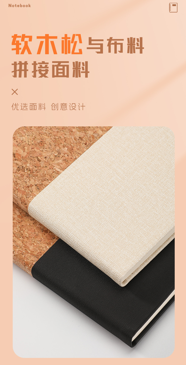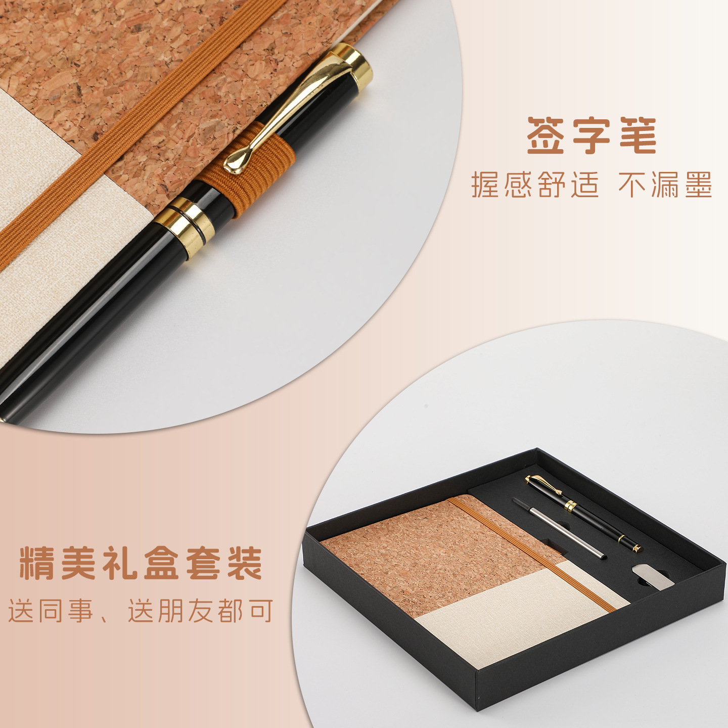 新款跨境环保拼接棉麻软木笔记本礼盒定制可印LOGO硬壳绑带记事本