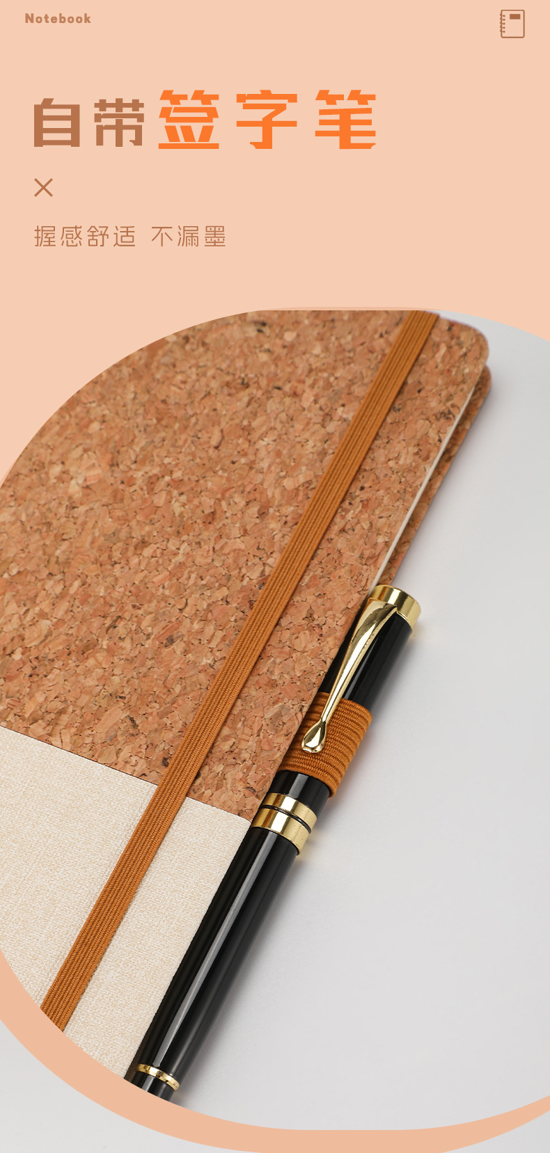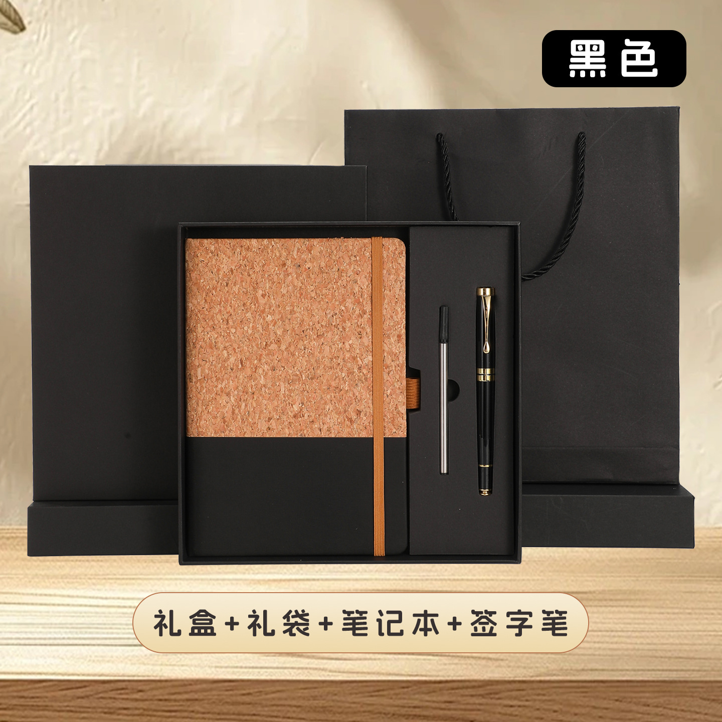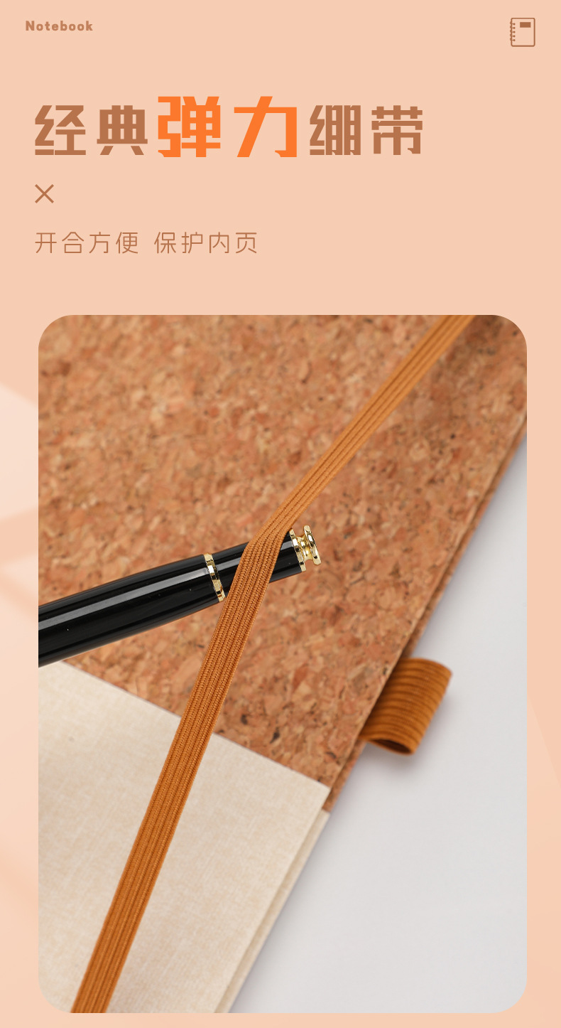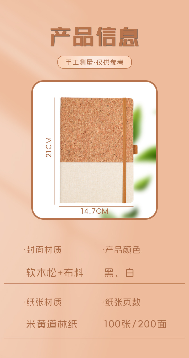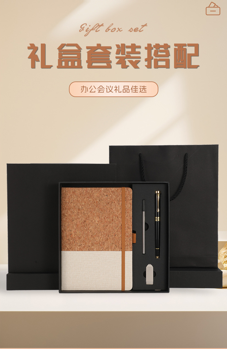 新款跨境环保拼接棉麻软木笔记本礼盒定制可印LOGO硬壳绑带记事本