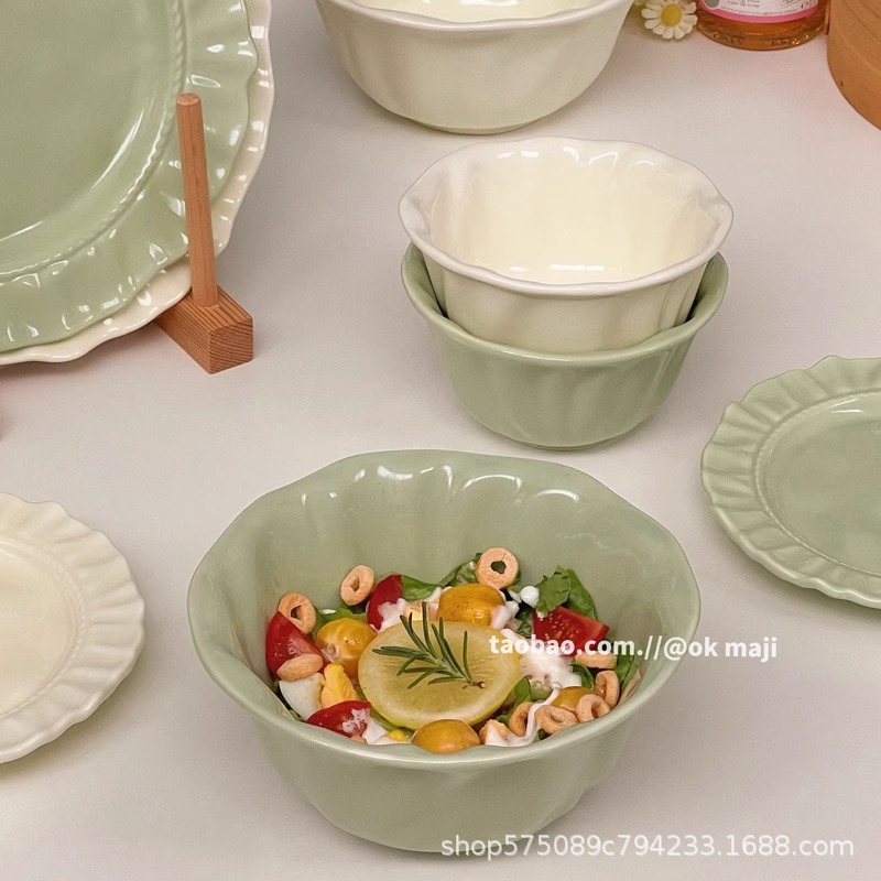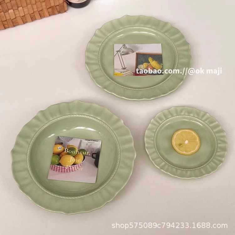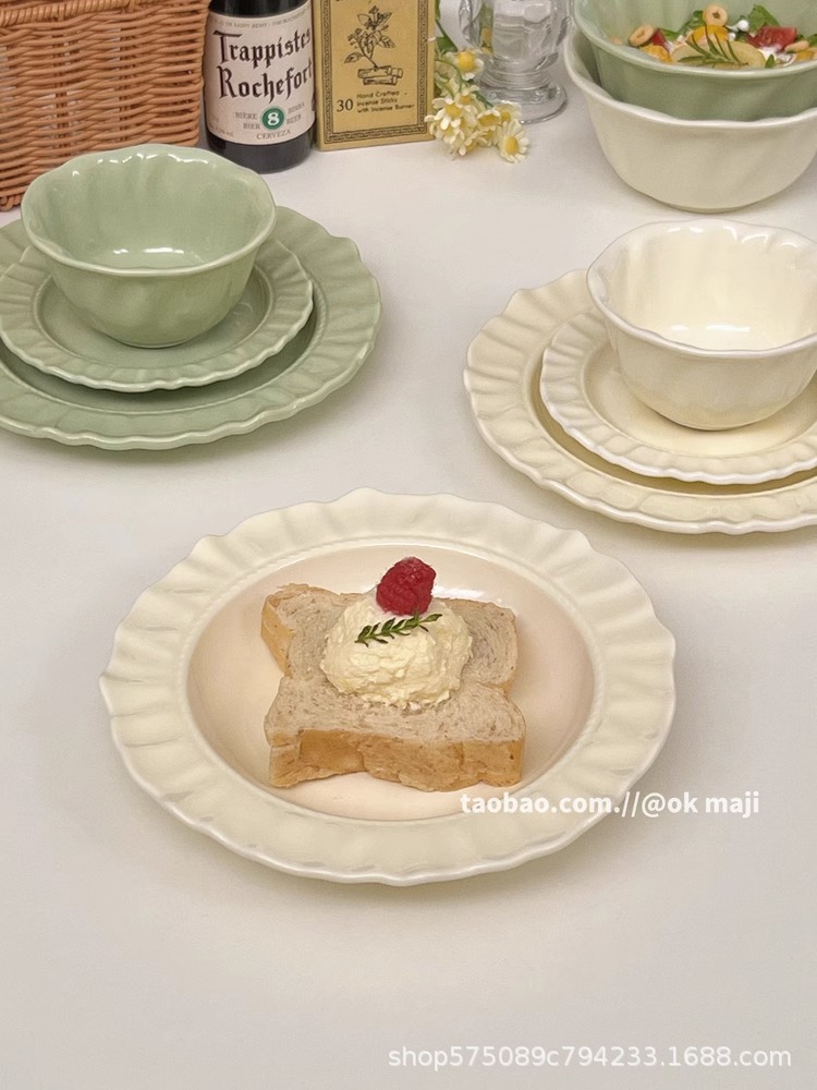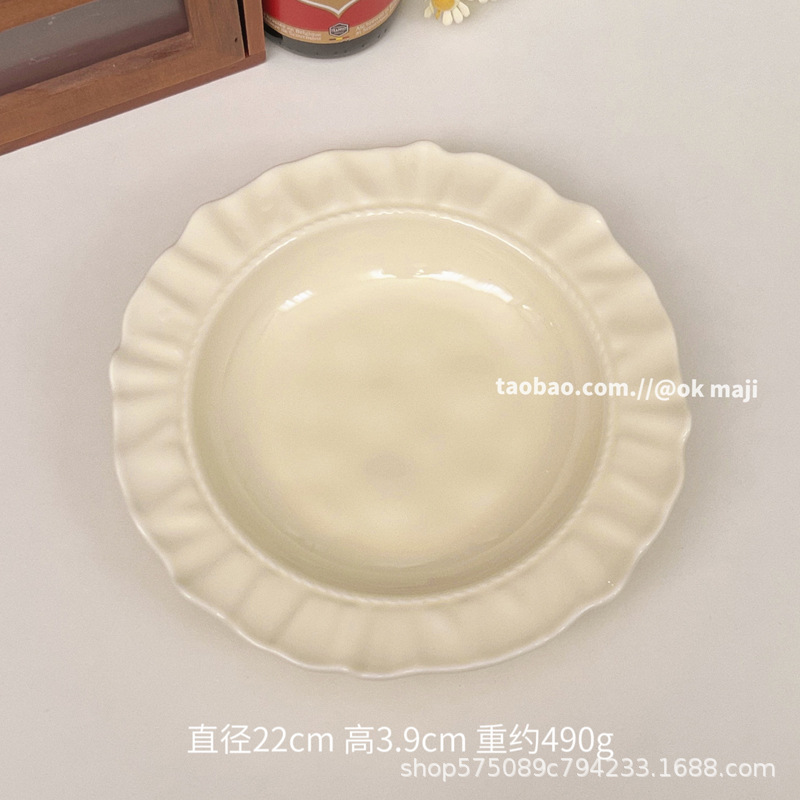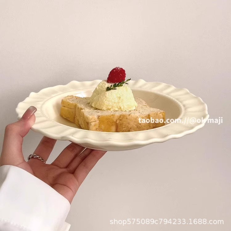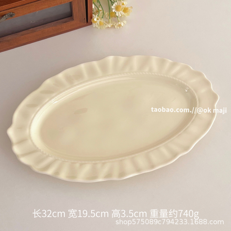 餐盘碗碟高级感ins奶油风陶瓷餐具盘子家用菜盘鱼盘水果甜品盘