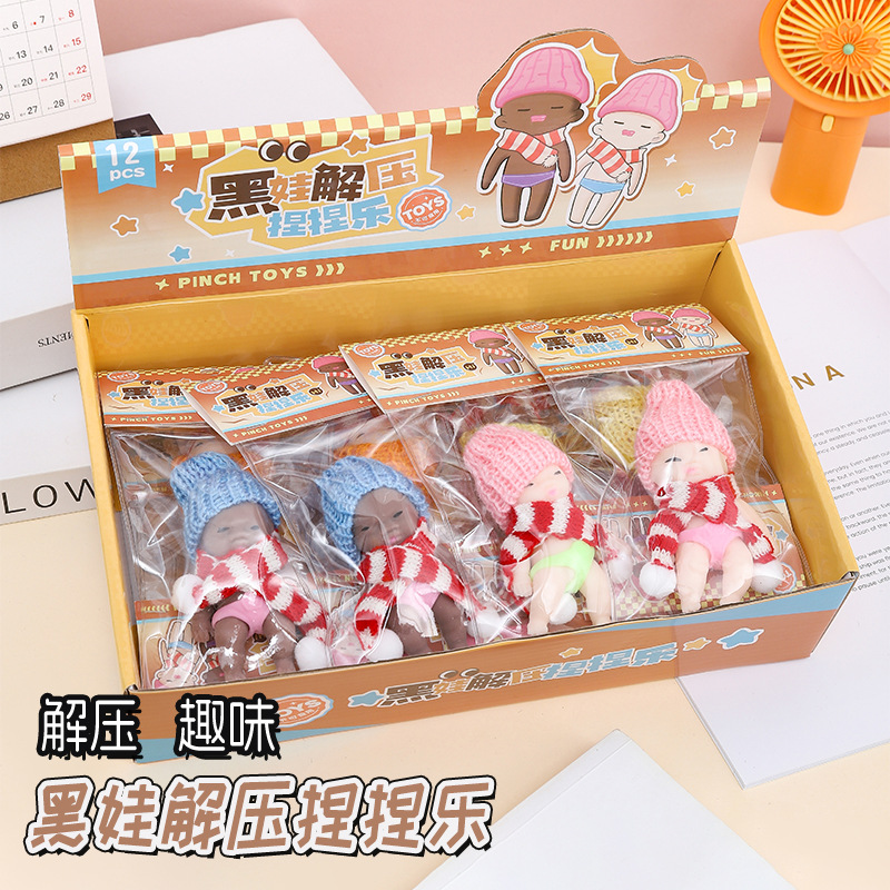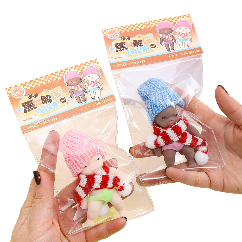 跨境热销软胶装沙掌心小娃娃土匪捏捏乐儿童解压黑娃玩具厂家批发