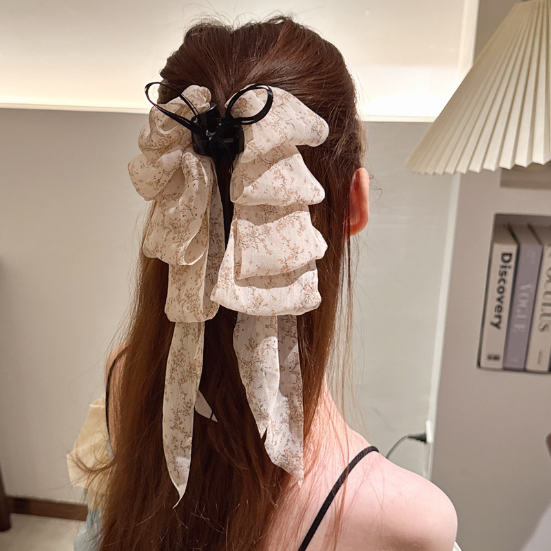 2025新款布艺碎花蝴蝶结马尾抓夹后脑勺夹子头饰气质半扎发夹发饰