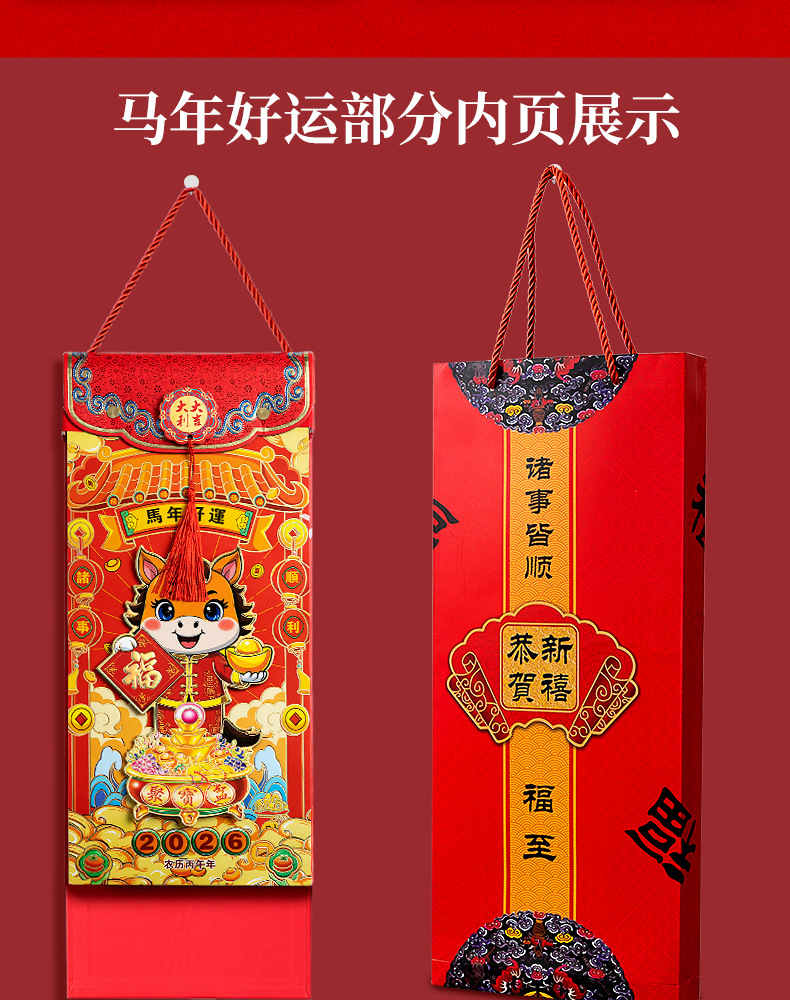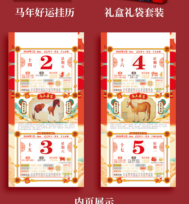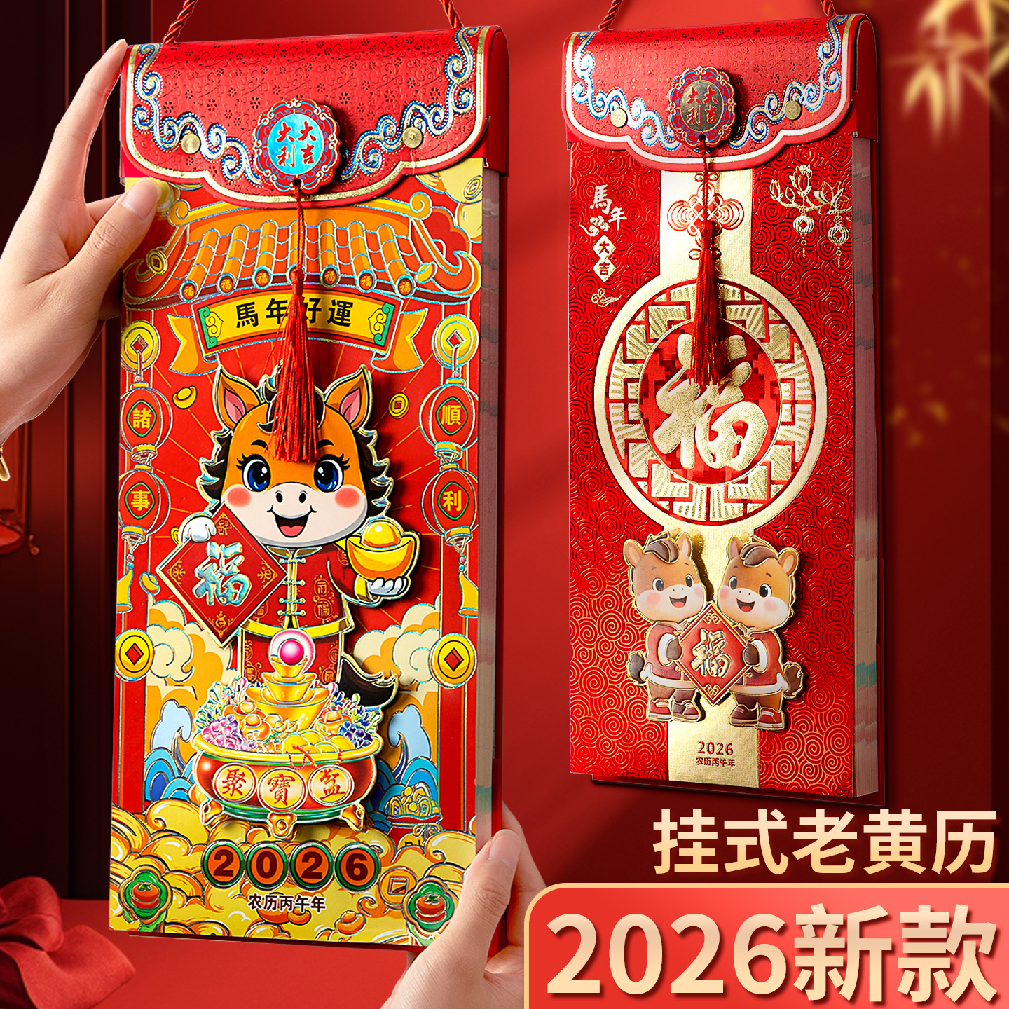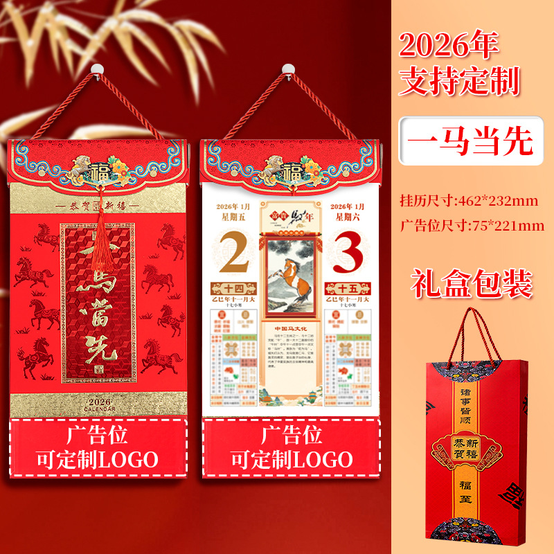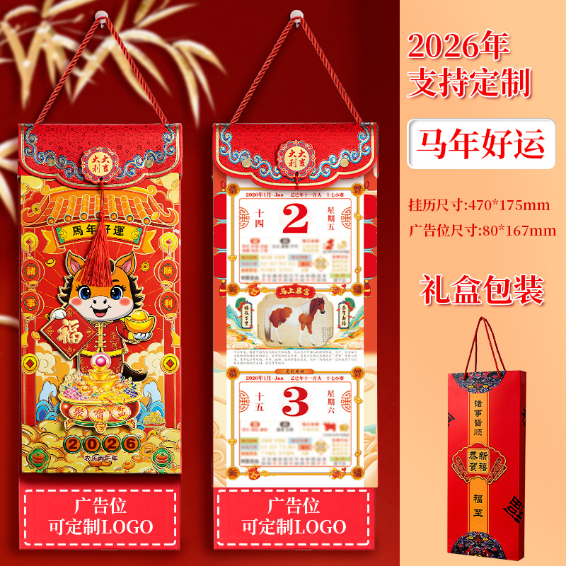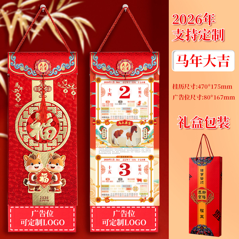 2026马年挂历定制家用手撕万年历老黄历高档挂式双日历定做礼盒装
