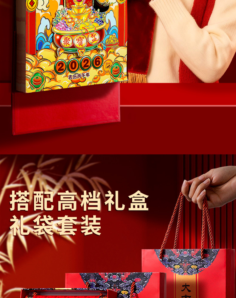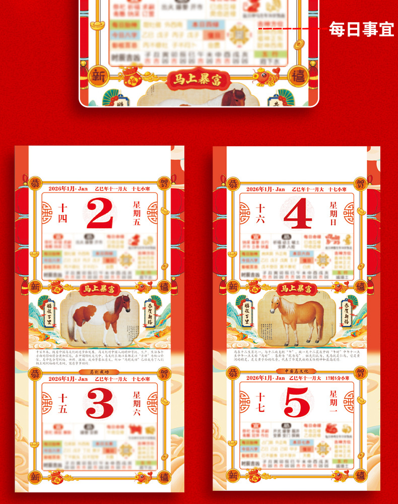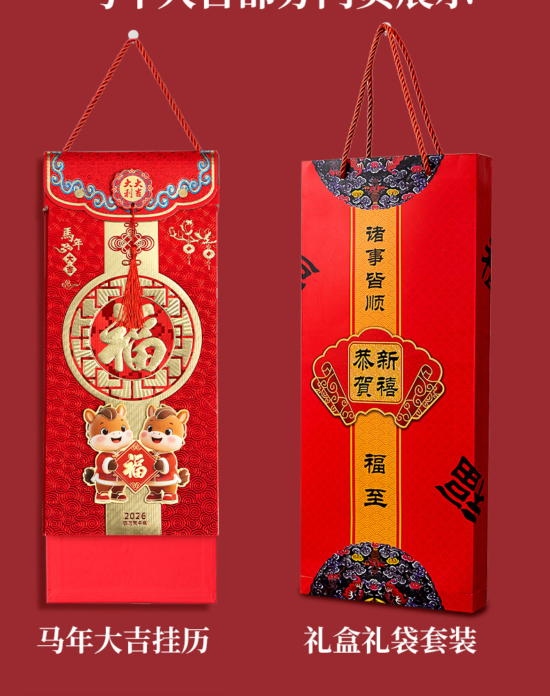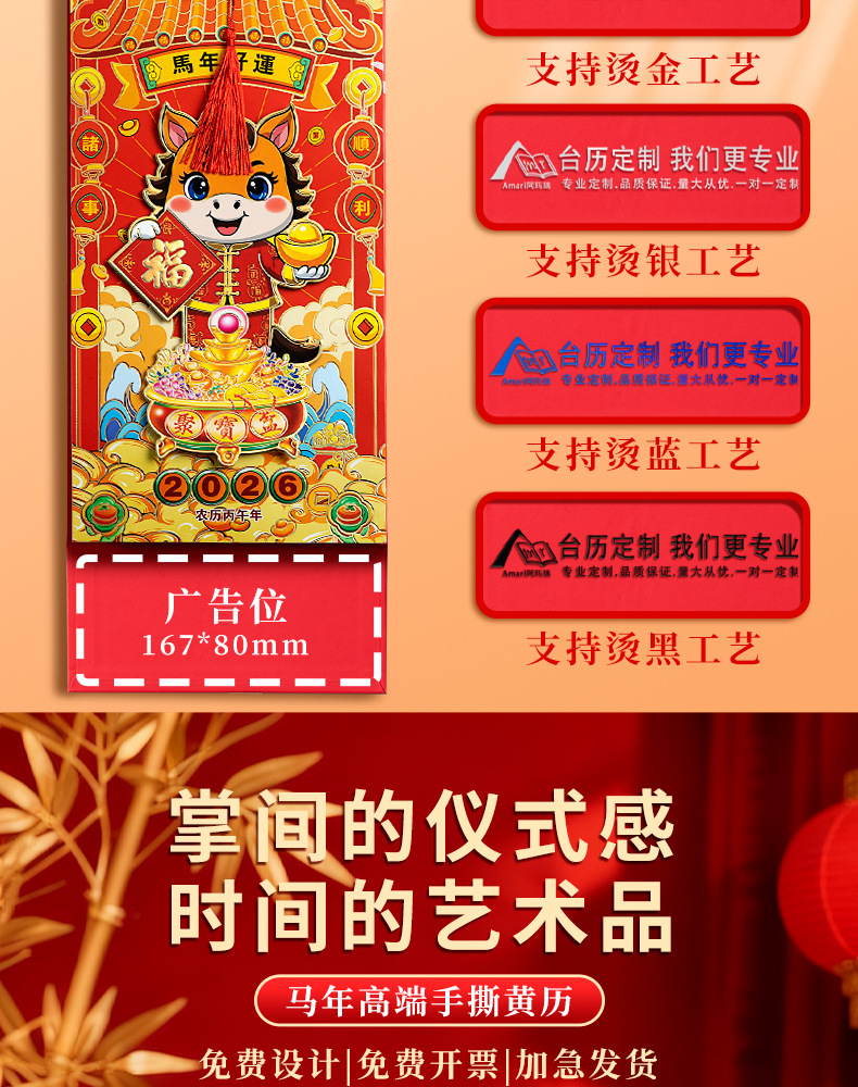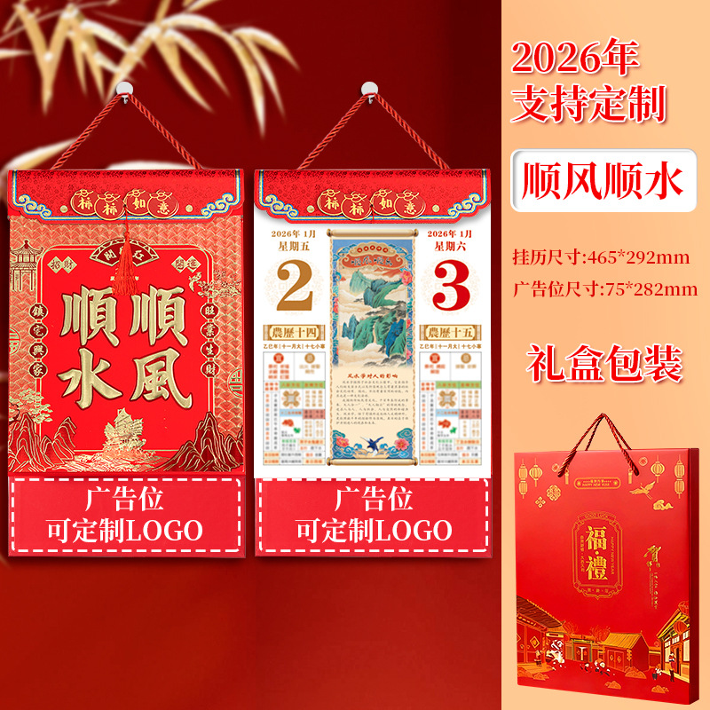 2026马年挂历定制家用手撕万年历老黄历高档挂式双日历定做礼盒装