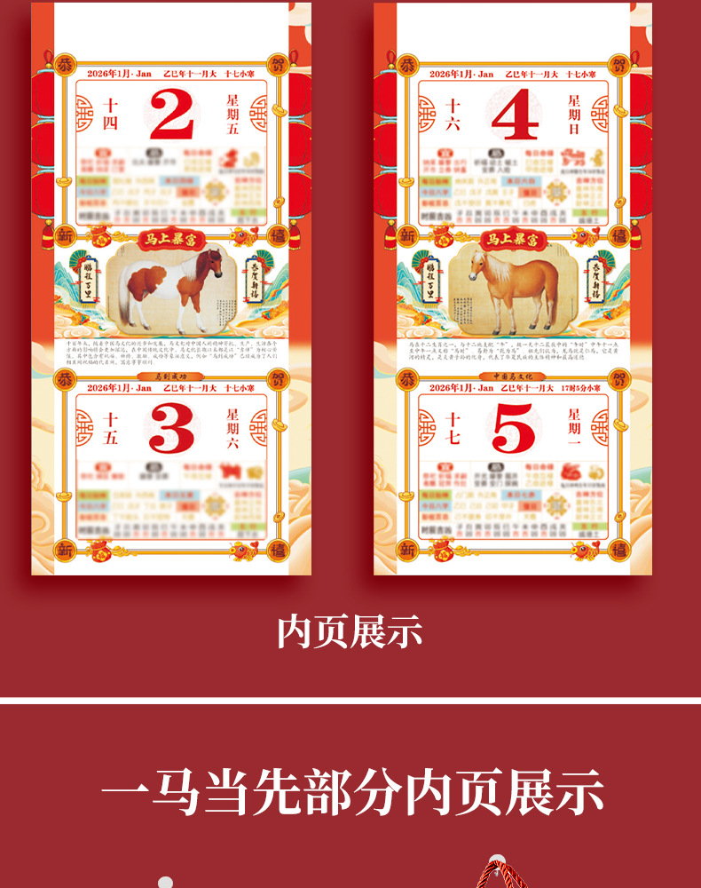 [small double calendar] year of the horse-send exquisite gift box(【小号双日历】马年大吉-送精美礼盒) USD $3.76 1950 piece available
