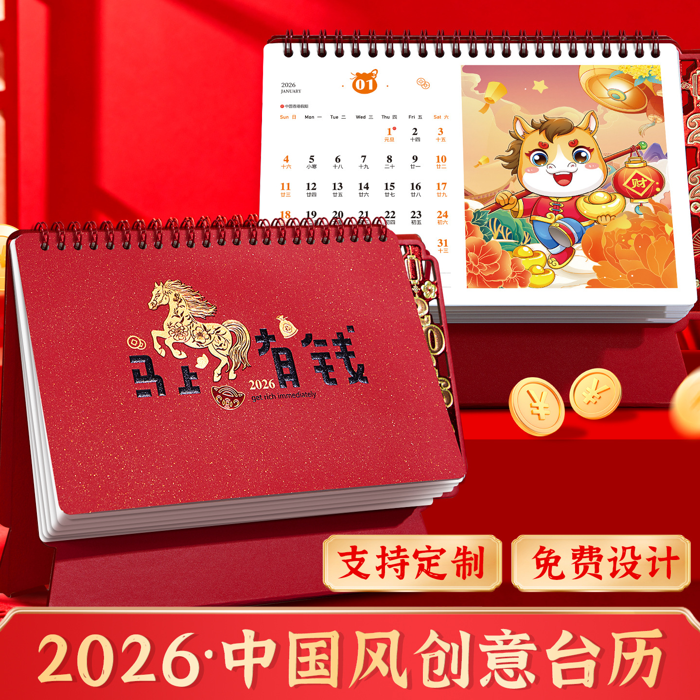 台历2026年新款马年日历计划本创意办公摆件公司定制专版印刷广告