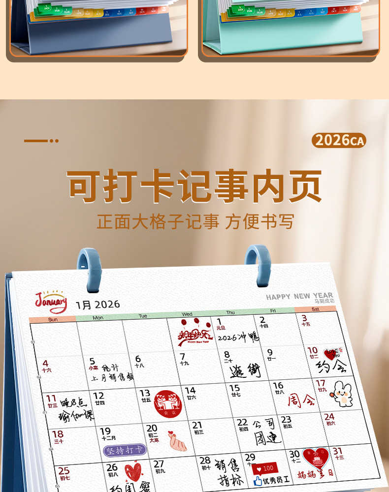 2026台历定制马年桌面摆件日历记事本创意公司广告月历批发印logo