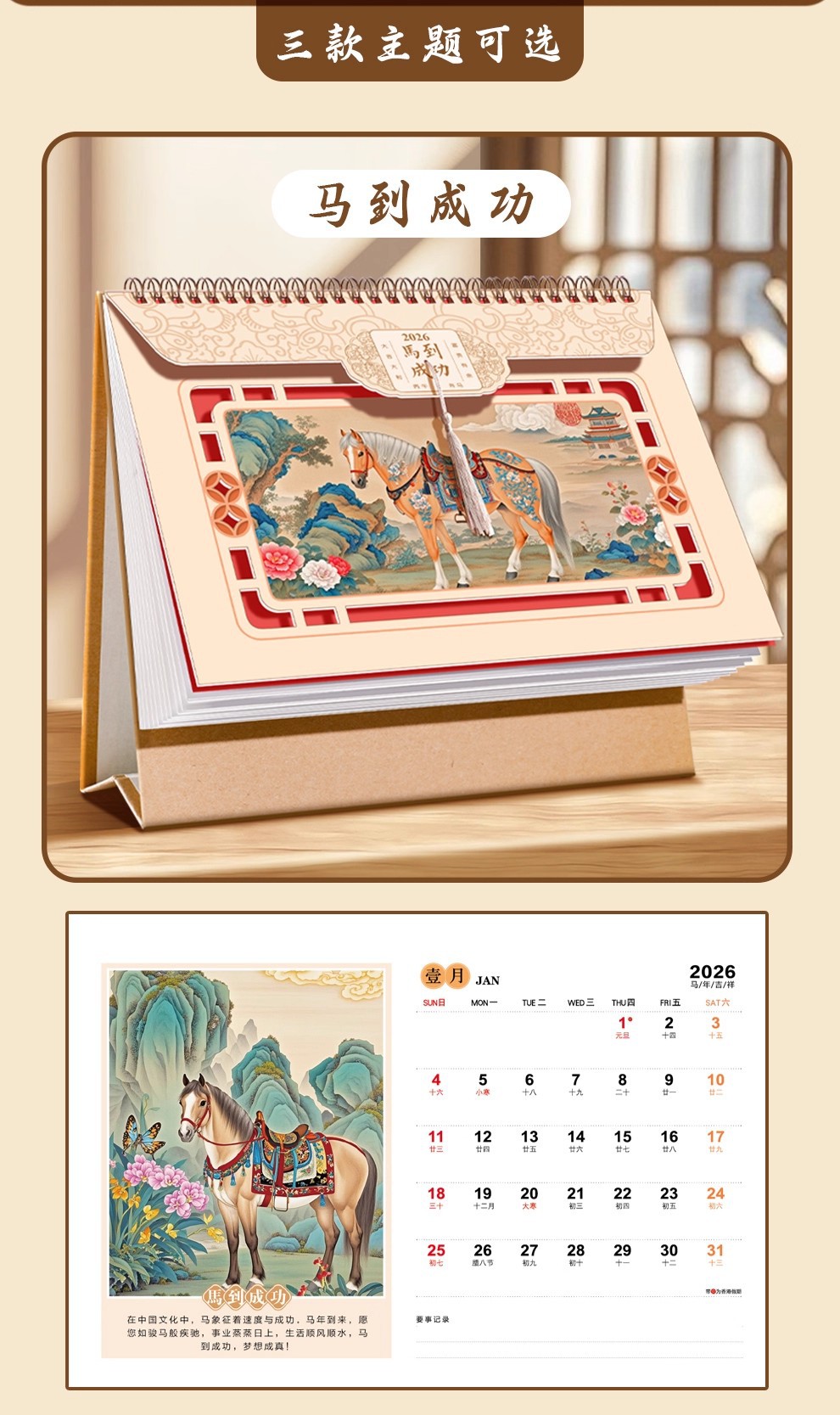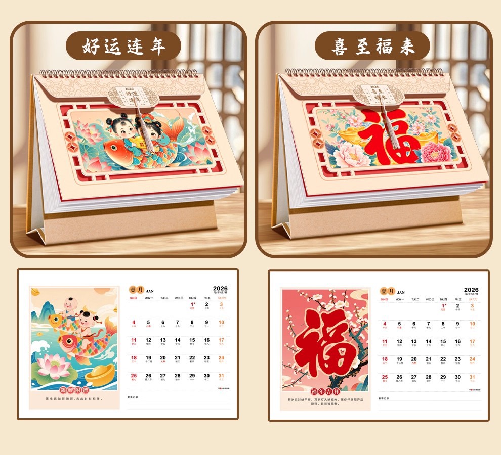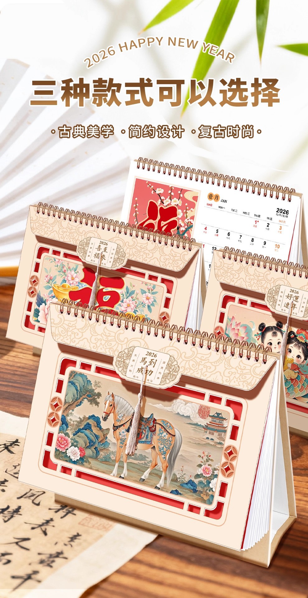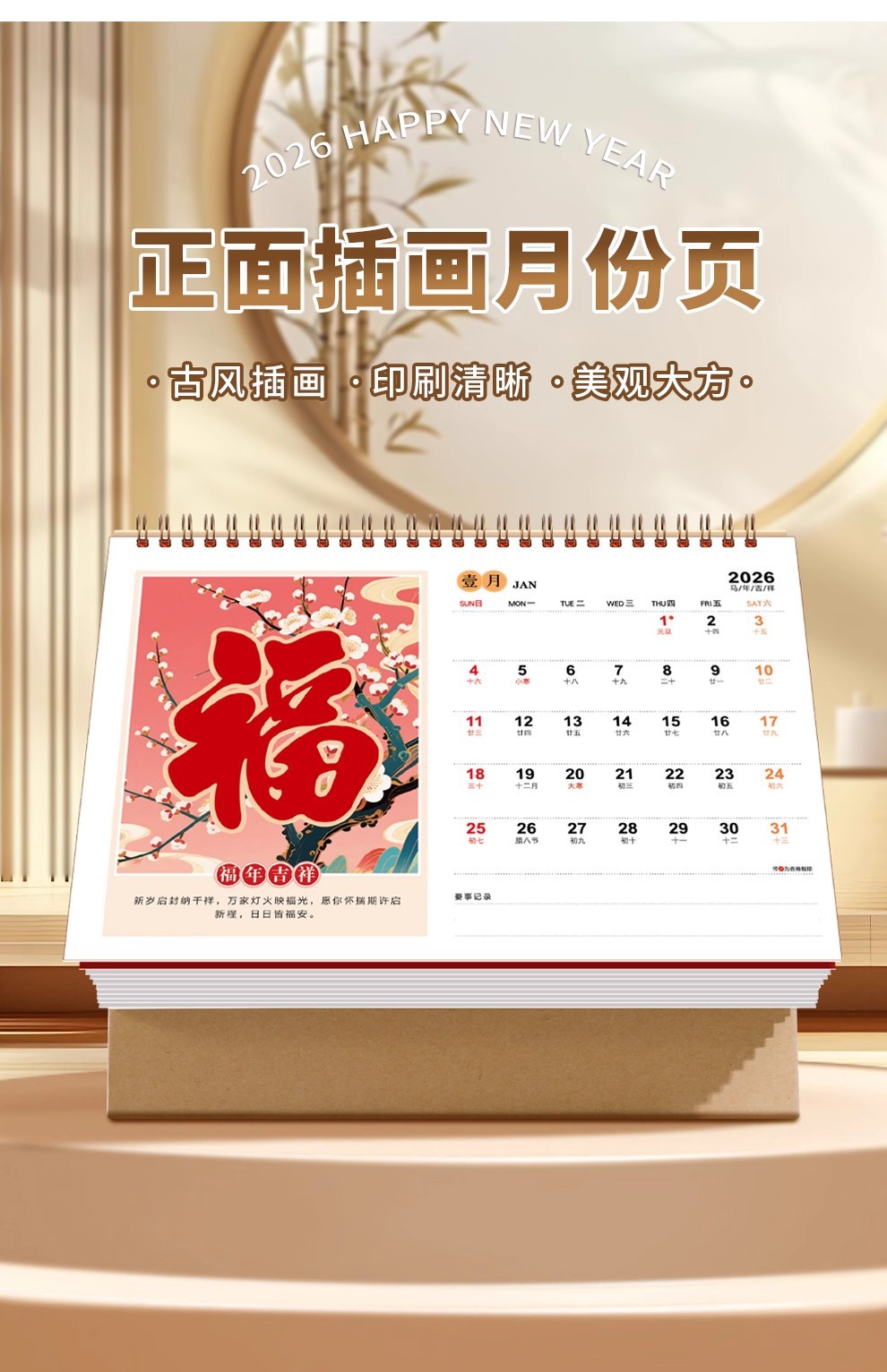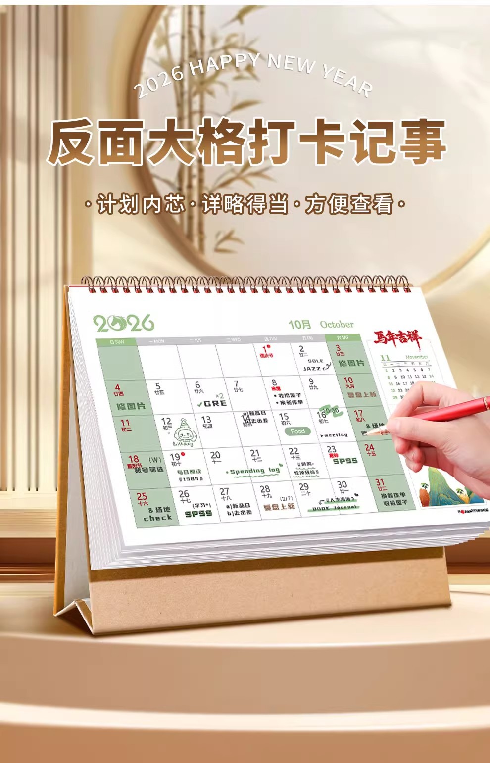 台历2026年新款国风日历定制桌面创意摆件自律打卡本企业广告订做