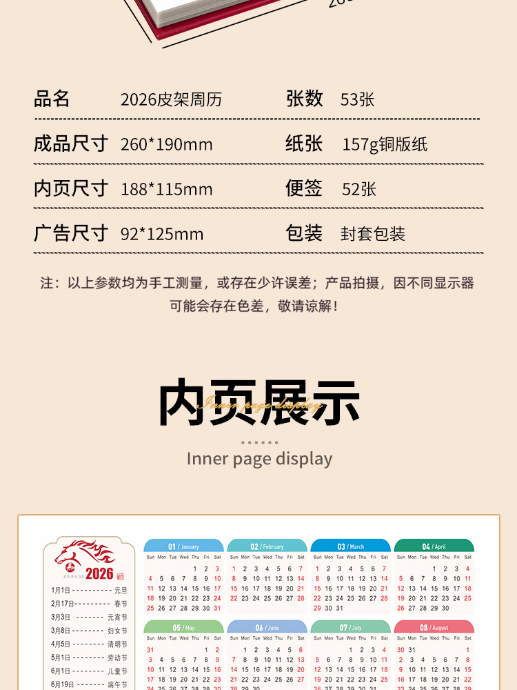 商务周历2026年日历定制办公桌面摆件台历记事本企业广告logo定做