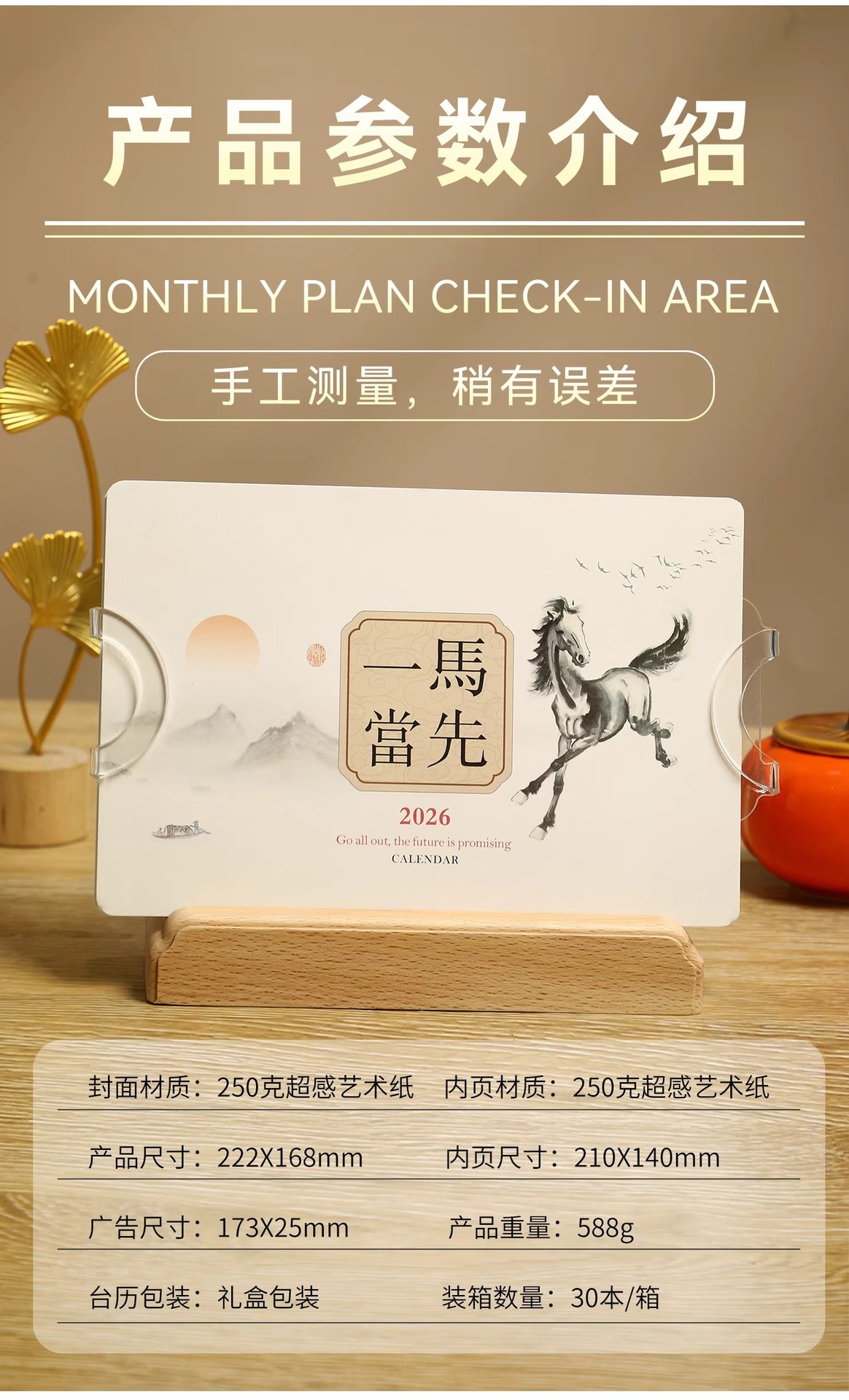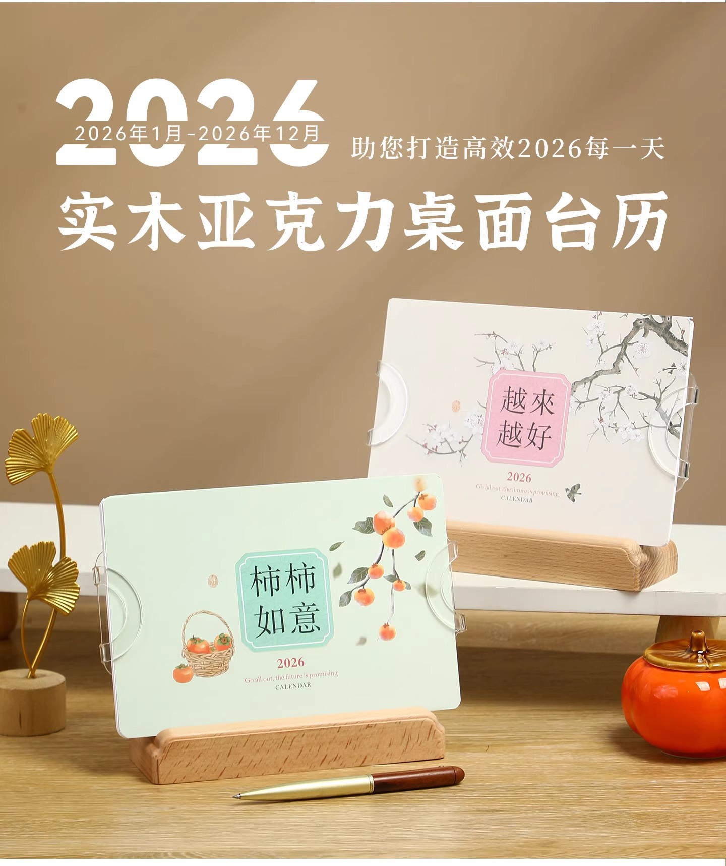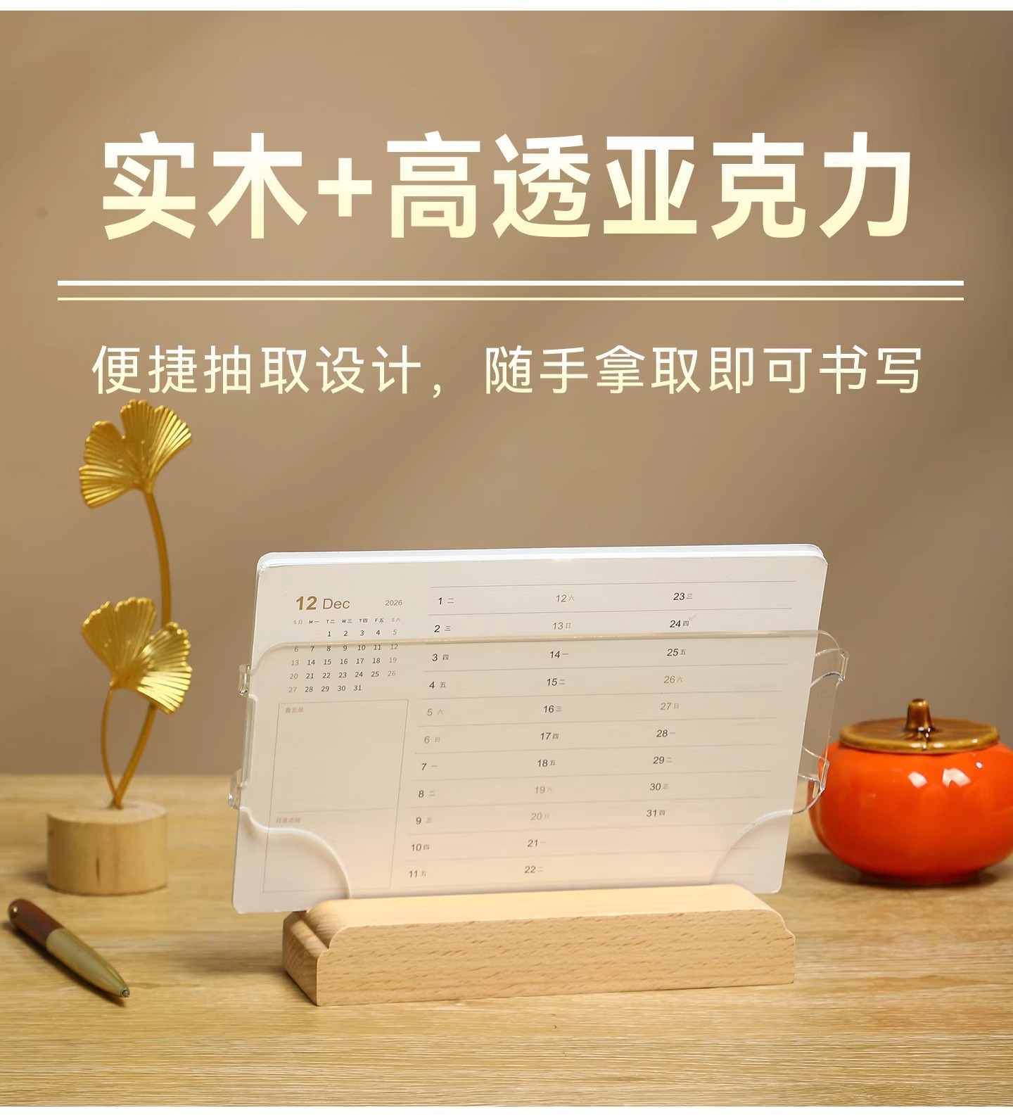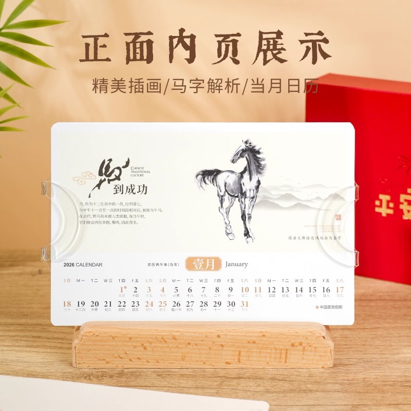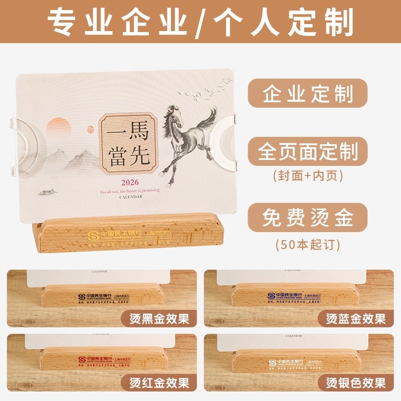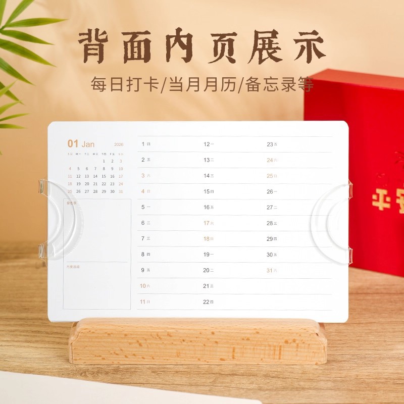 2026年实木台历定制桌面摆件办公打卡日历本企业订做logo礼盒装