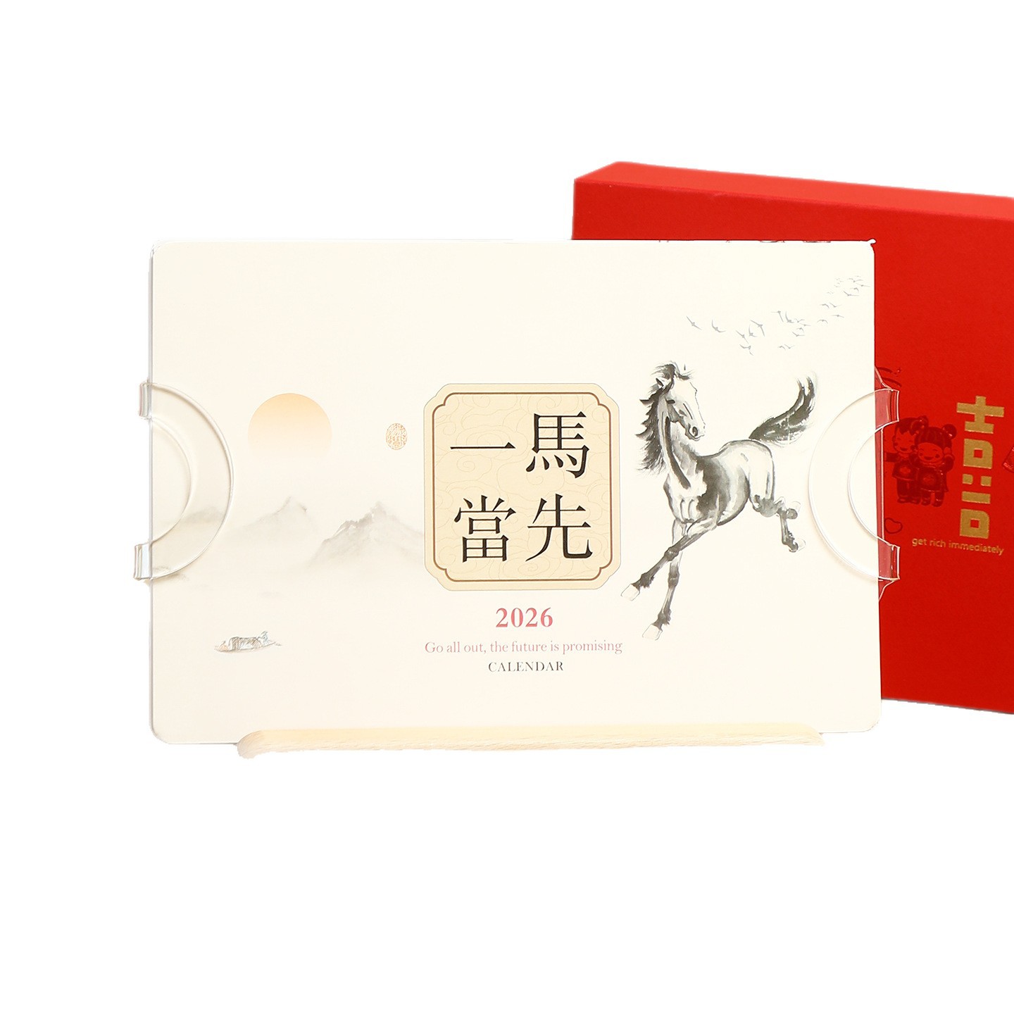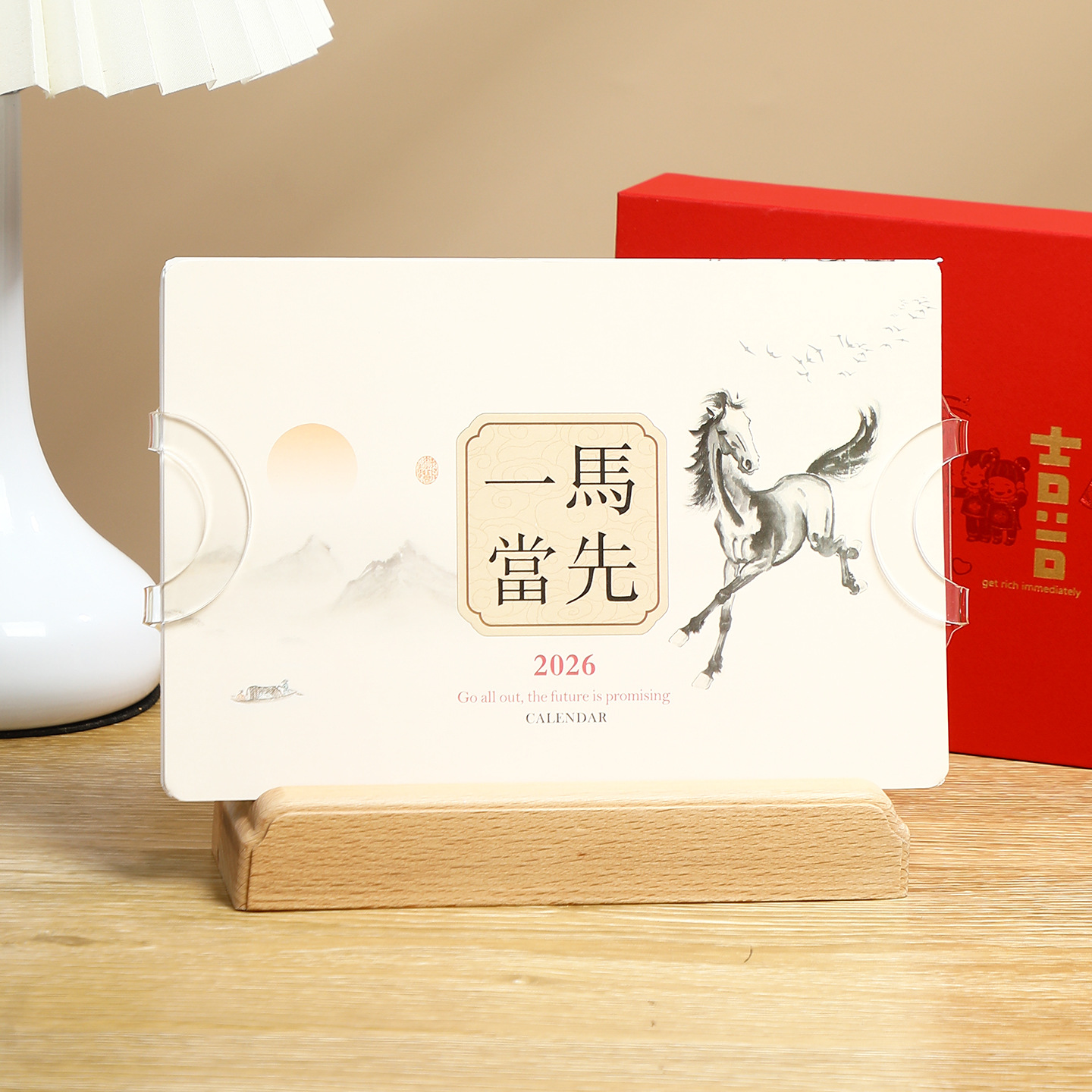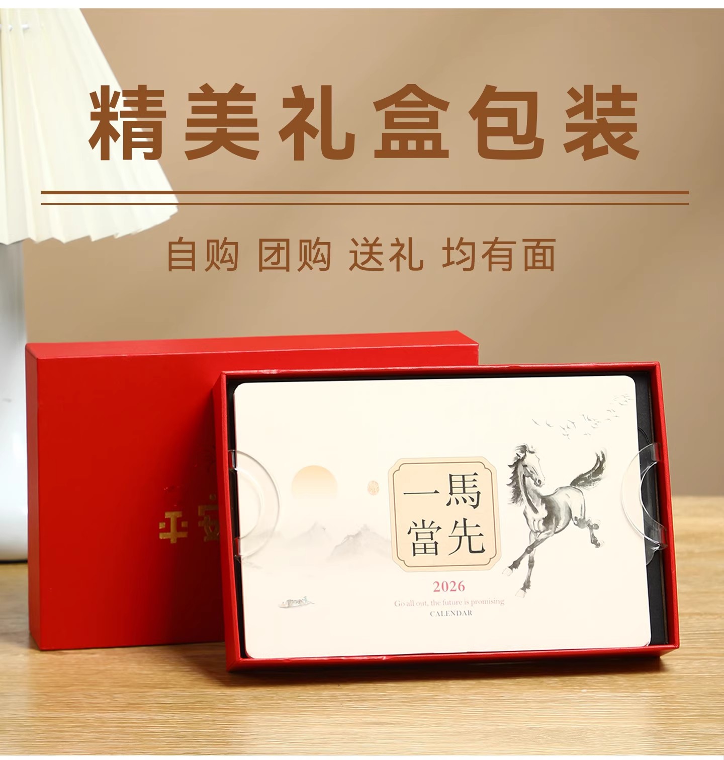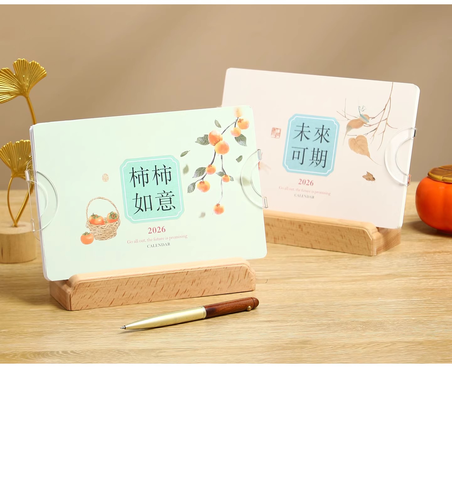 2026年实木台历定制桌面摆件办公打卡日历本企业订做logo礼盒装