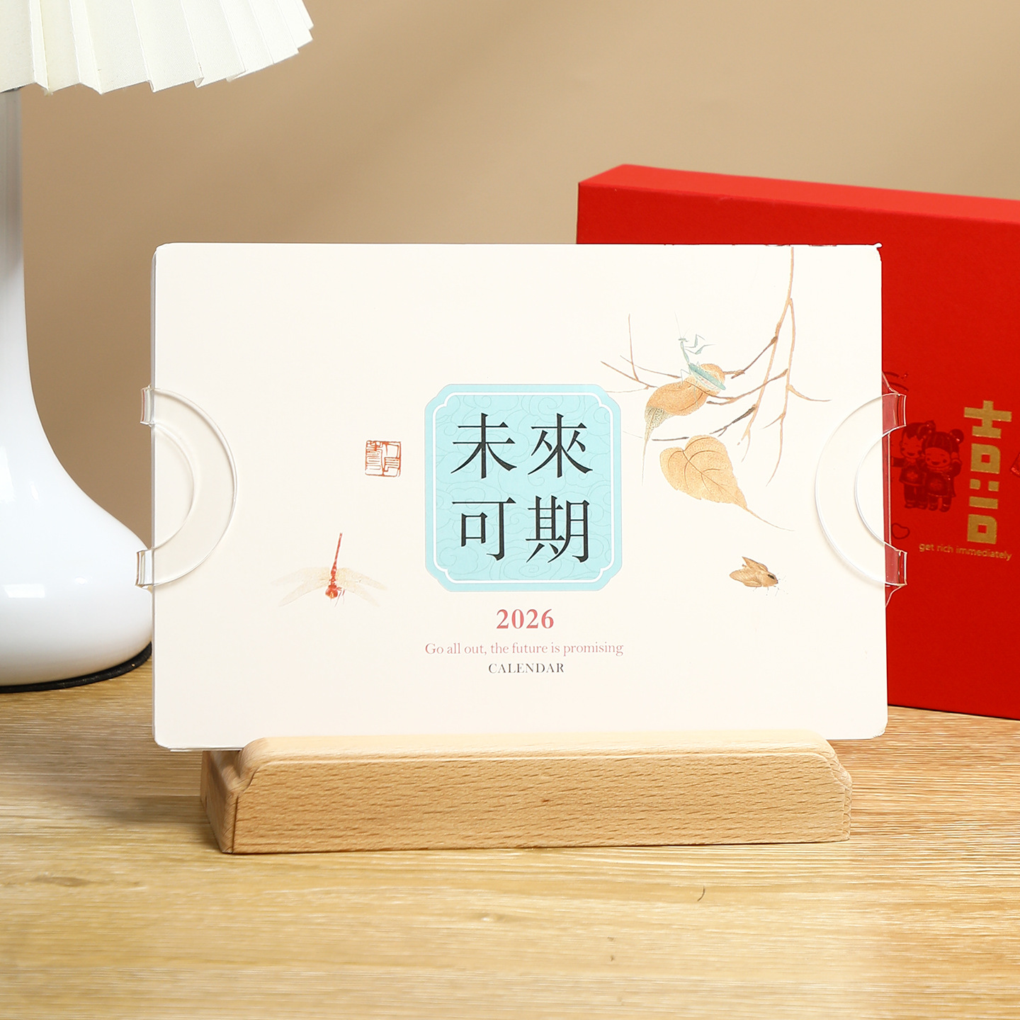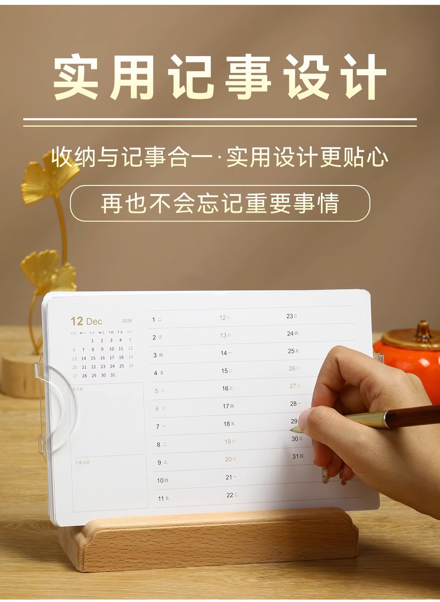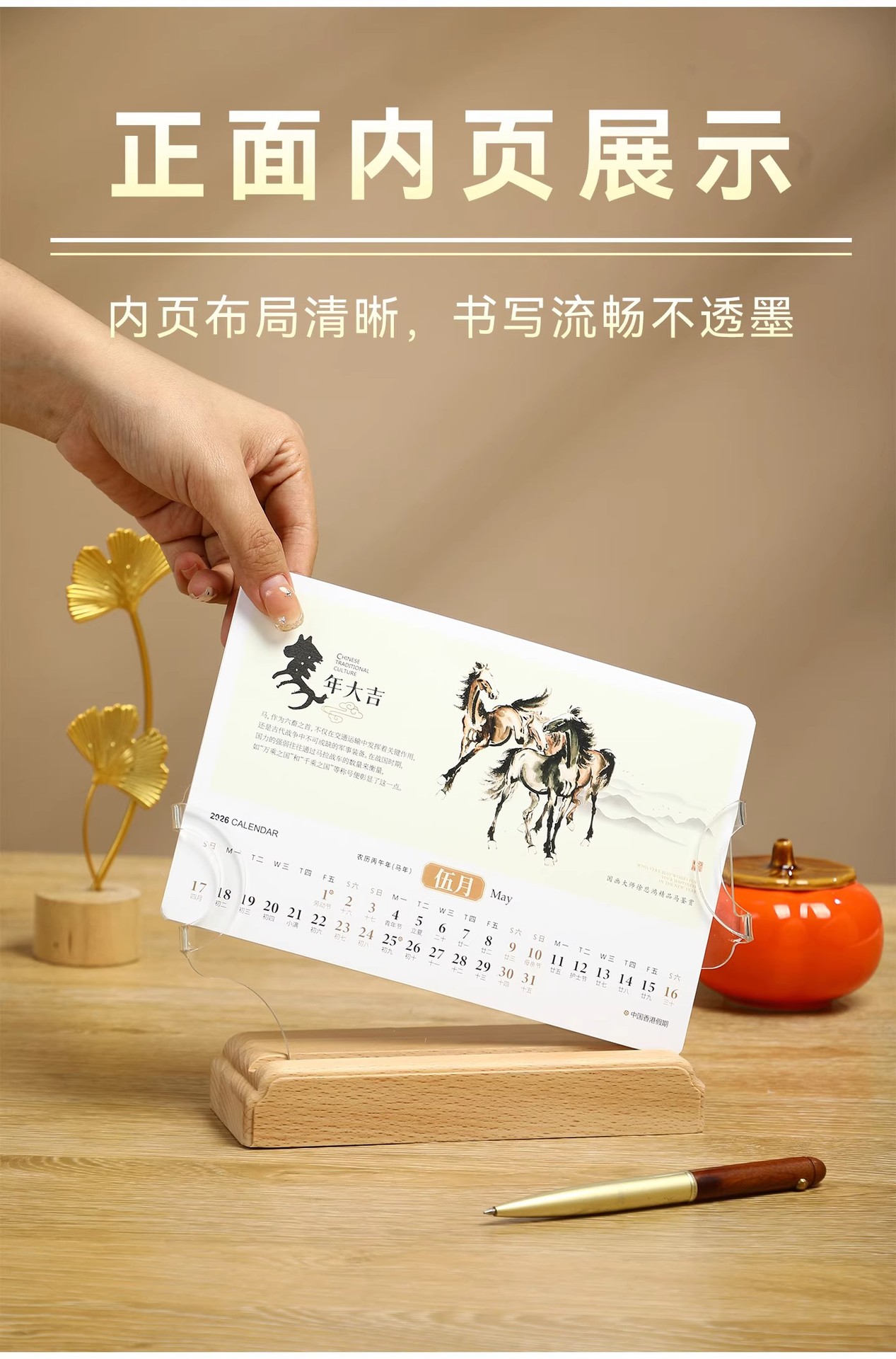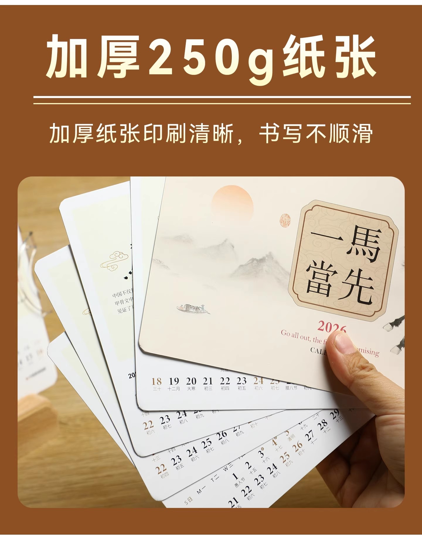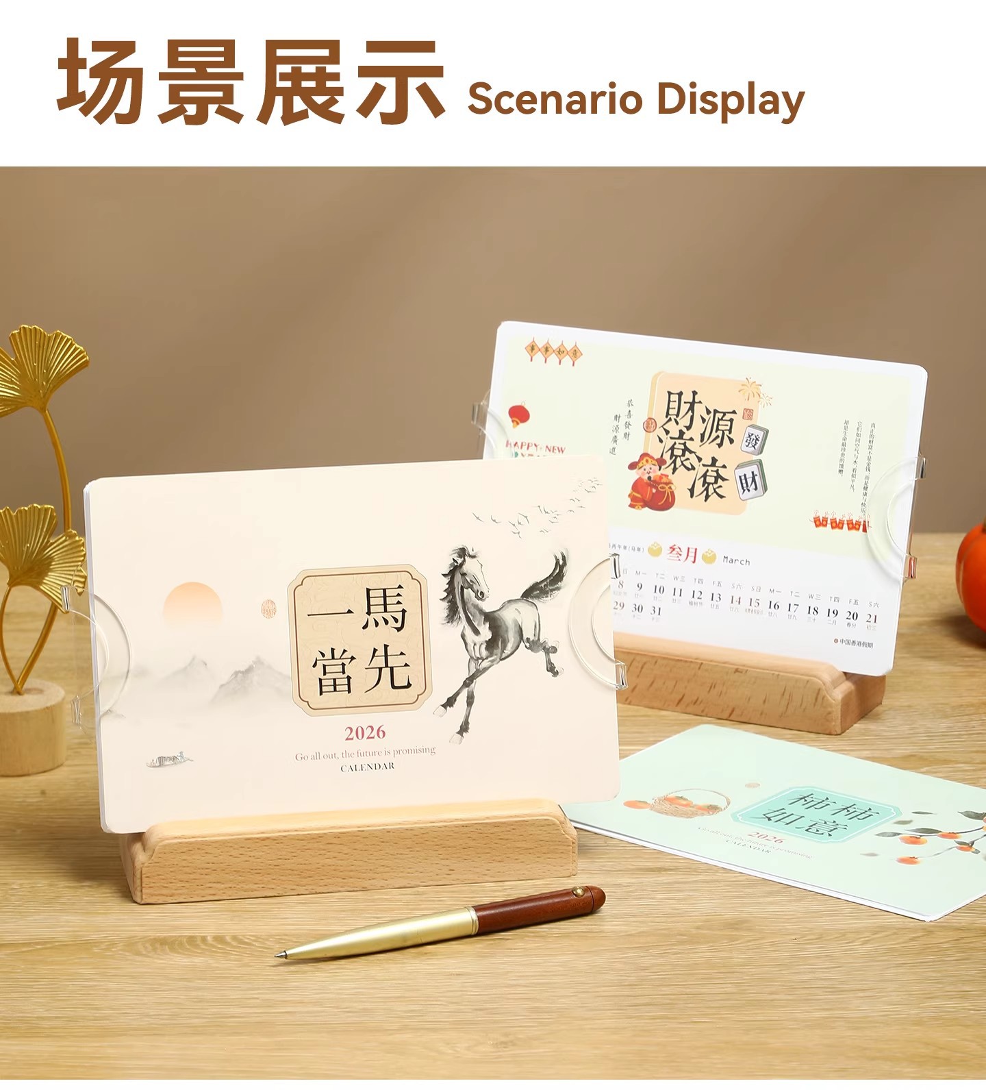 2026年实木台历定制桌面摆件办公打卡日历本企业订做logo礼盒装