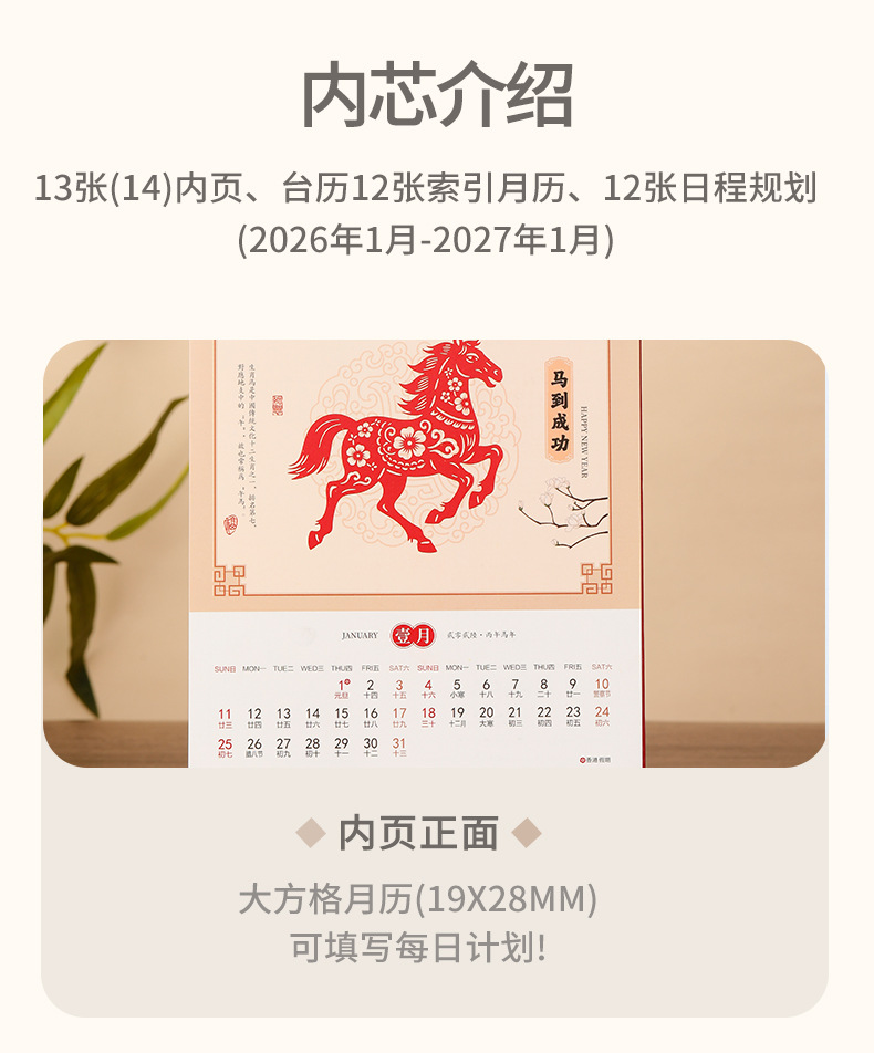2026国潮风台历定制LOGO企业卡通专版台历批发广告日历台历定制