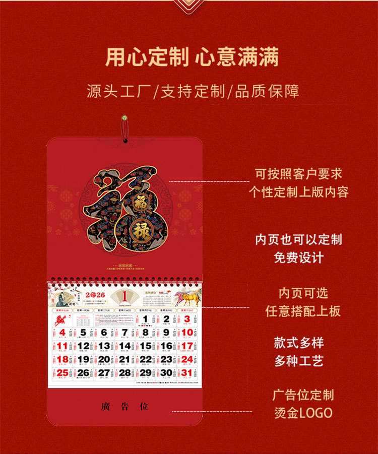 广告台历定制2026年桌面日历马年月历订做专版台历批发可印LOGO