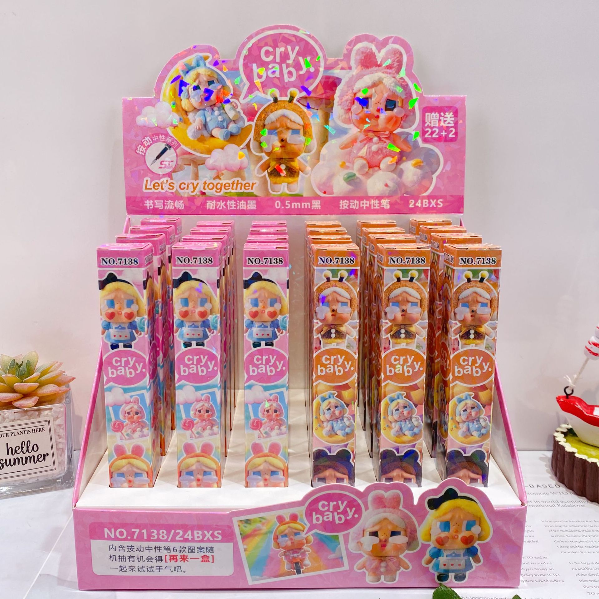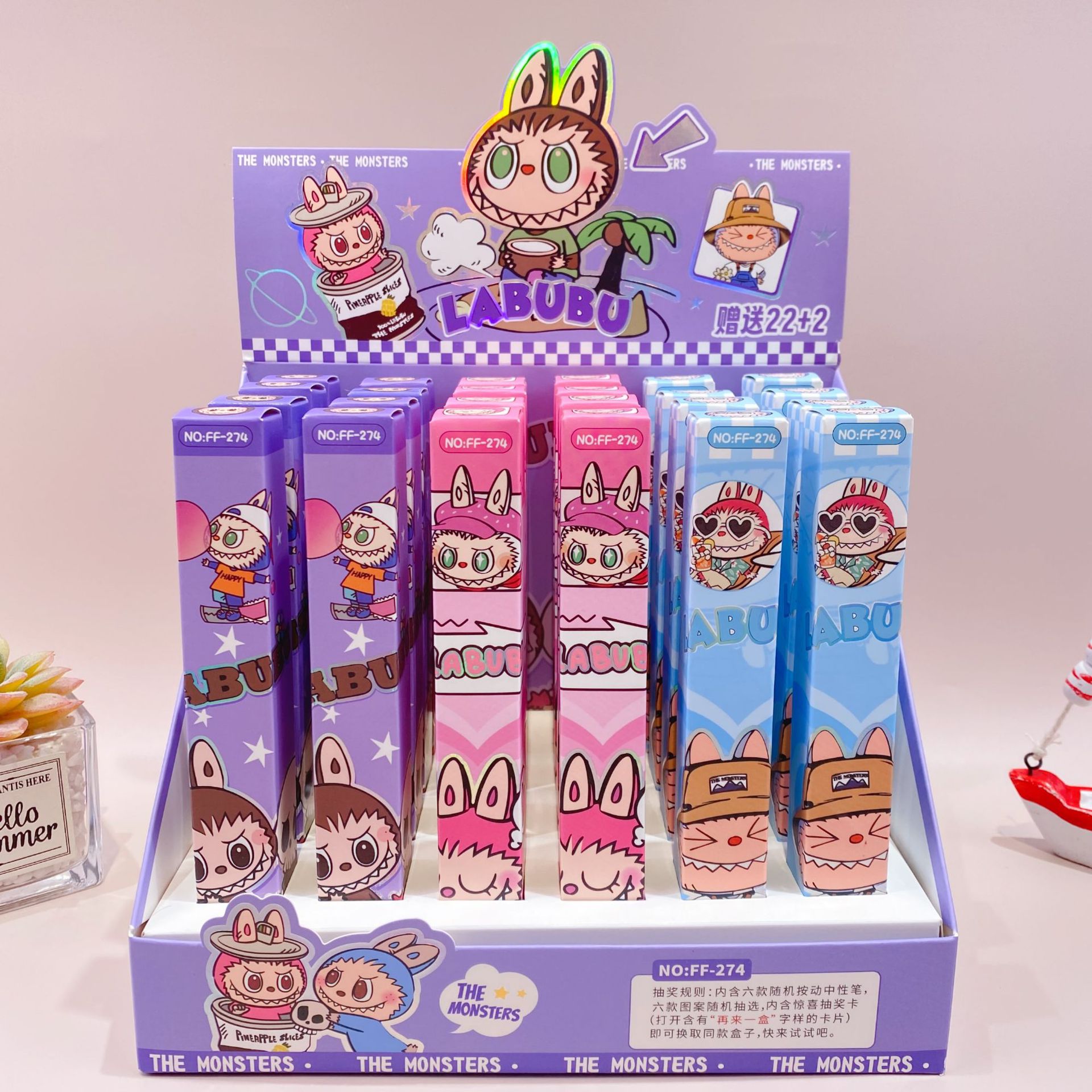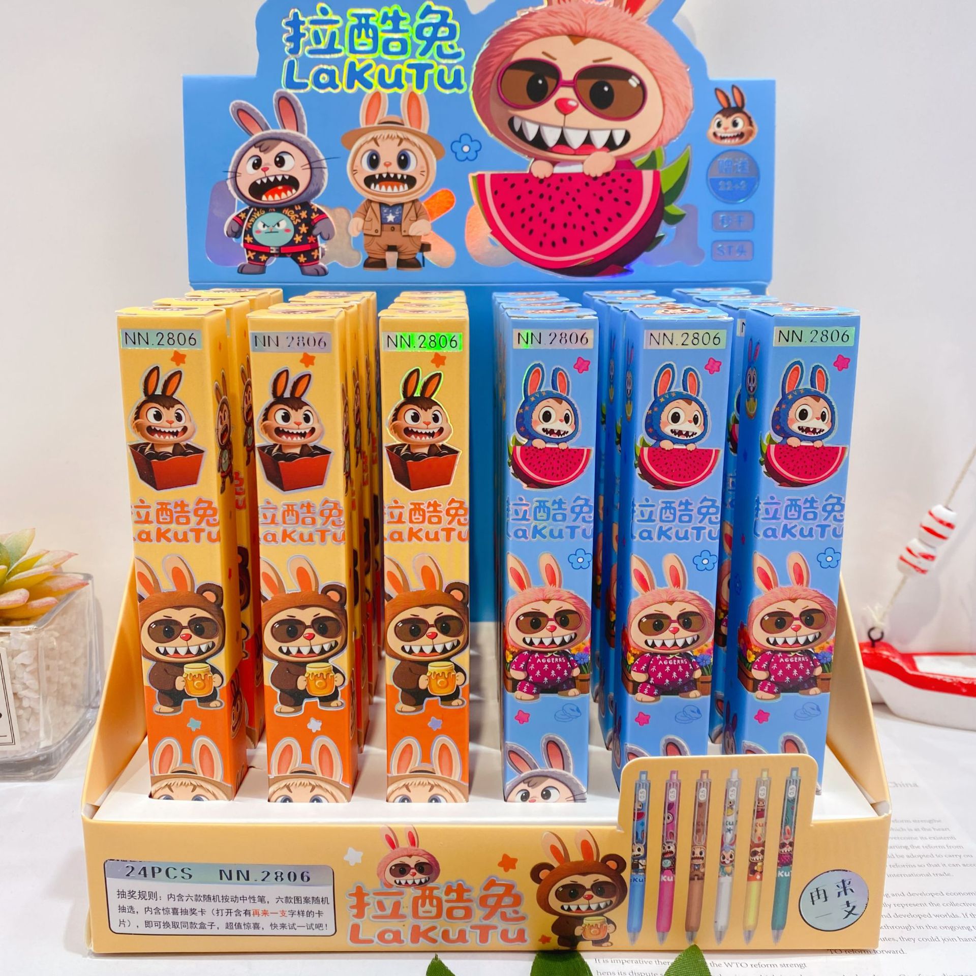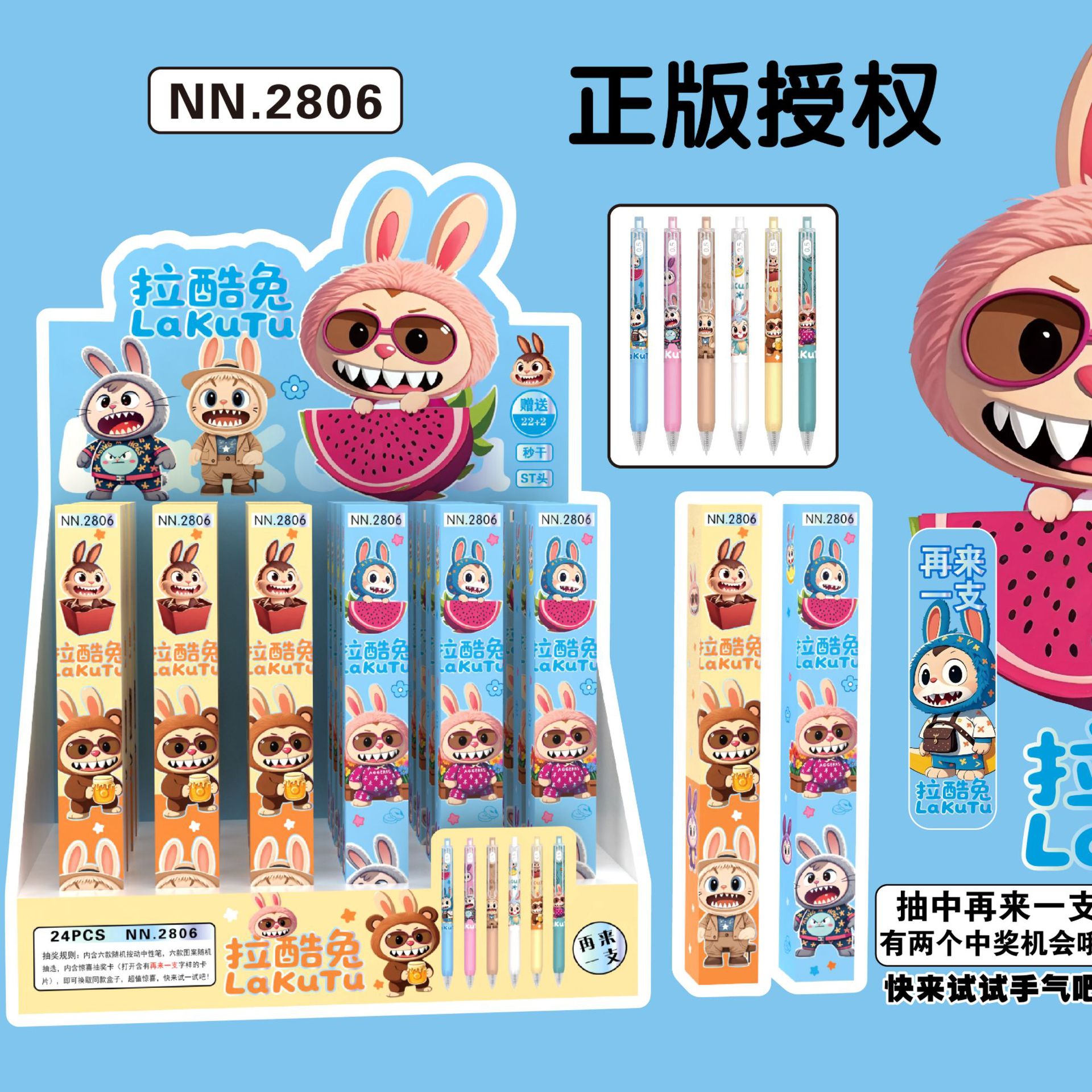 新款卡通抽奖盲盒笔中性笔再来一盒按动款水性笔拍22发24支