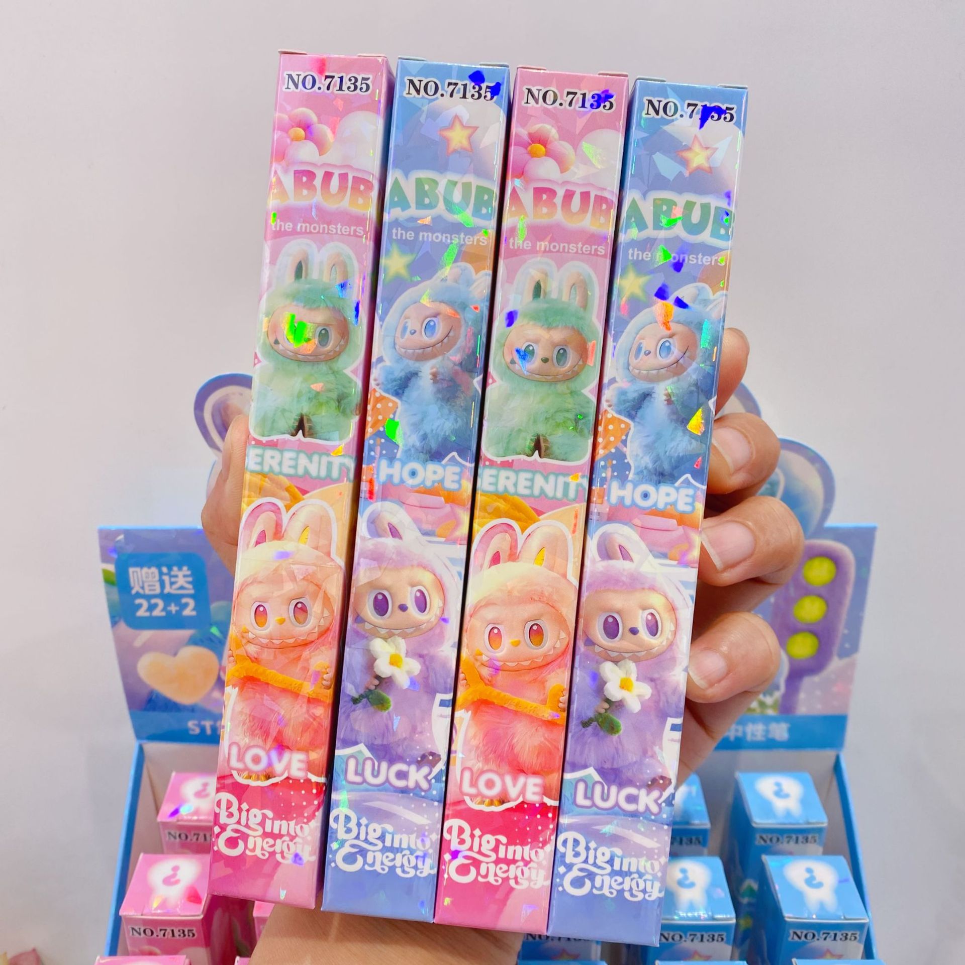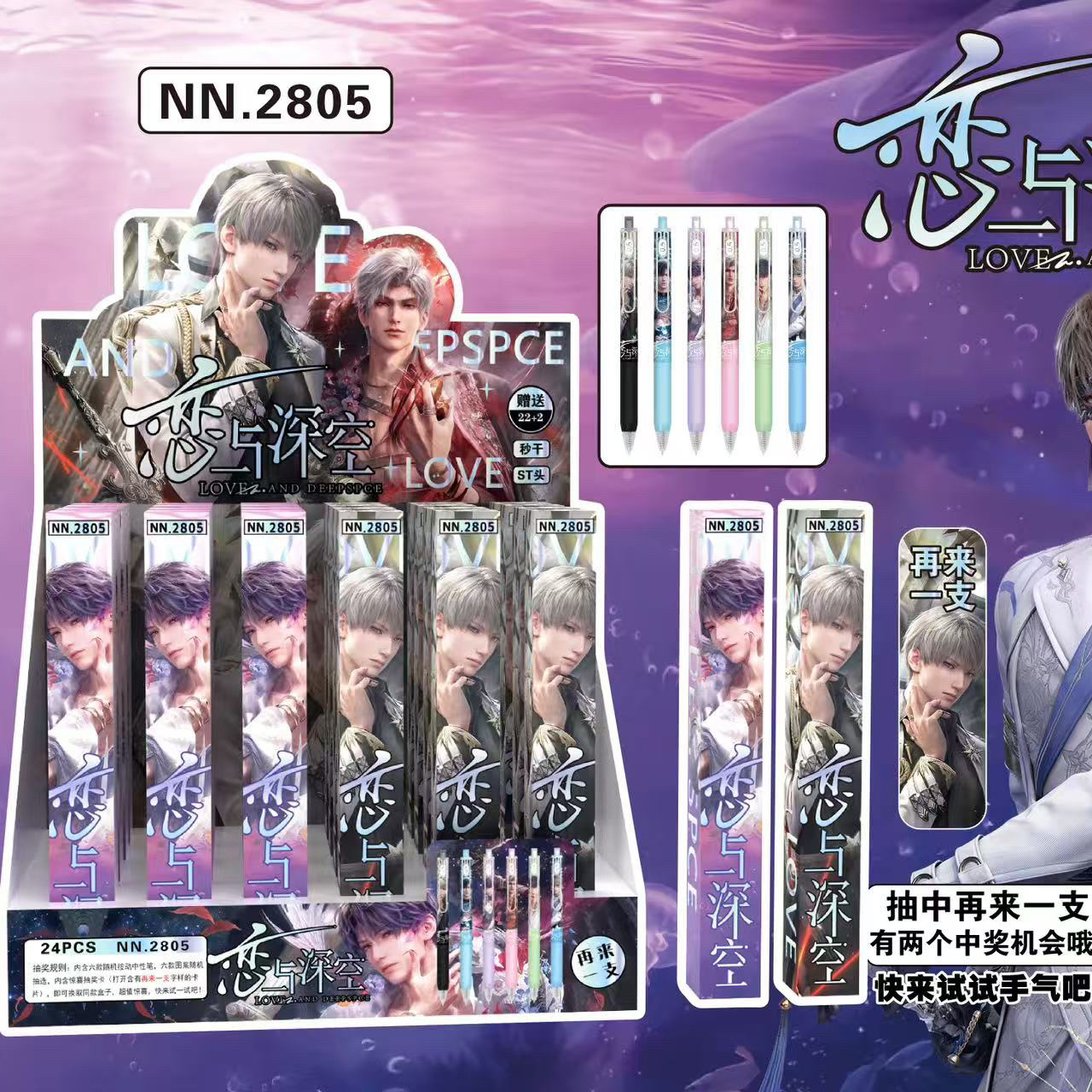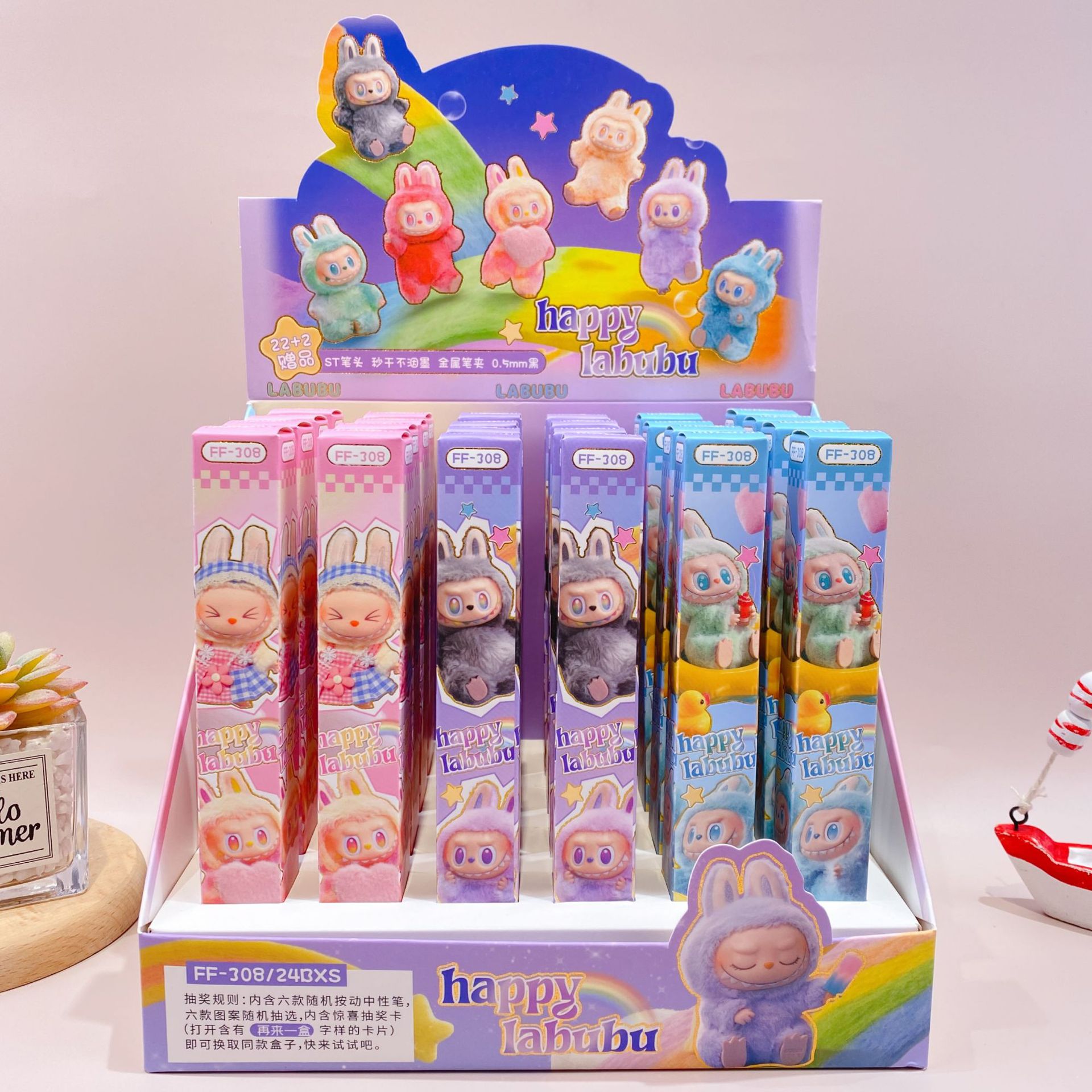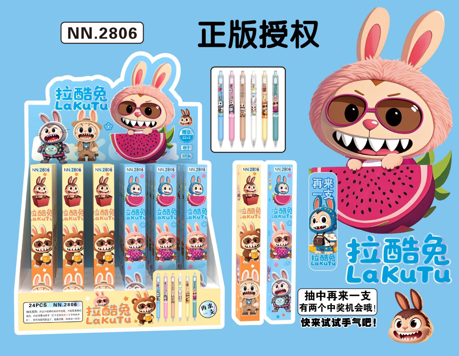 新款卡通抽奖盲盒笔中性笔再来一盒按动款水性笔拍22发24支