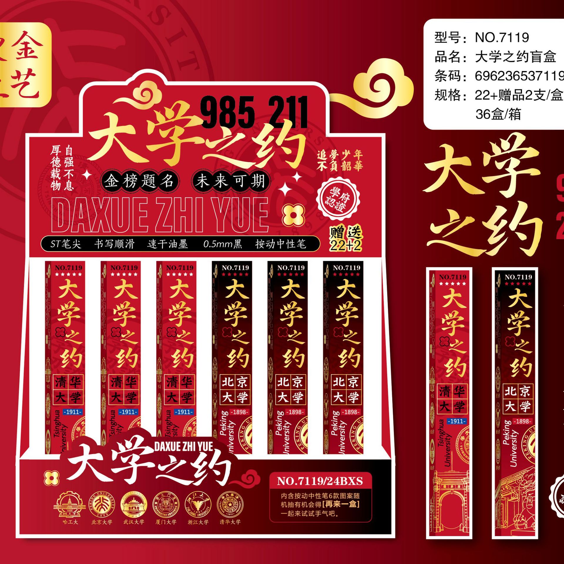 新款大学之约名校抽奖盲盒笔中性笔再来一盒按动款水性笔拍22发24