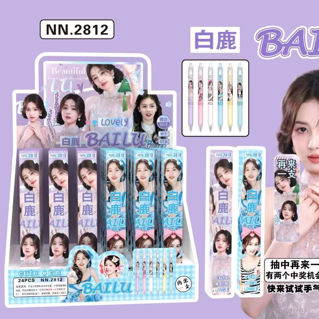 明星白露抽奖盲盒笔中性笔再来一盒按动款高颜值水性笔拍22发24支