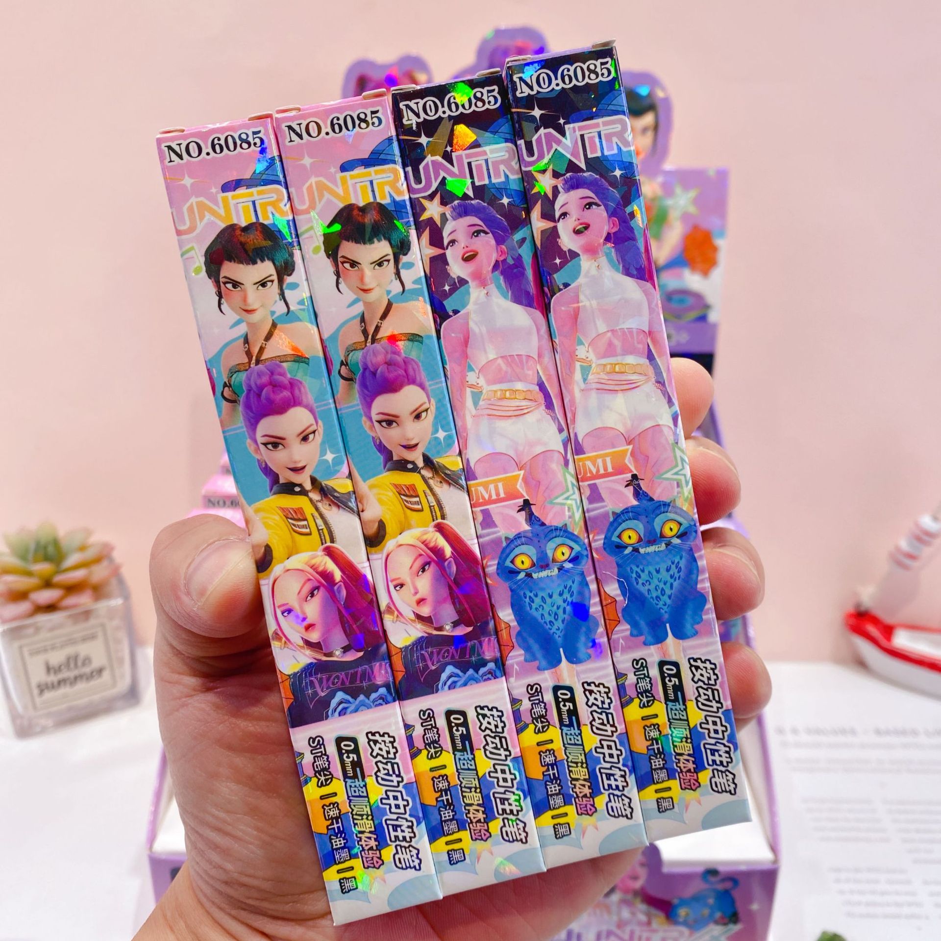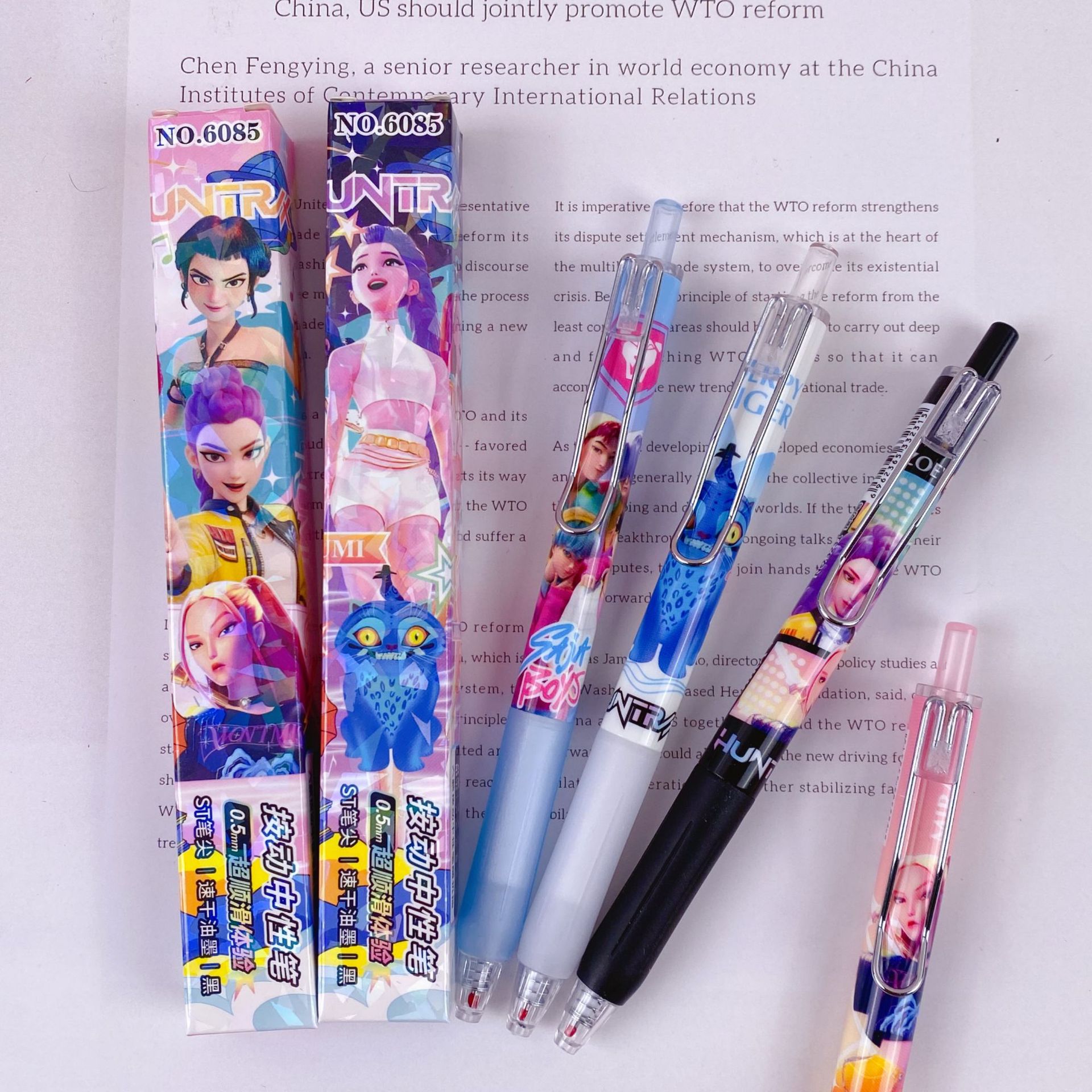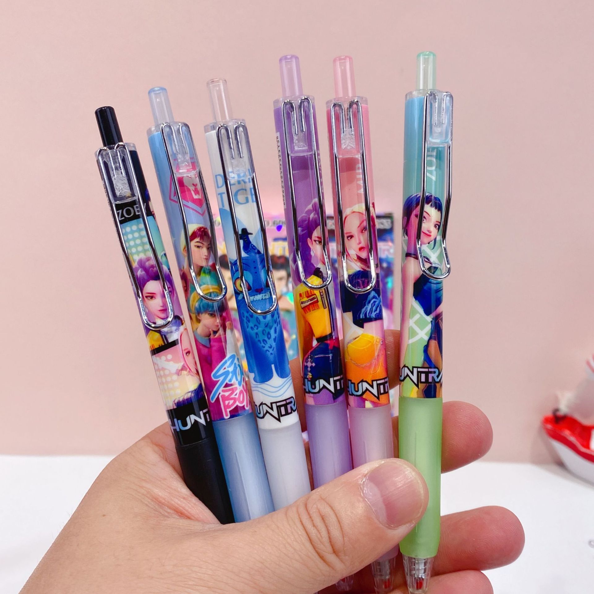 新款创意魔猎女团中性笔盲盒笔可爱卡通高颜值学生按动签字笔水笔