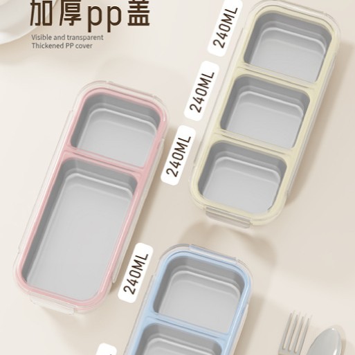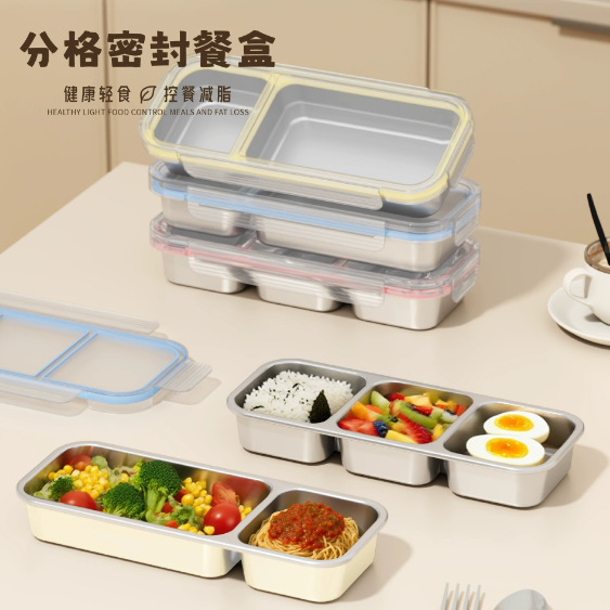 多巴胺304不锈钢分格不串味带盖保鲜盒轻食减脂分装盒寿司外带盒