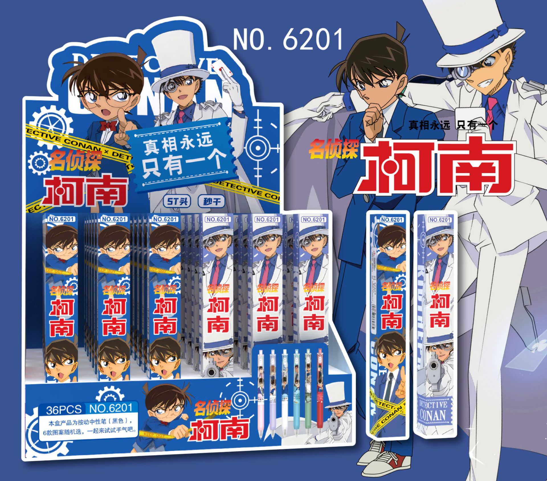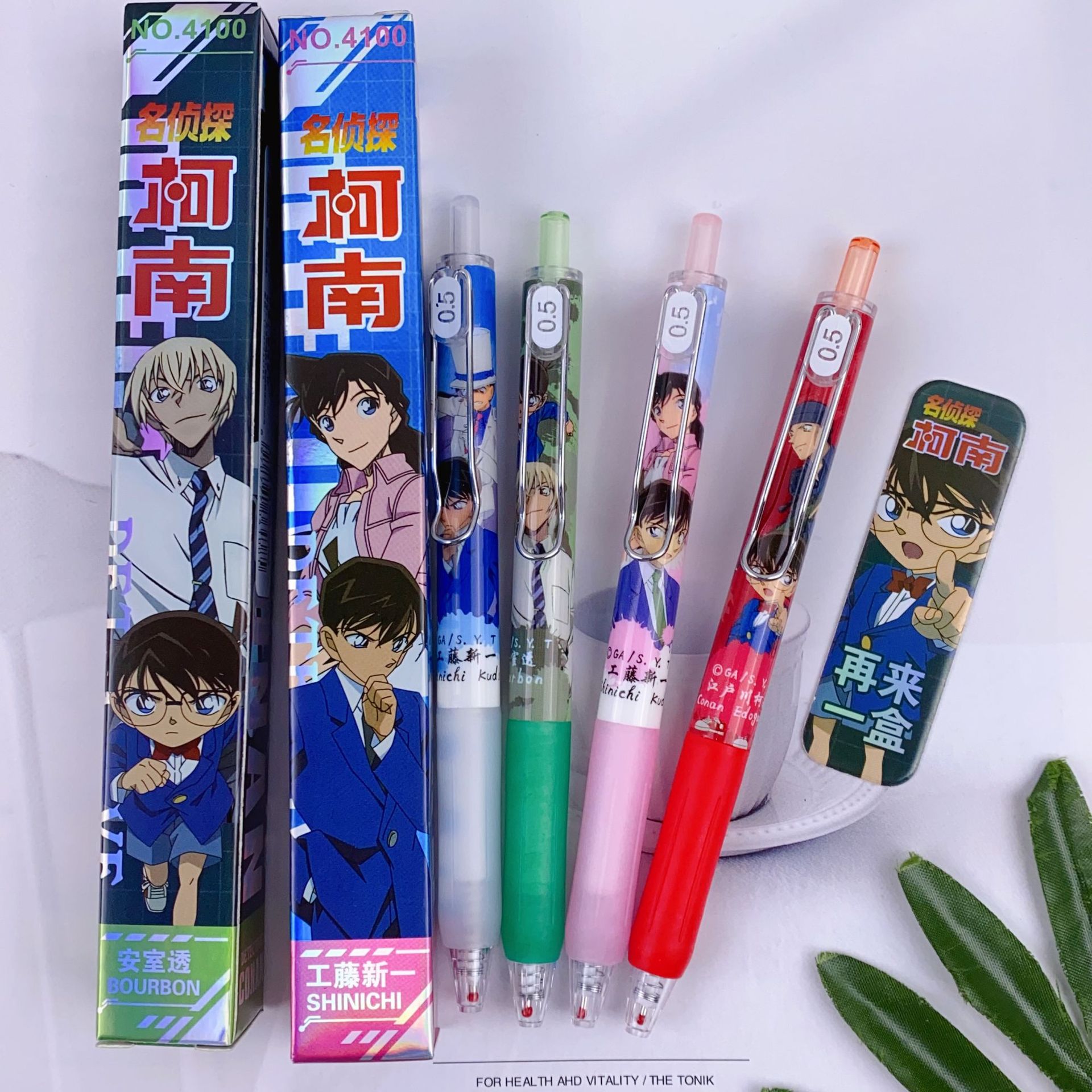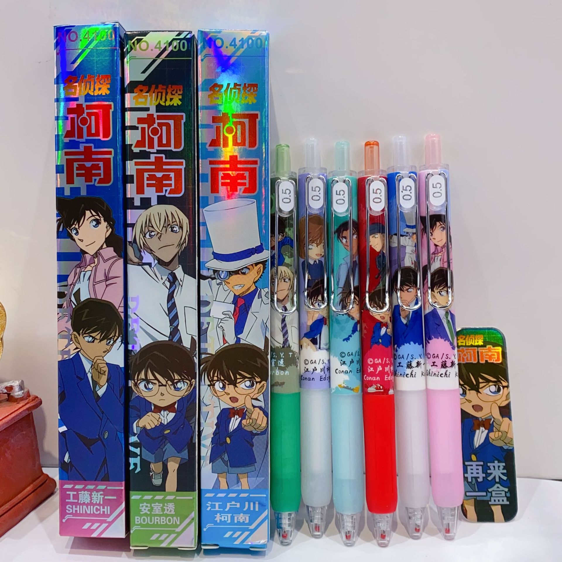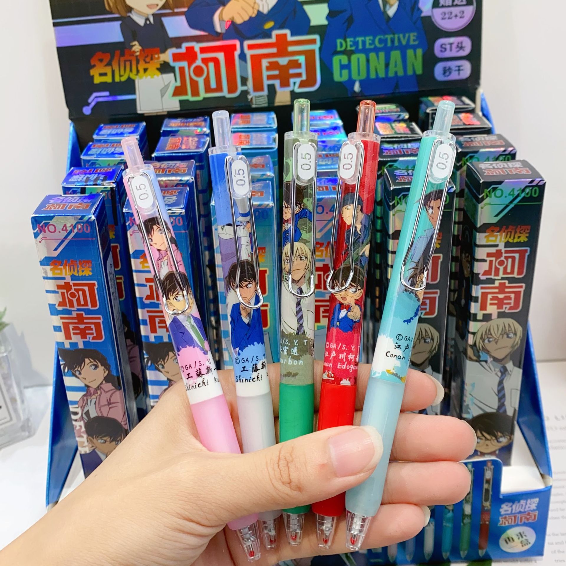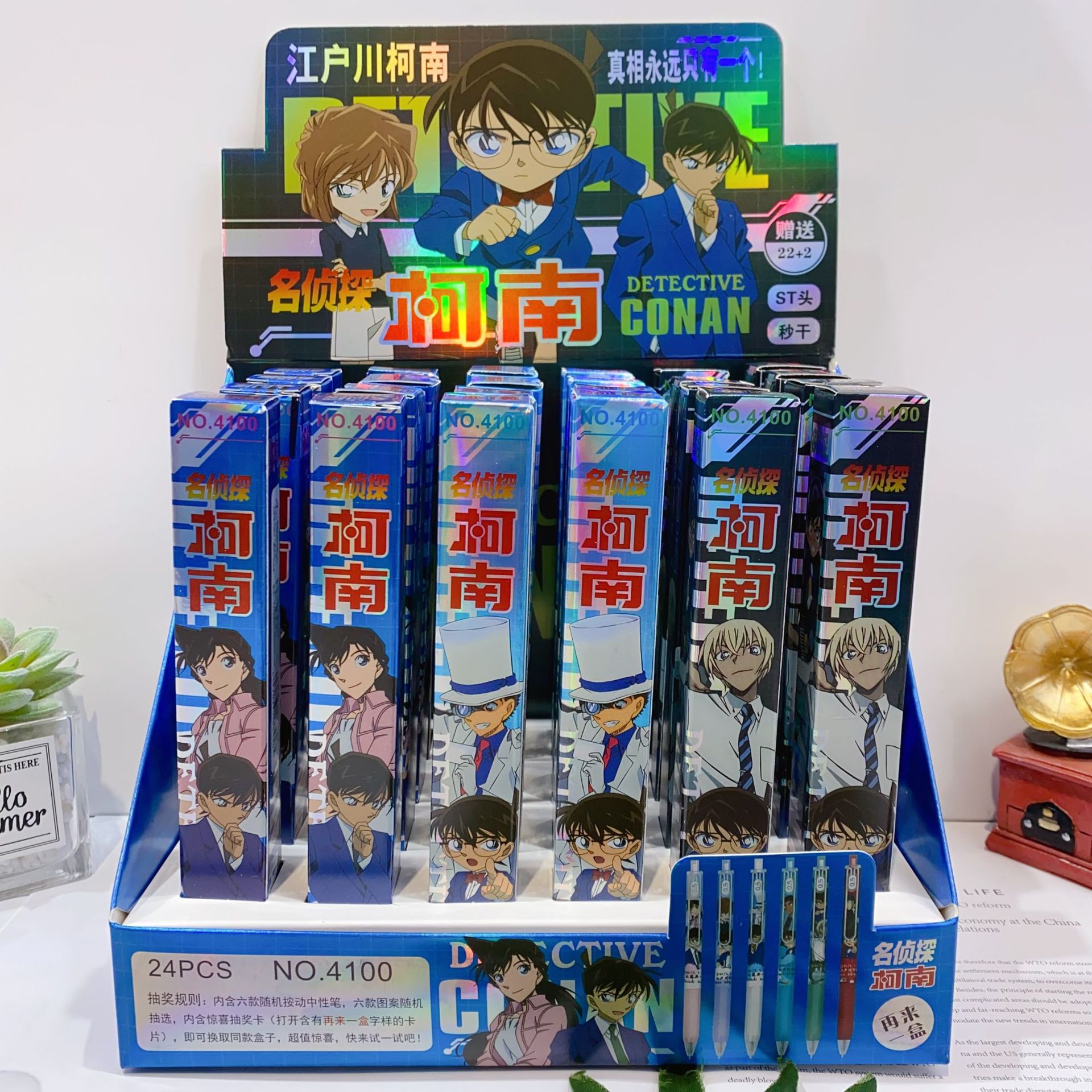 新款卡通柯 南抽奖盲盒笔中性笔再来一盒按动款水性笔拍22发24支