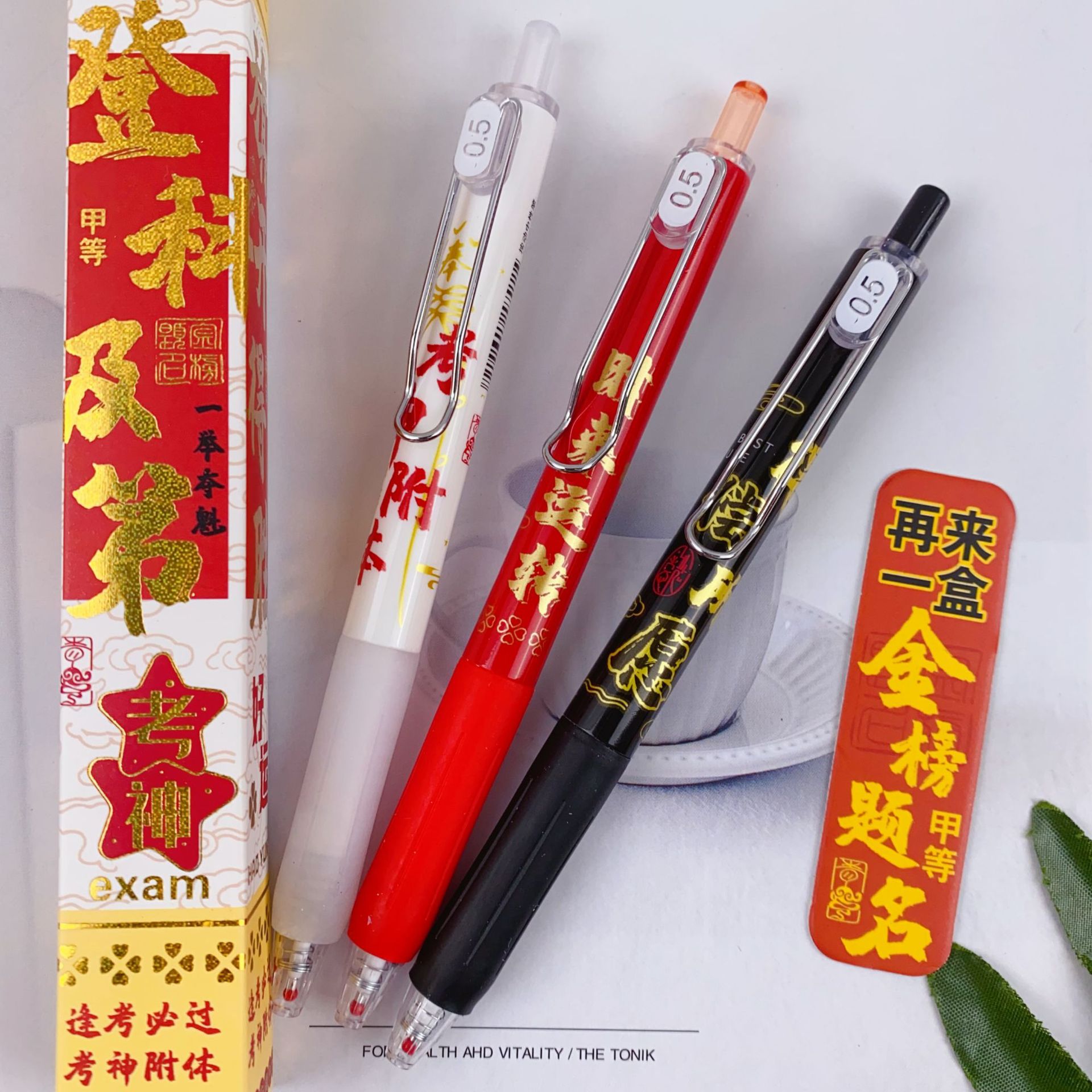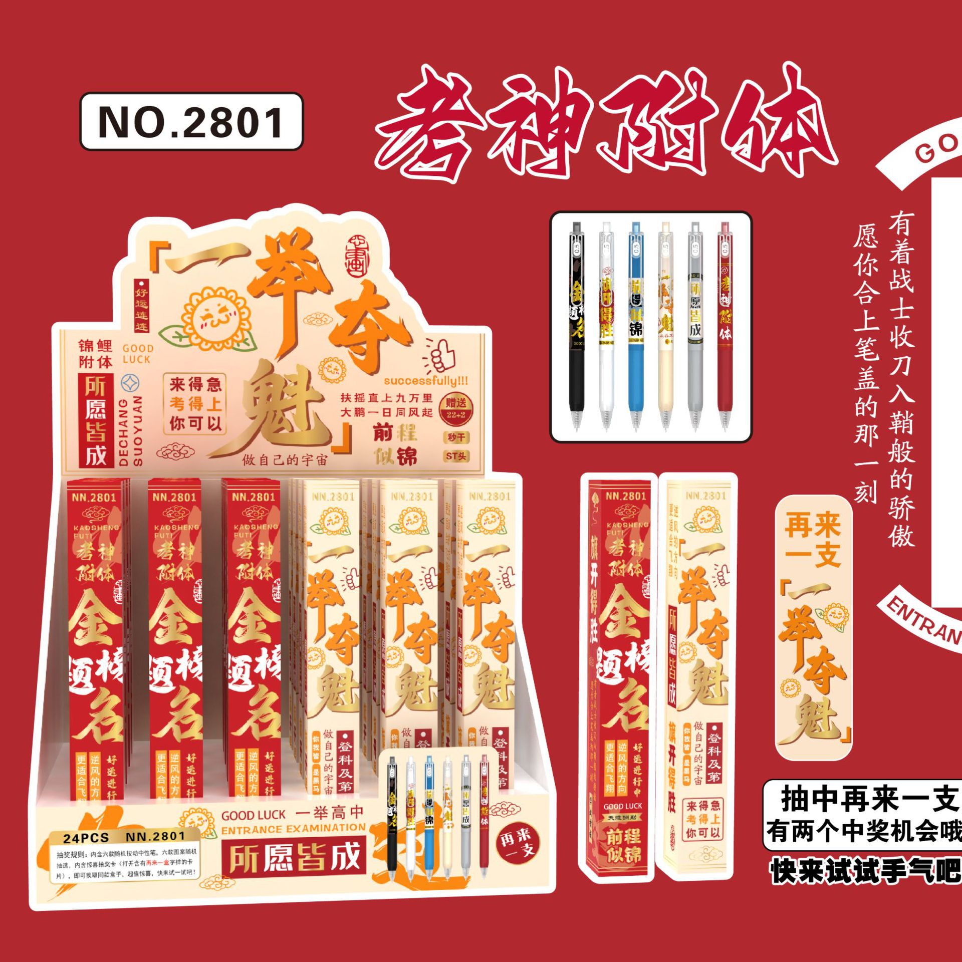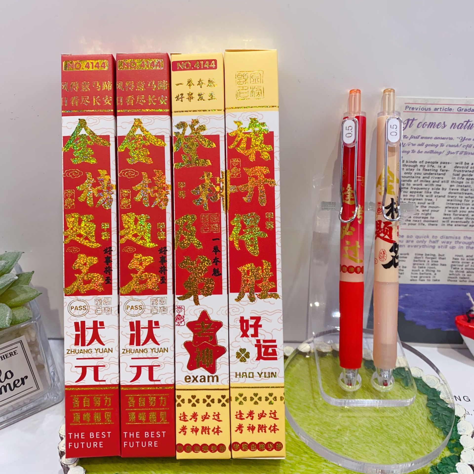 新款金榜题名祈福抽奖盲盒笔中性笔再来一盒按动款水性笔拍22发24