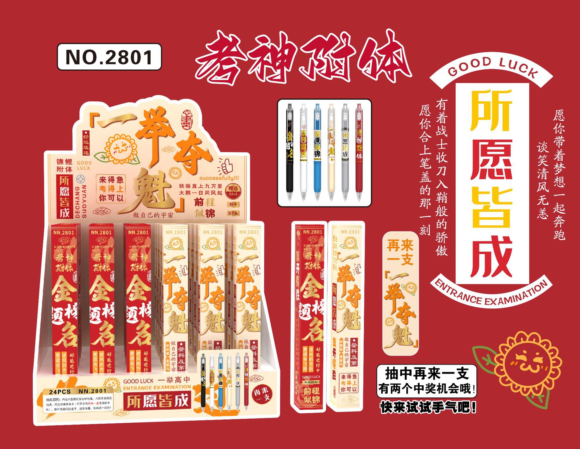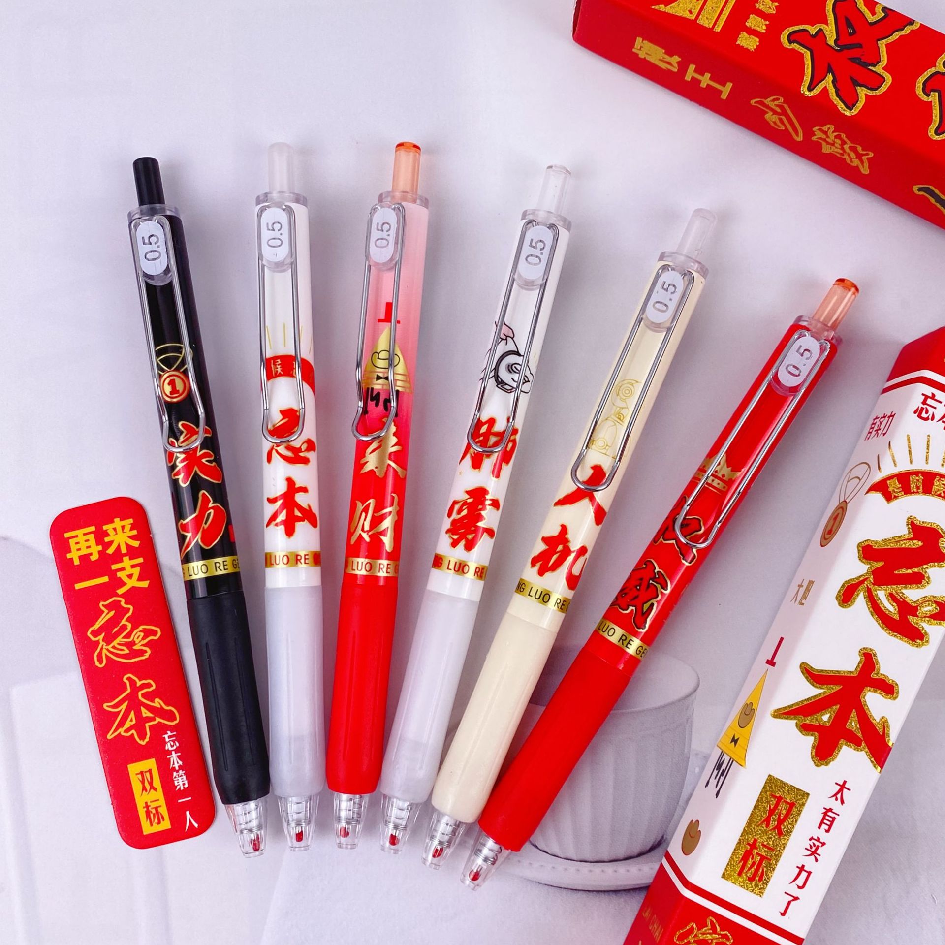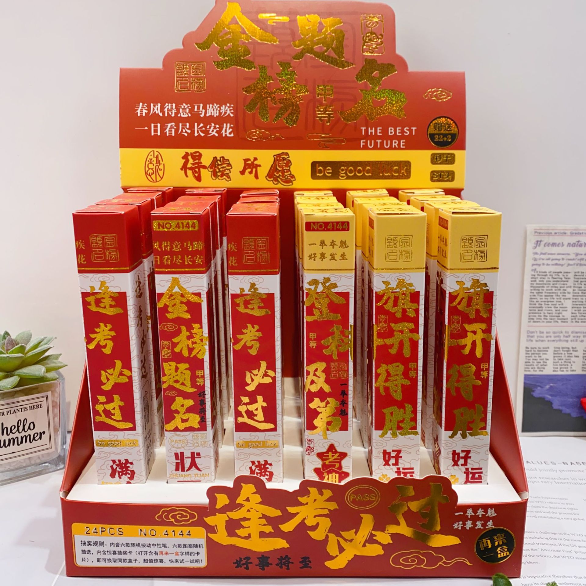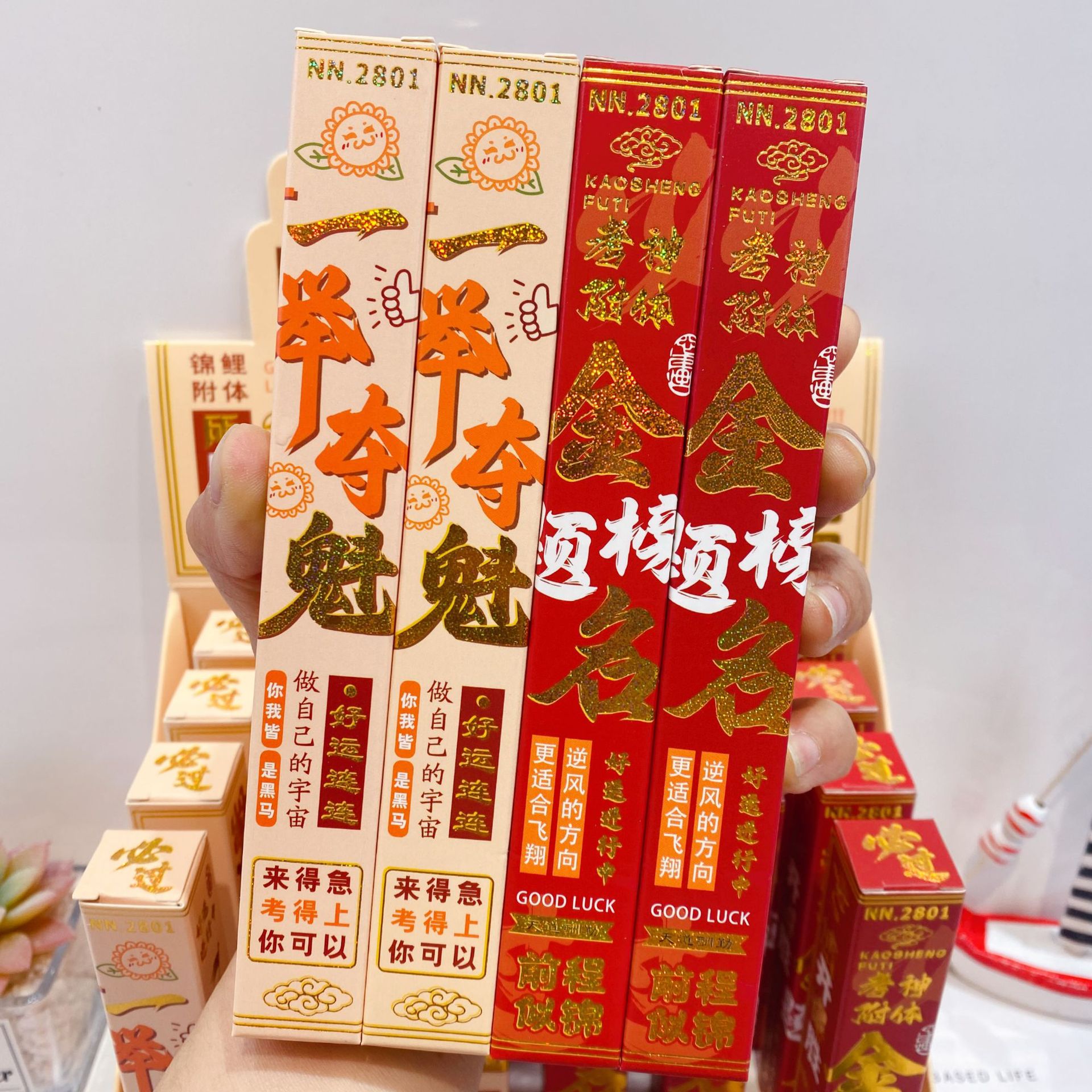 新款金榜题名祈福抽奖盲盒笔中性笔再来一盒按动款水性笔拍22发24