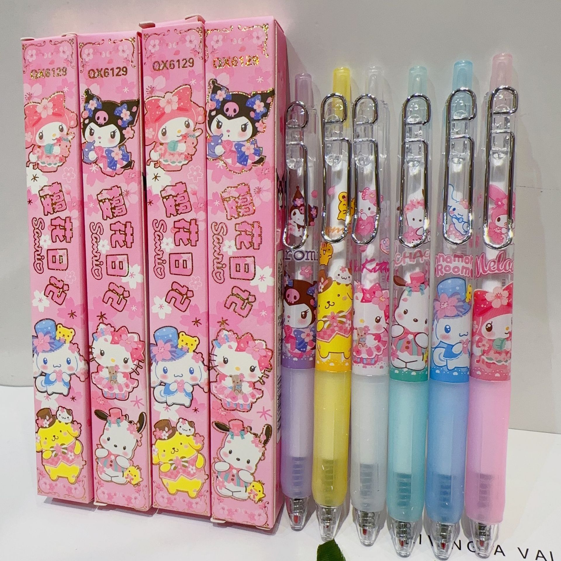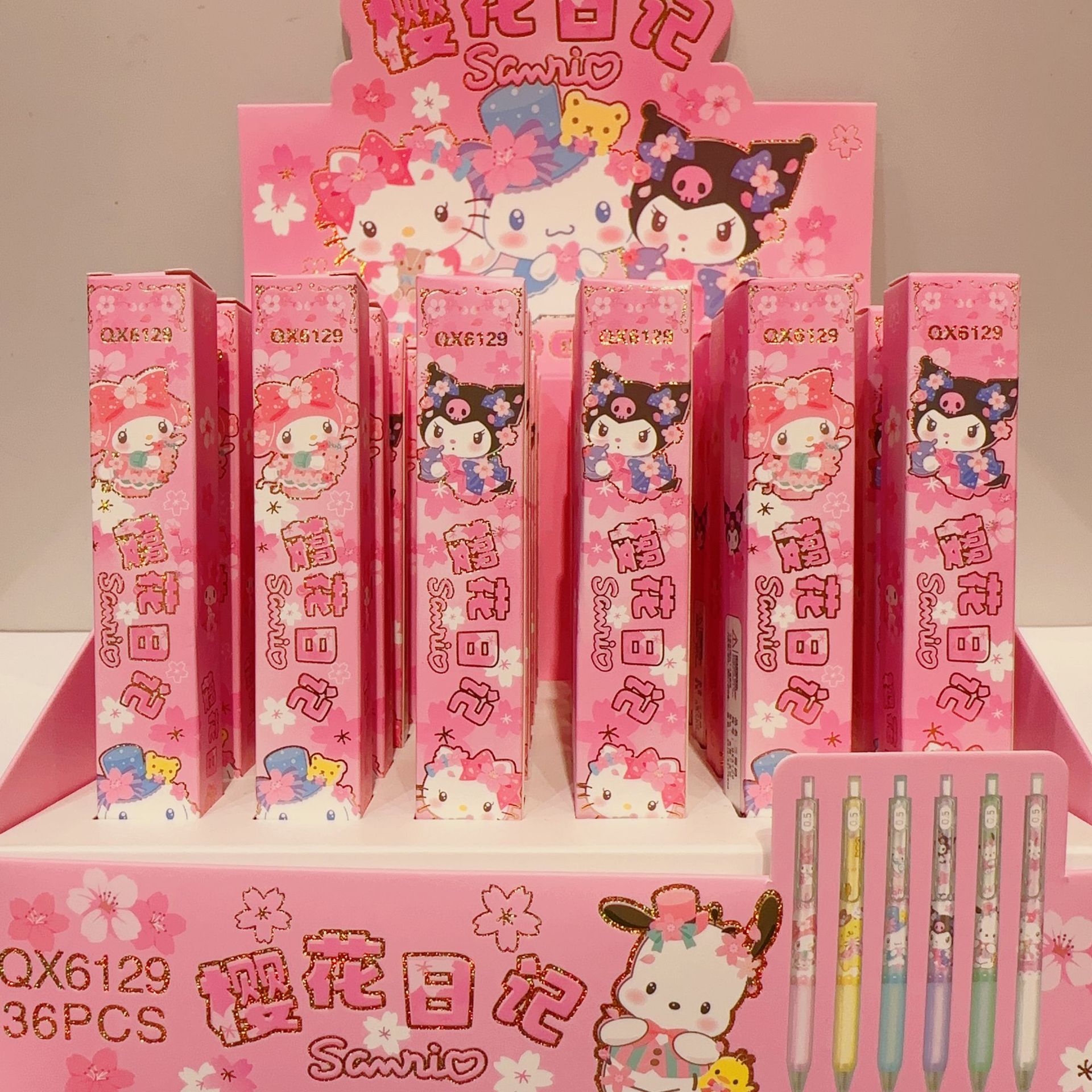 新款卡通三莉欧家族盲盒笔中性笔可爱樱花季按动款水性笔签字笔