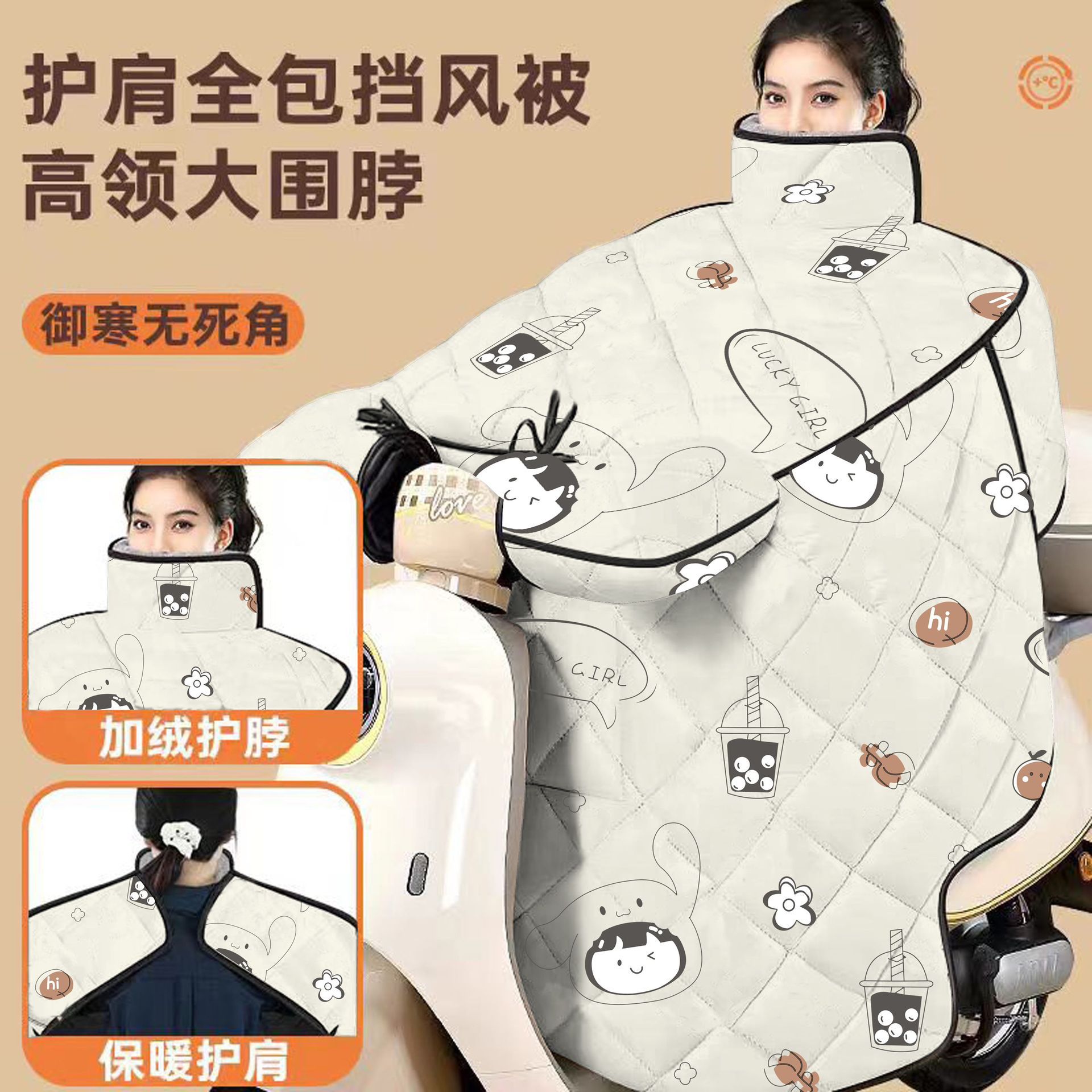 电动车挡风被冬季加大特厚斗篷式护肩保暖挡风罩全包围护脖防风罩
