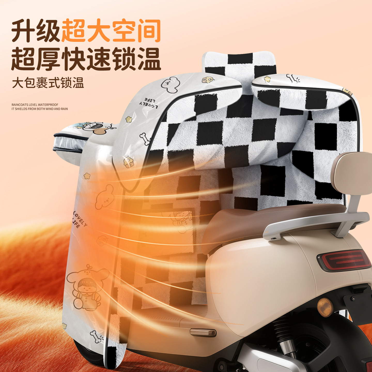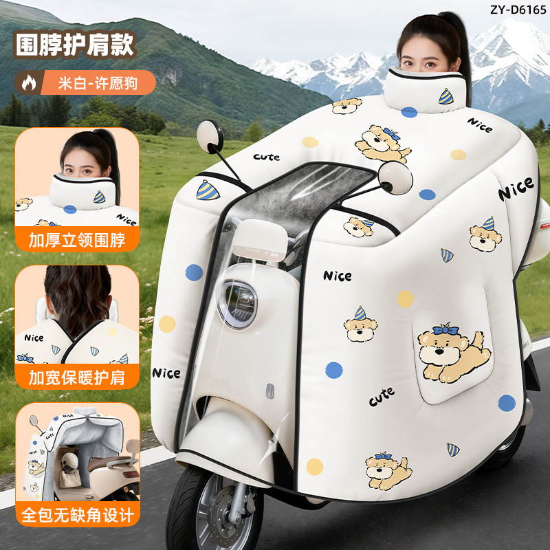 正雨电动车挡风被冬季加大绒加厚款电瓶摩托车四季通用防水骑行
