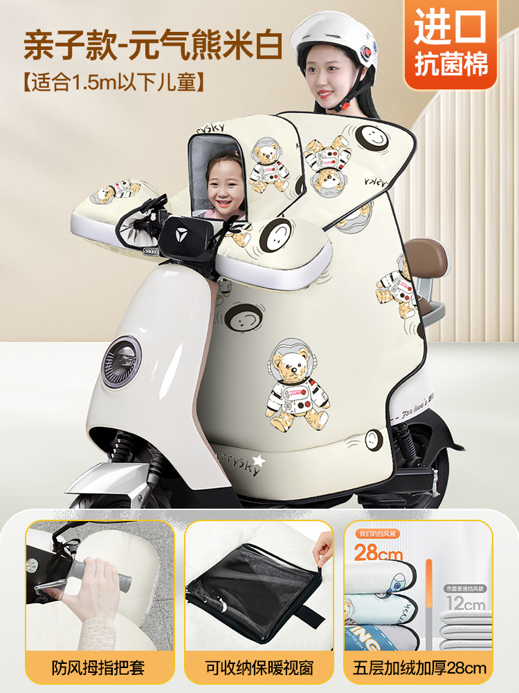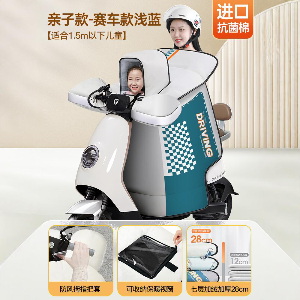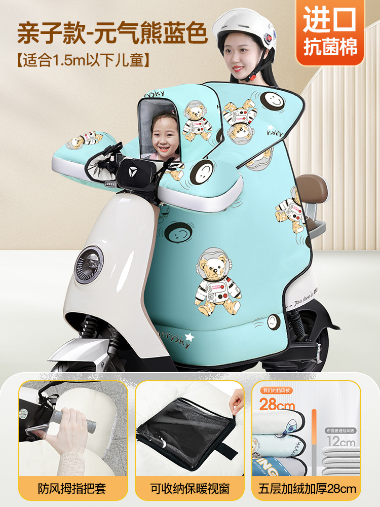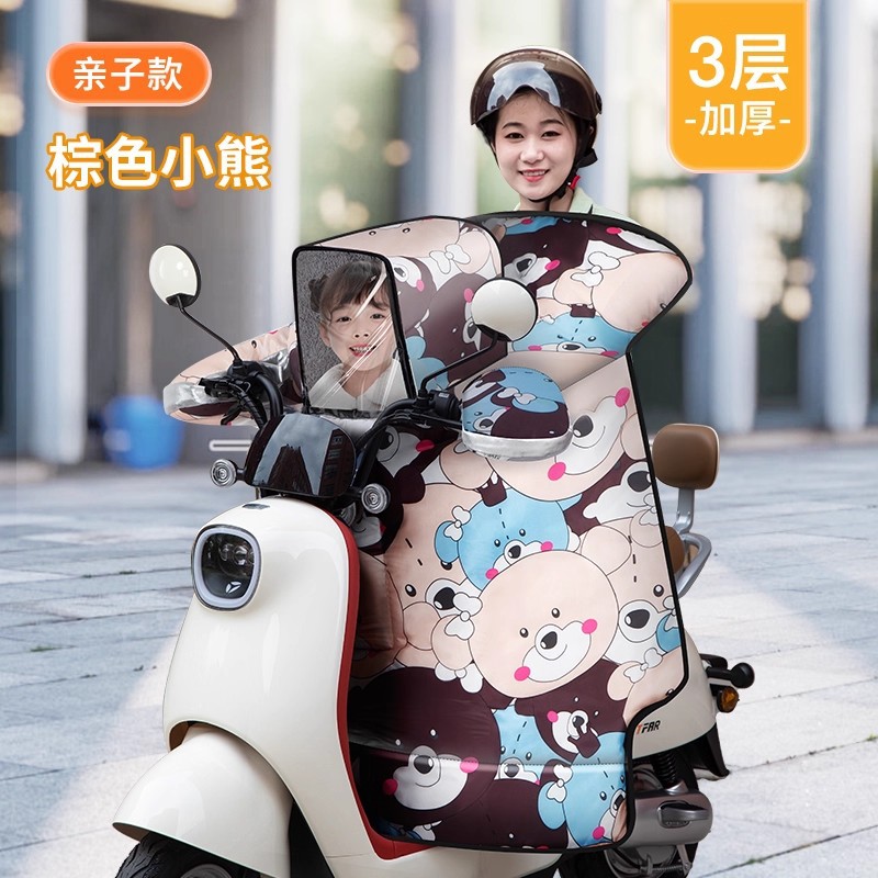 儿童亲子款电动车挡风被冬季加绒加厚春秋电瓶摩托车防水防风寒罩