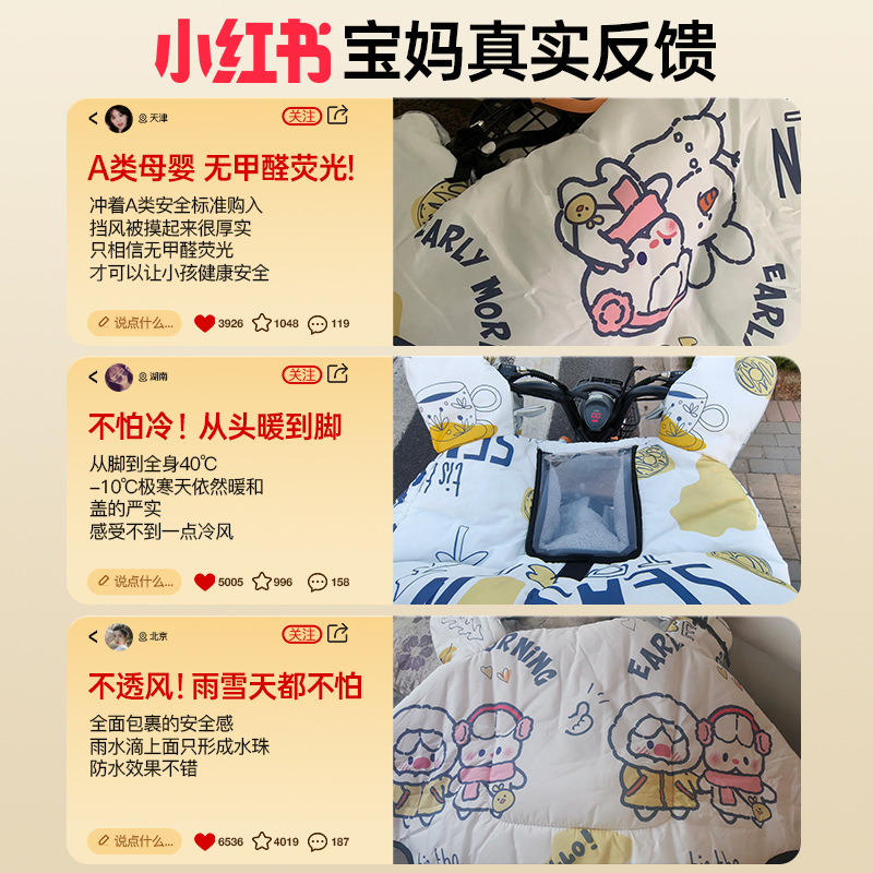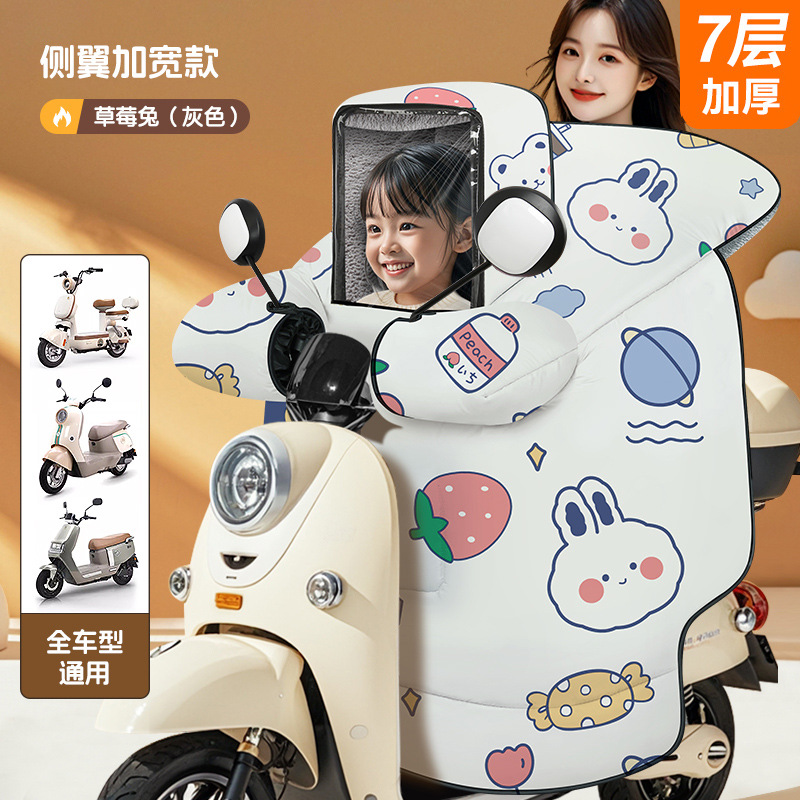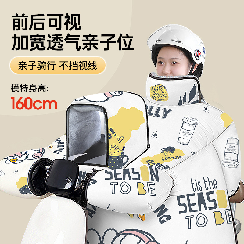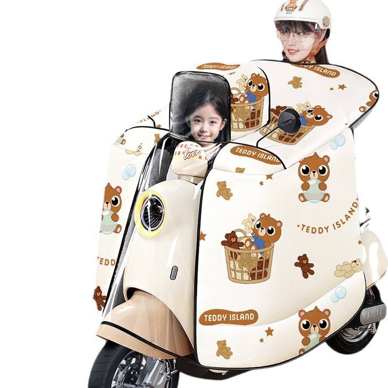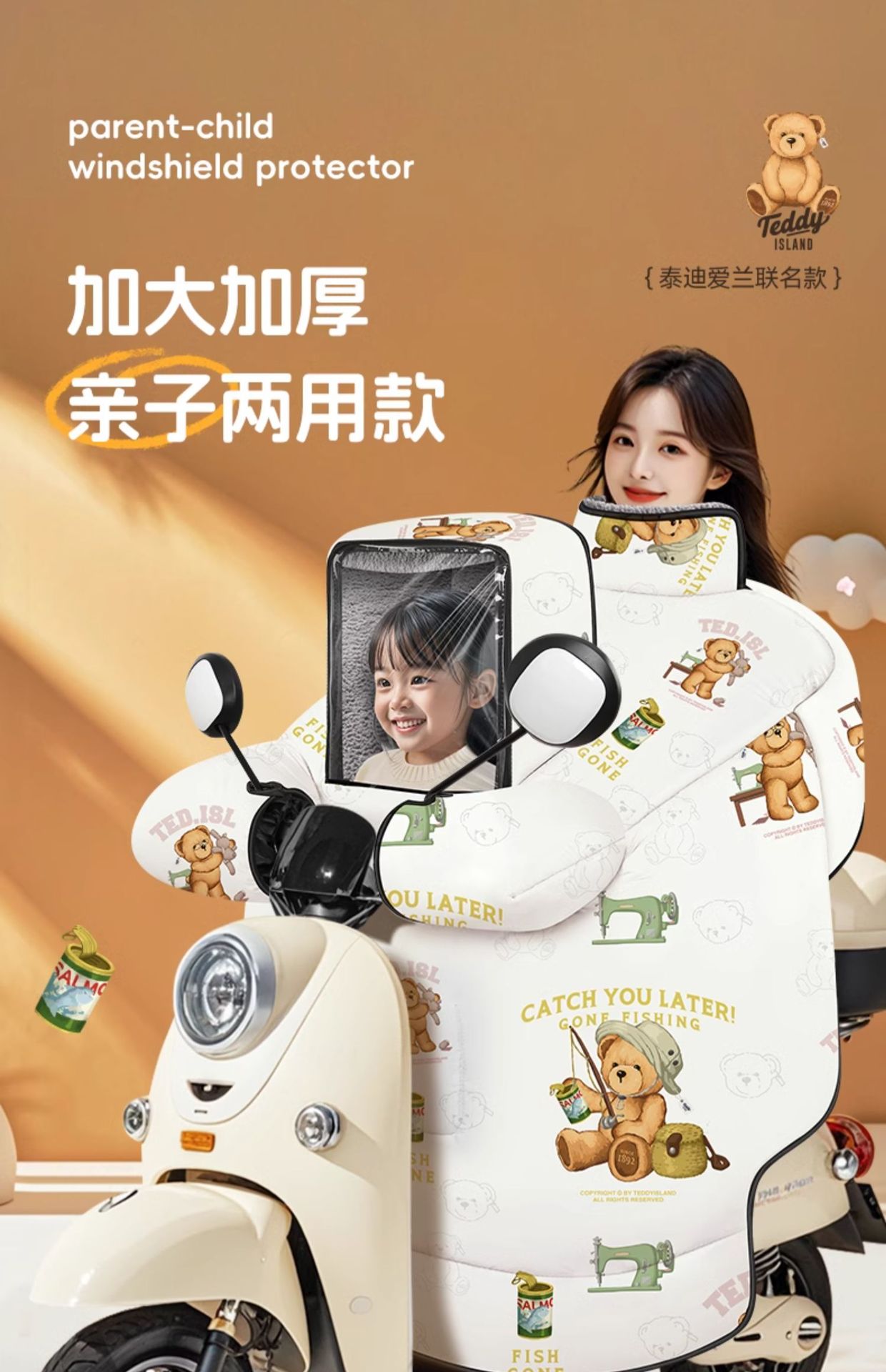 儿童亲子款电动车挡风被冬季加绒加厚春秋电瓶摩托车防水防风寒罩