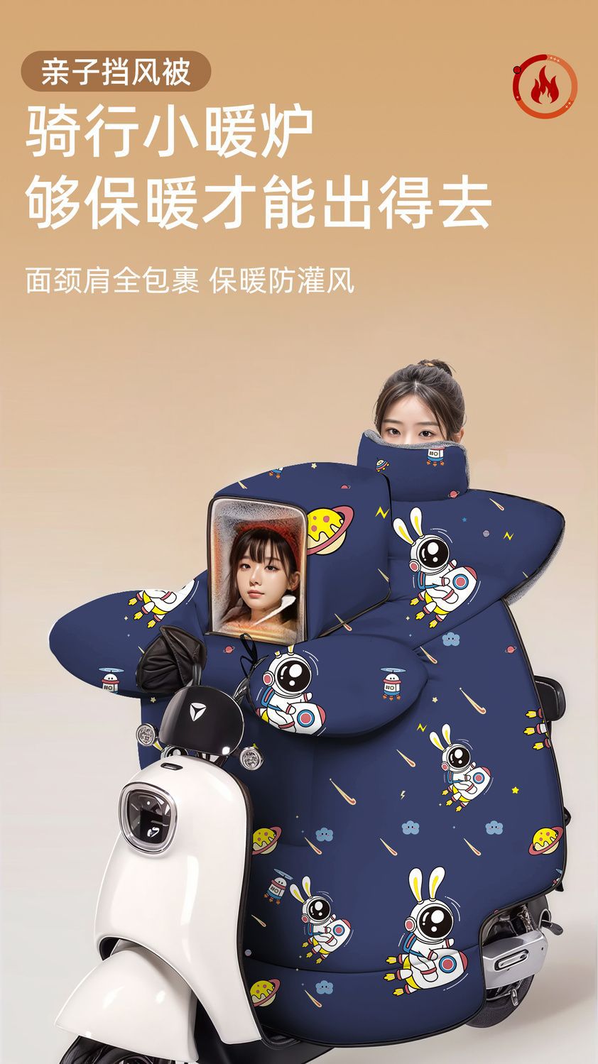 亲子挡风被加厚加大带娃神器防水电动车挡风罩儿童电瓶车挡风被