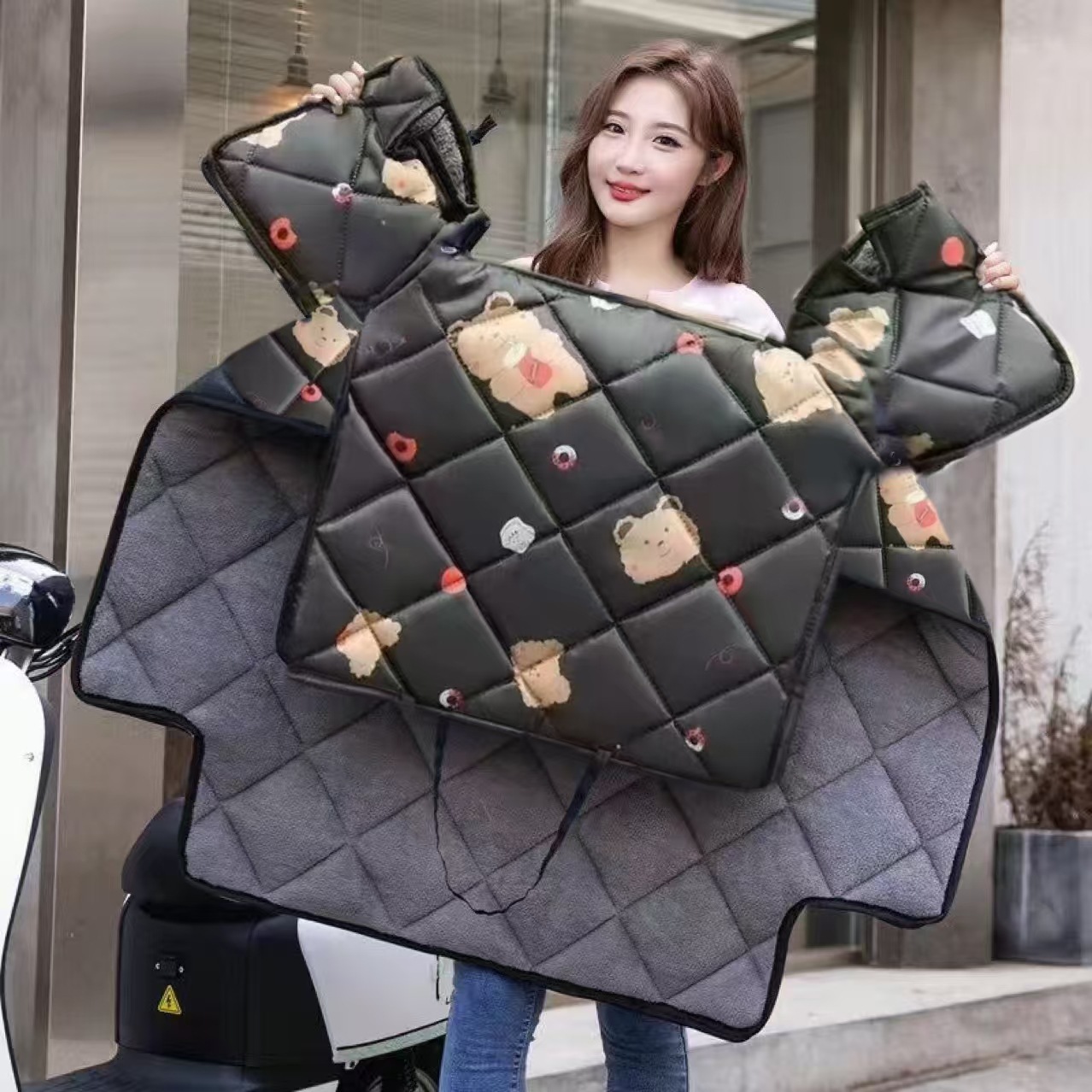 新款冬季电动车挡风被冬加厚加绒电瓶车防风被保暖摩托车防寒通用
