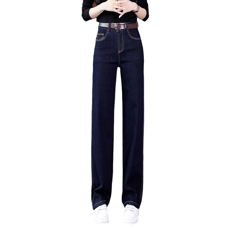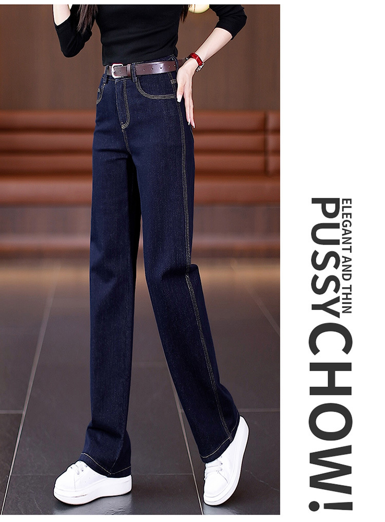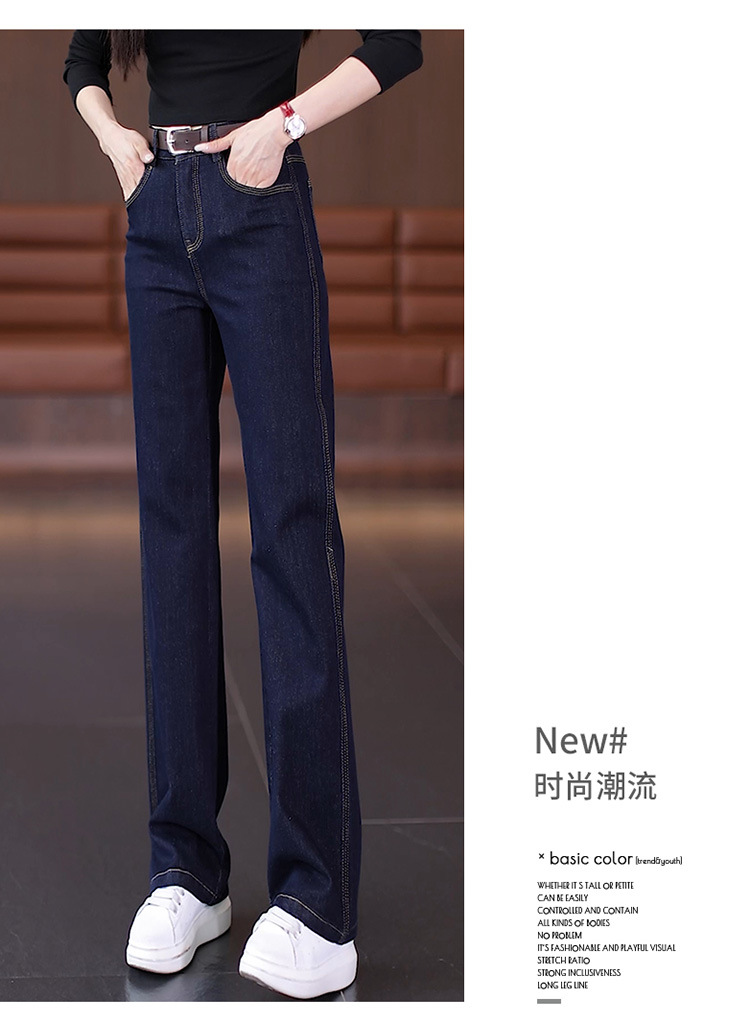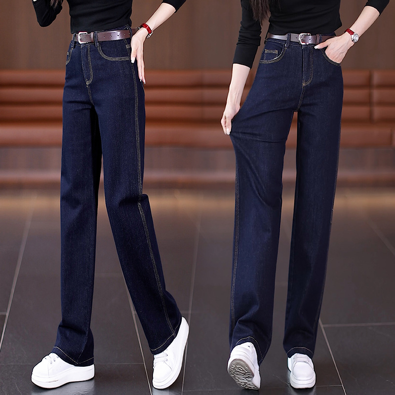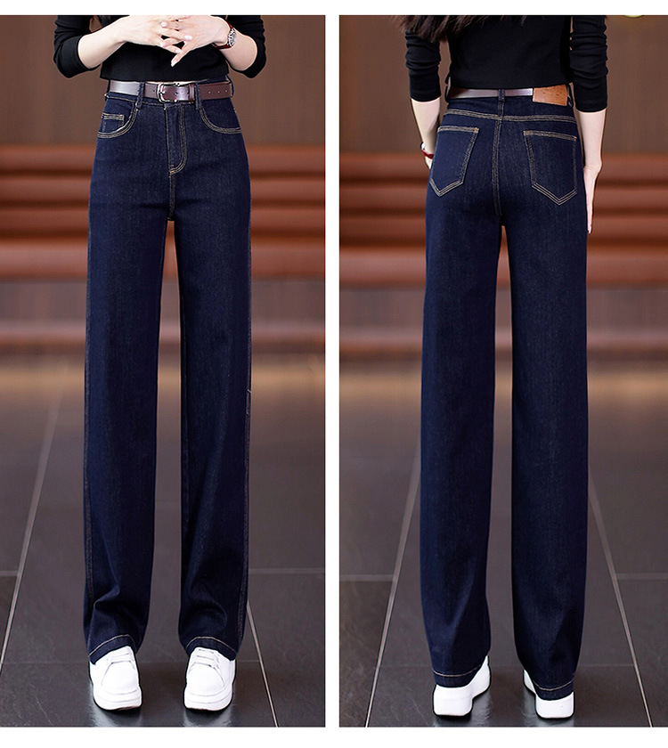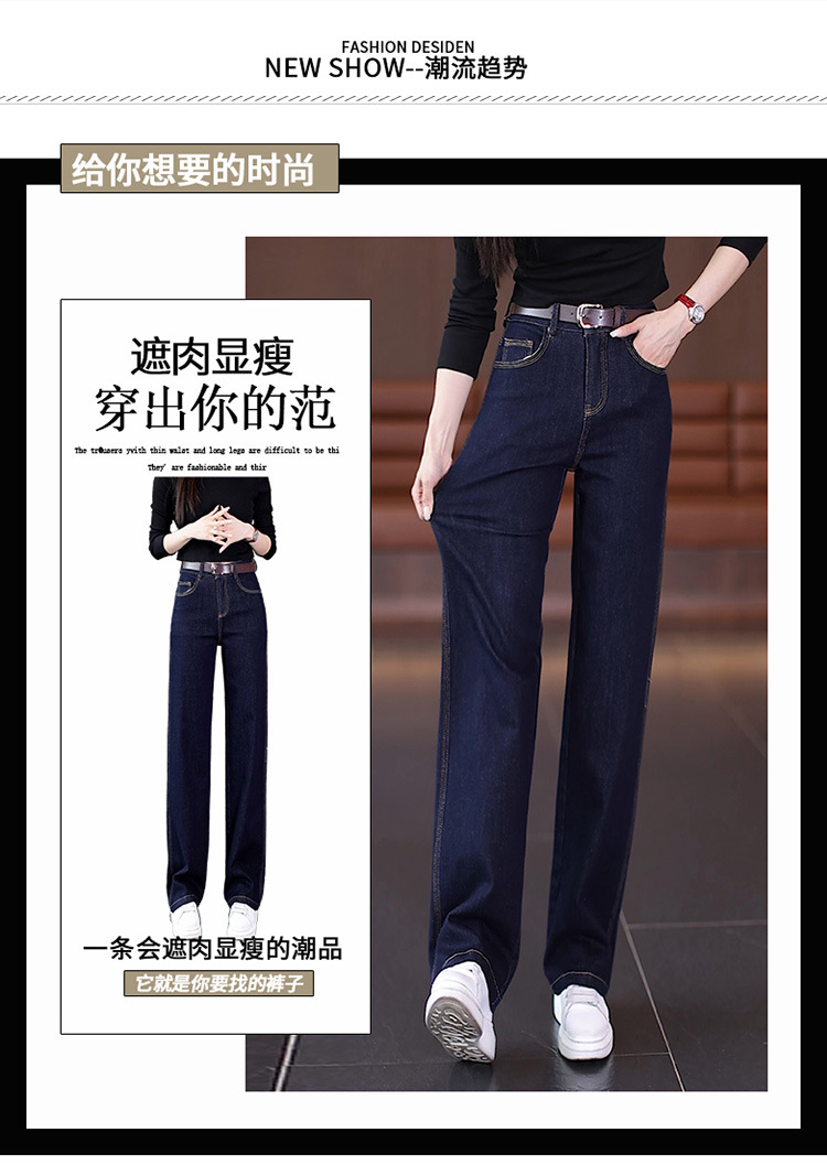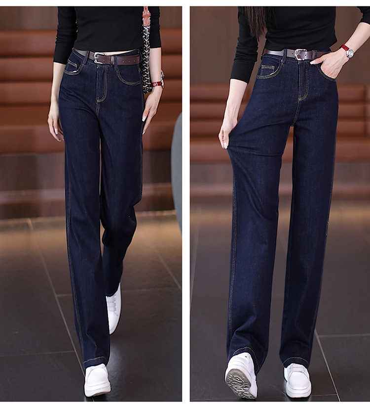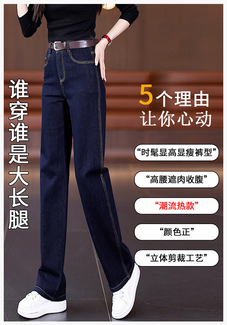 丹宁色窄版阔腿牛仔裤女2024秋季新款高腰宽松垂感不掉色直筒裤子
