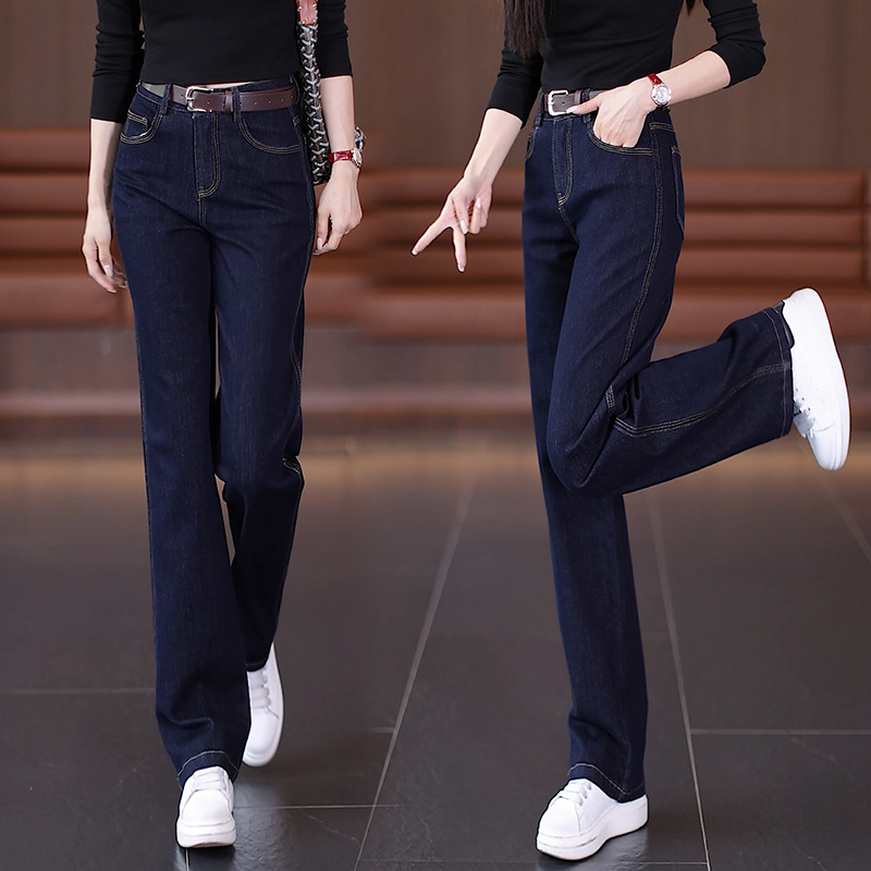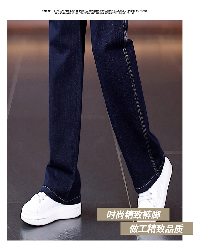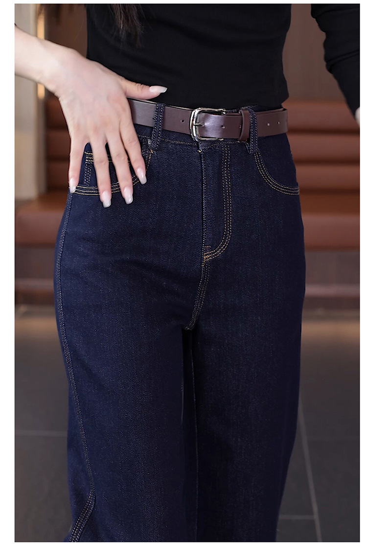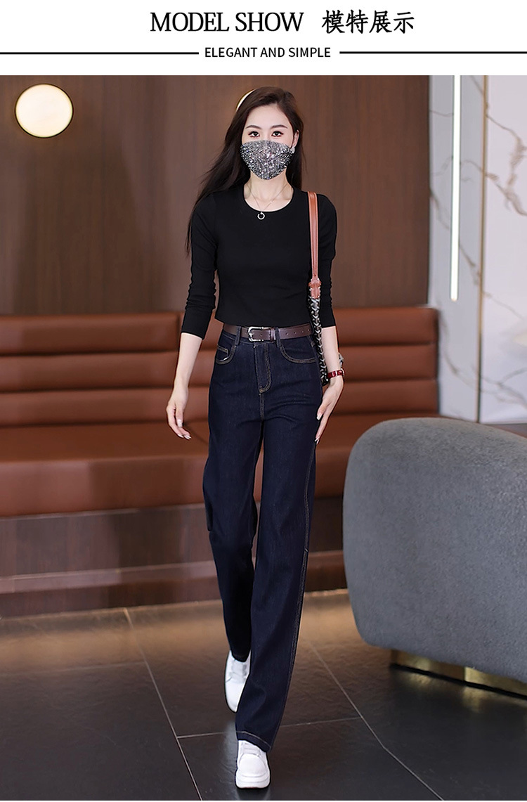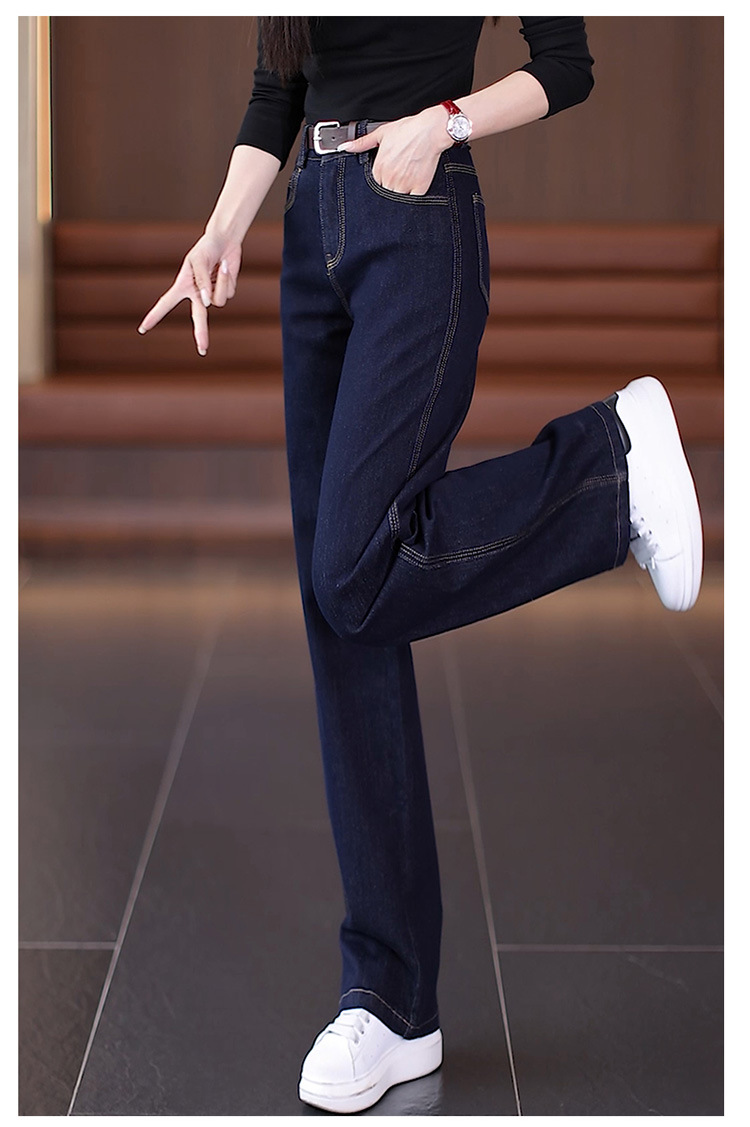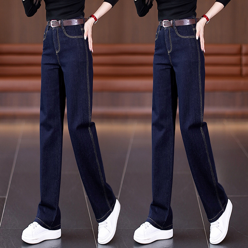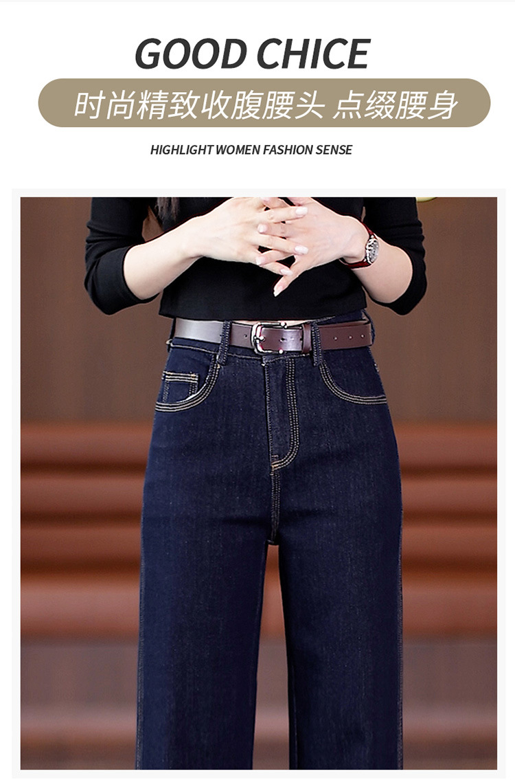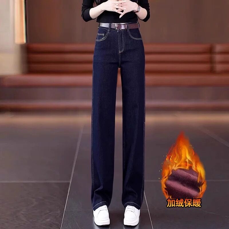 丹宁色窄版阔腿牛仔裤女2024秋季新款高腰宽松垂感不掉色直筒裤子