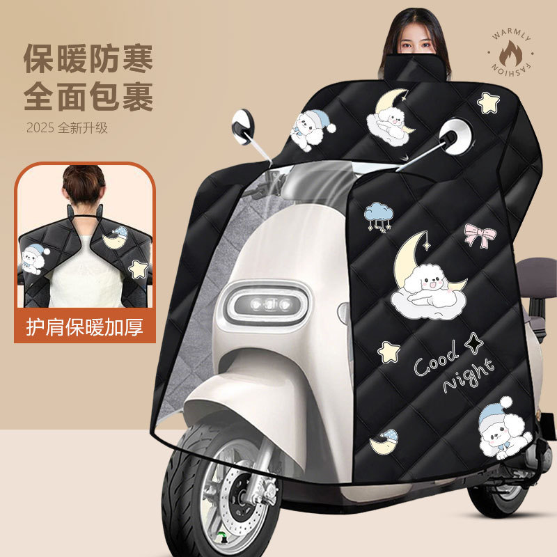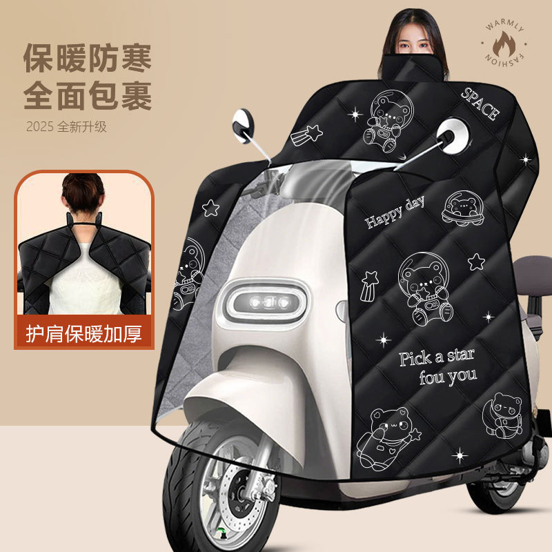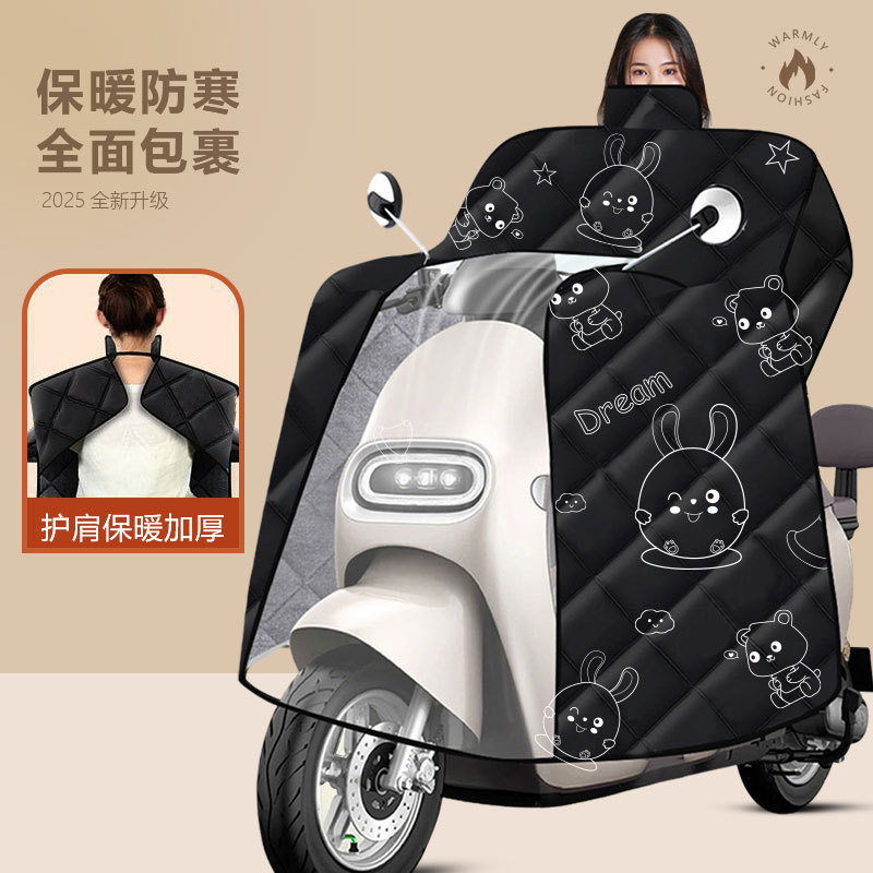 电动车挡风被新款秋冬季加绒加厚斗篷款电瓶摩托车保暖防风罩批发