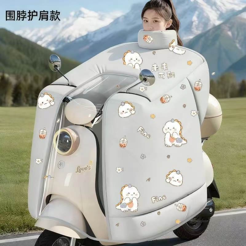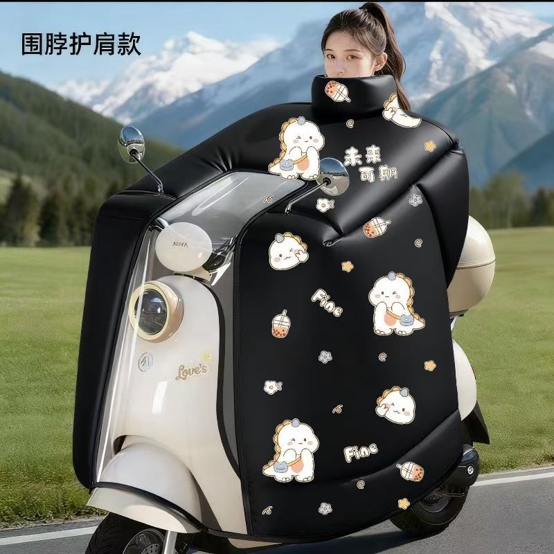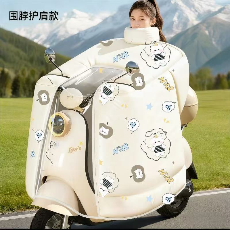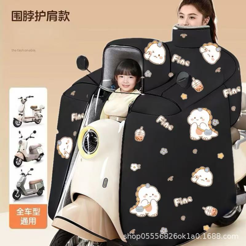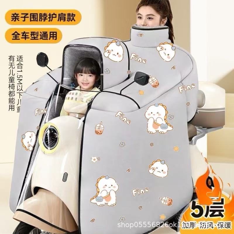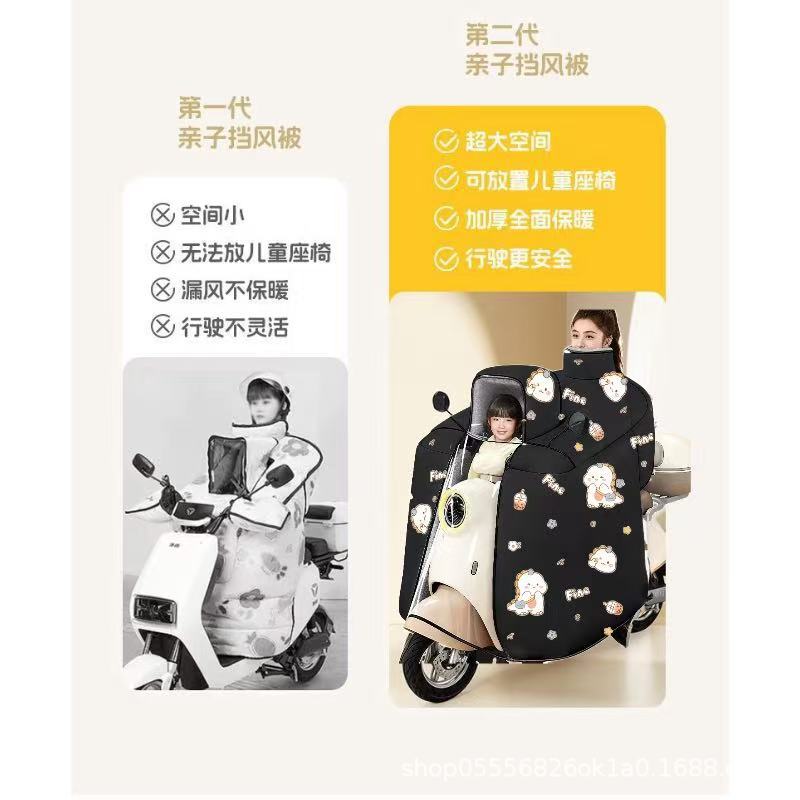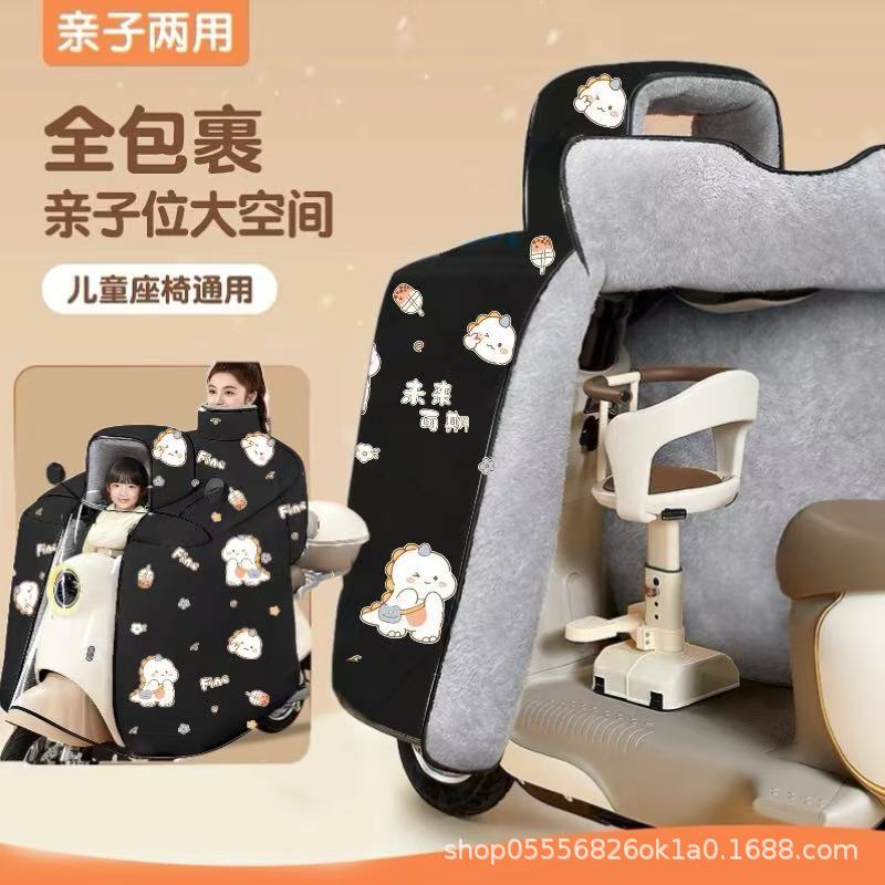冬季亲子带娃电动车挡风被加绒加厚防风保暖斗篷摩托车电瓶车通用