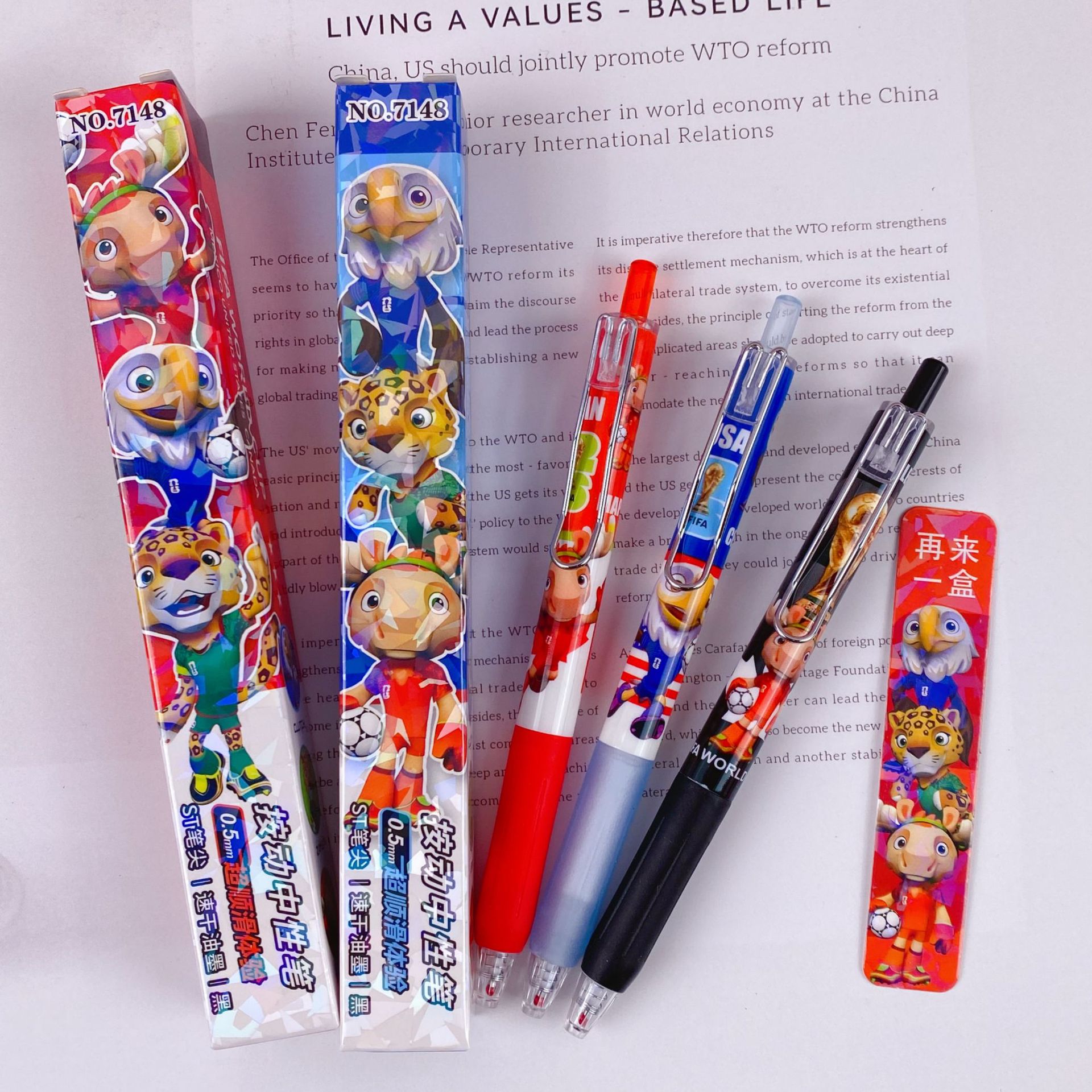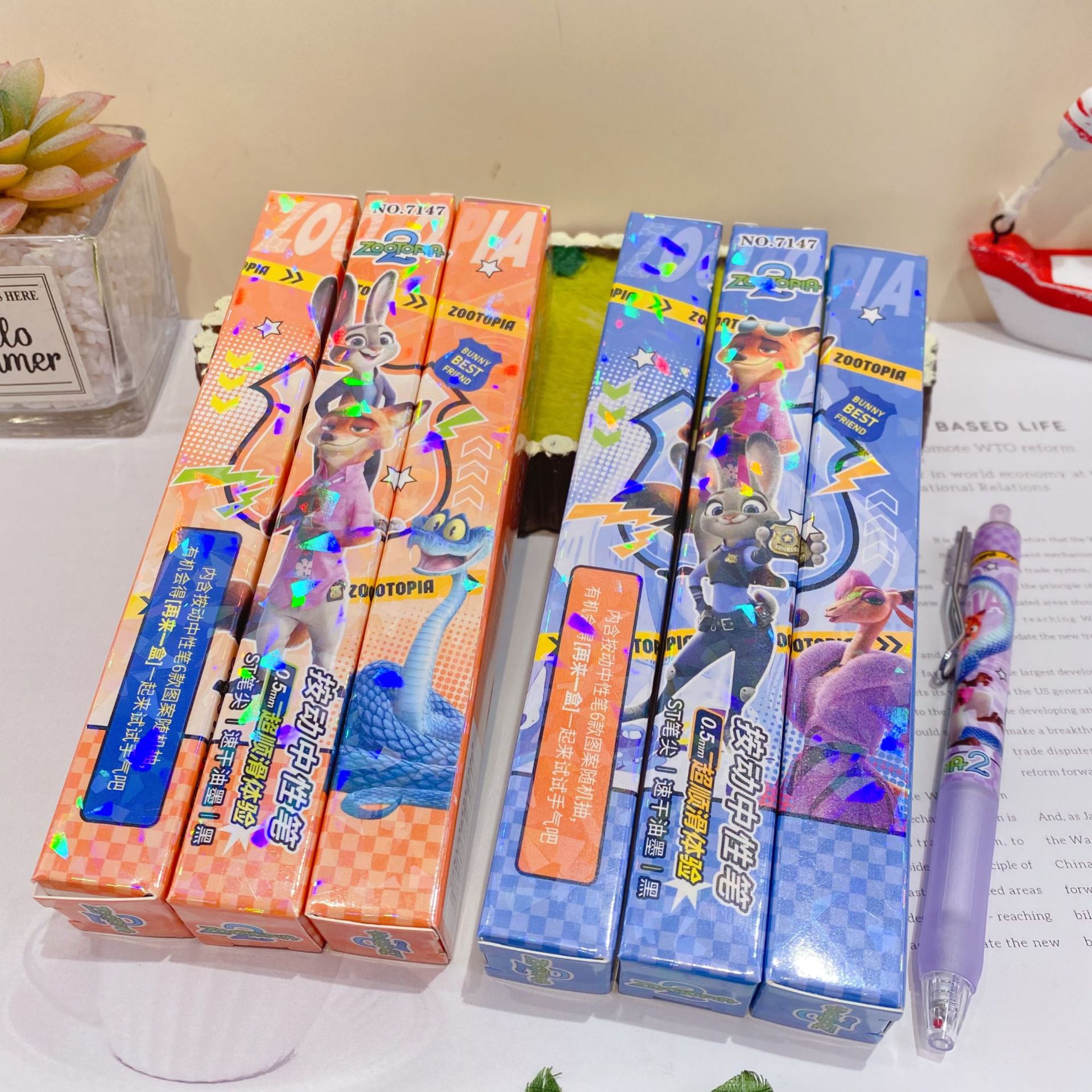 新款卡通动物城抽奖盲盒笔中性笔再来一盒按动款水性笔拍22发24支