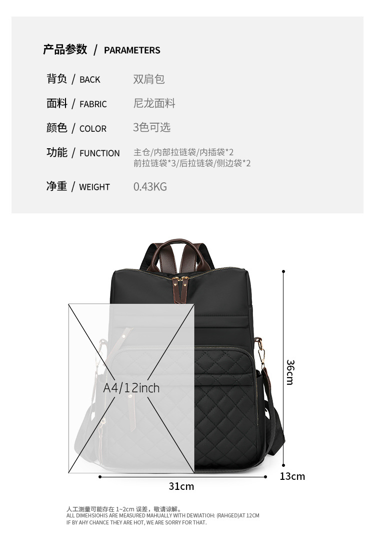 菱格绣线双肩包女2025新款女士背包韩版百搭大容量防泼水旅行背包